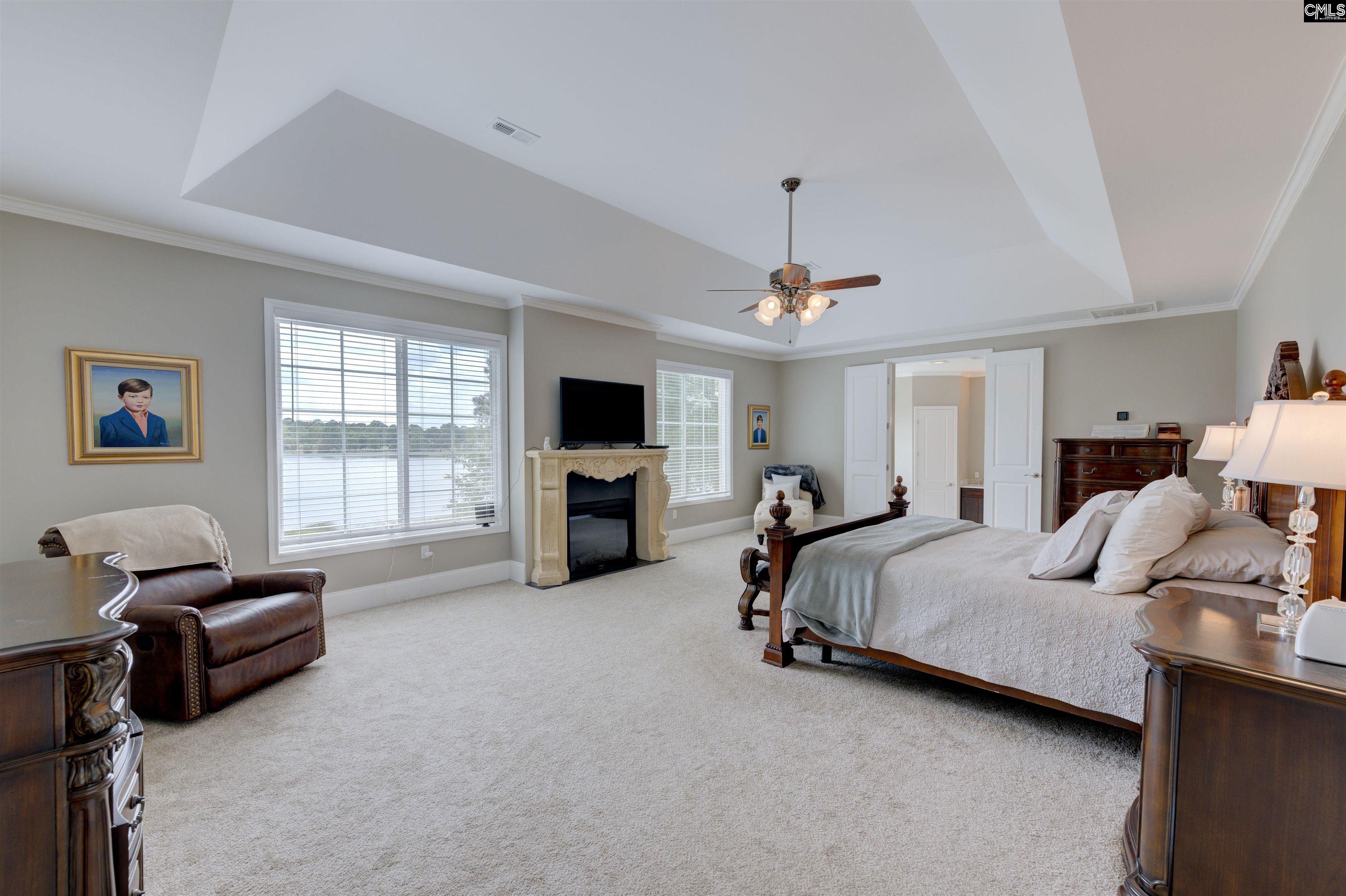 This one-of-a-kind brick home on Park Shore Lake offers over 8,800 square feet, 20 rooms, and a flexible layout with 5+ bedrooms and 5.5 bathrooms—designed for comfort, entertaining, and everyday luxury. A pair of grand wrought iron double doors open into a dramatic great room with 22’ ceilings, a stunning 6’ crystal chandelier, and hardwood floors that flow throughout the main level. The open kitchen features a 48" gas range, two refrigerators, wine cooler, walk-in pantry, and a large island with prep sink. An adjoining sitting area and eat-in space overlook the lake, creating a seamless space for gathering and everyday living. The home also includes a beautifully scaled formal dining room with a 13.5' vaulted ceiling—perfect for hosting holidays or dinner parties. On the main floor, you'll find a spacious guest suite with its own bath, and a massive playroom with built-in castle and indoor slide, connected to a sound-insulated music room—a flexible space that easily serves as a fifth bedroom, creative wing, or bonus retreat. Upstairs, the primary suite spans nearly 950 SF, with vaulted ceilings, an electric fireplace, and sweeping lake views. The ensuite bath includes a clawfoot tub, double steam shower, infrared sauna, and a walk-in closet the size of a bedroom. Two additional upstairs sizable bedrooms also feature ensuite baths, high ceilings and lake views. Other standout spaces include a two-story library with stained glass dome and hidden staircase, a sunroom with 12' coffered ceilings, home office with 14' vaulted ceiling, a third-floor game room, a peaceful meditation room, and finished room over the garage (gym) that adds even more flexibility to the floor plan. Outdoors, enjoy 110 feet of shoreline, a saltwater pool (2022), and a covered back porch positioned for peaceful Northwest-facing sunsets over the lake. The backyard is home to fruiting trees, mature landscaping, and natural views of park land. Additional highlights: new roof (2021), extensive storage throughout, crown molding and large baseboards, on-site private security, and optional membership to Spring Valley Country Club. Seller is licensed SC agent. Disclaimer: CMLS has not reviewed and