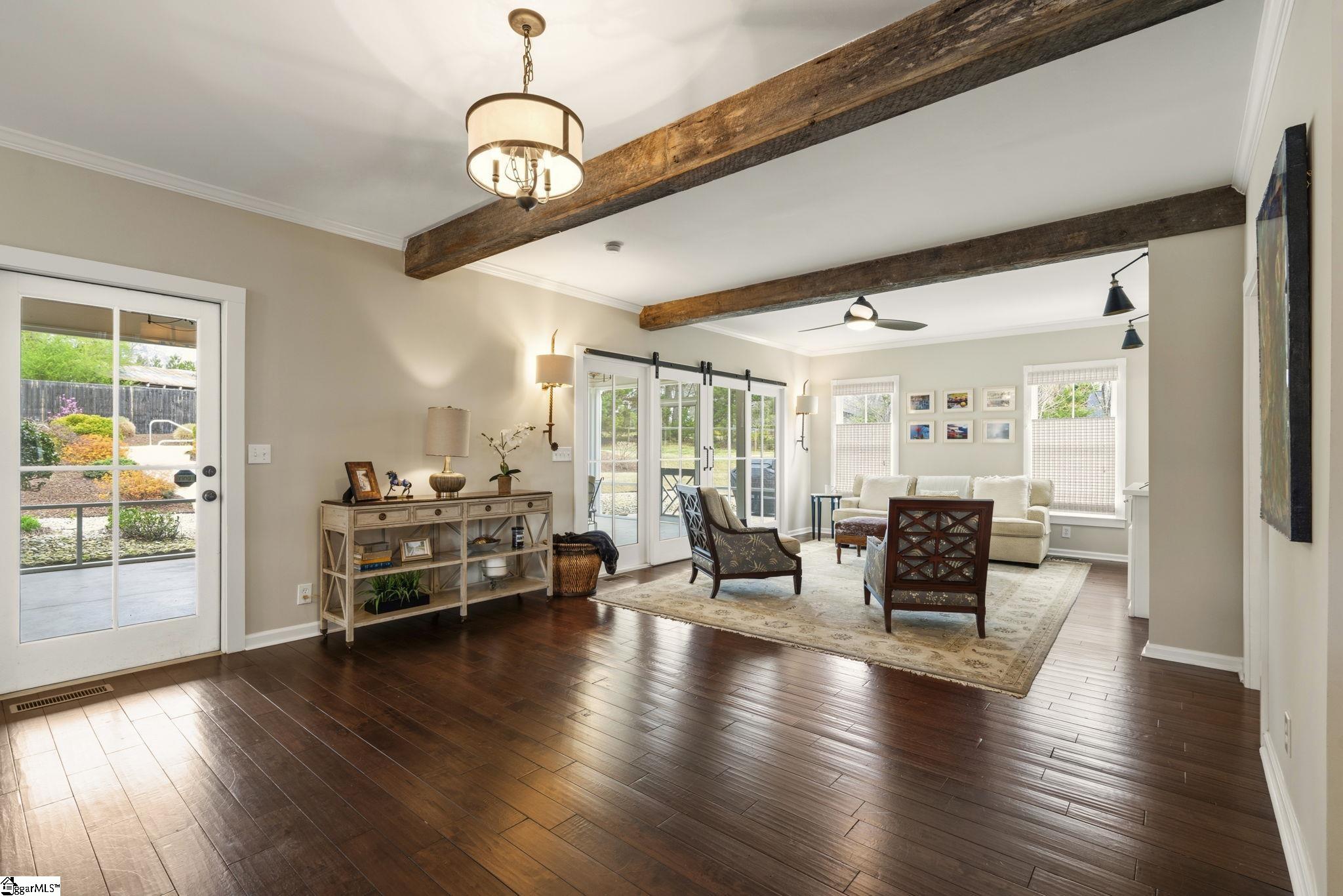 This charming, restored Victorian farm home offers the perfect blend of historic elegance and modern convenience in the heart of downtown Landrum. With a wrap around front porch, sleeping porch, pool, beautiful landscaping and all three bedrooms having en-suite baths, this could be the future bed and breakfast you daydream about! The marble countertops boast rugged beauty perfectly complimenting the sleek, updated kitchen. The great room opens gracefully to the manicured outdoor living space seamlessly, and common areas dappled through the floor plan include a very well-appointed art studio flooded with natural light. There is a primary suite on the main floor, and the upper floor has 2 bedrooms with en-suite baths, a second laundry room (with live-edge countertop) and a flex space which could be a perfect playroom, nursery or reading room. The floor plan and spacious layout give this property incredible potential as a VRBO vacation rental, bed & breakfast, or multi-generational home. Imagine welcoming guests to experience the charm of Landrum and the excitement of Tryon equestrian events, all from this prime location. Walkability is easy to Landrum's vibrant Main Street, with its array of restaurants, shops, cafes, and local events just moments away—ideal for those seeking a walkable, community-oriented lifestyle. The home has been thoughtfully appointed with equestrian enthusiasts in mind, conveniently located near the renowned Tryon International Equestrian Center (just a short drive away), making it an excellent base for competitors, spectators, or horse lovers attending events and shows. The home's generous outdoor space includes an extra-large parking area with outdoor electrical hookups, providing ample room for trailers, RVs, guest vehicles, or equipment—perfect for accommodating visitors or competitors during peak season. With the saltwater pool, and separate garage serving as a pool house (complete with a convenient restroom) the home can be an oasis for all. The Saluda Grade Rails Trail is scheduled to begin next year so don’t miss this opportunity to purchase this prime property now!