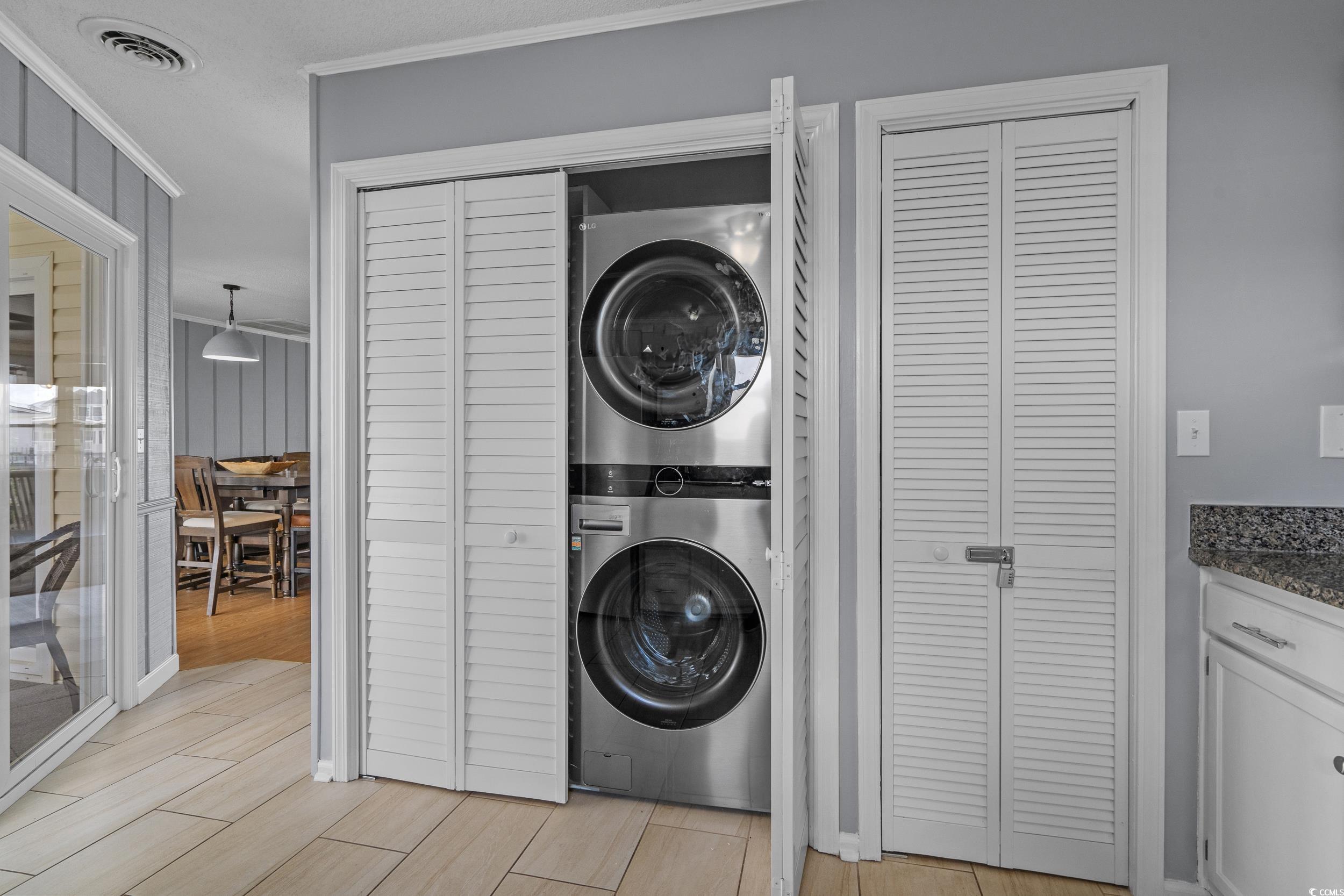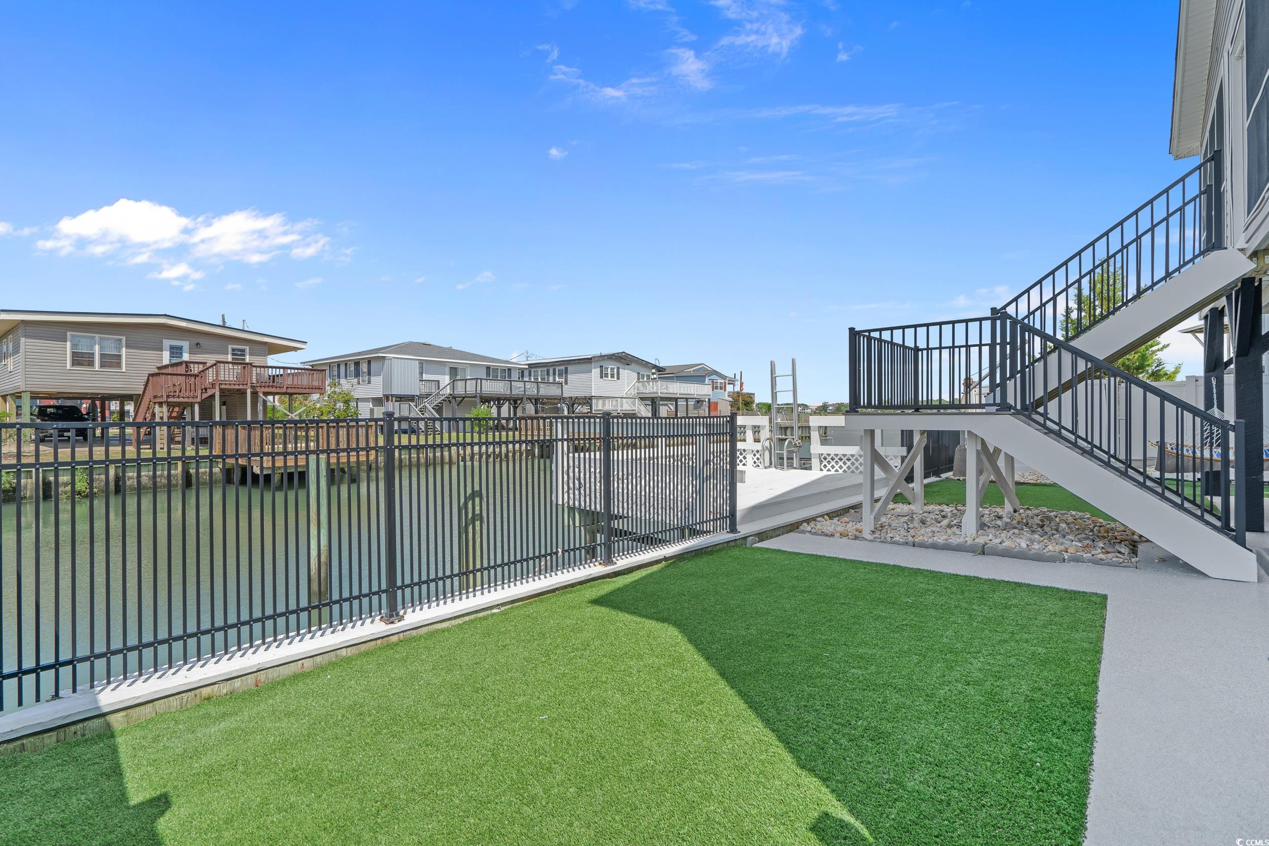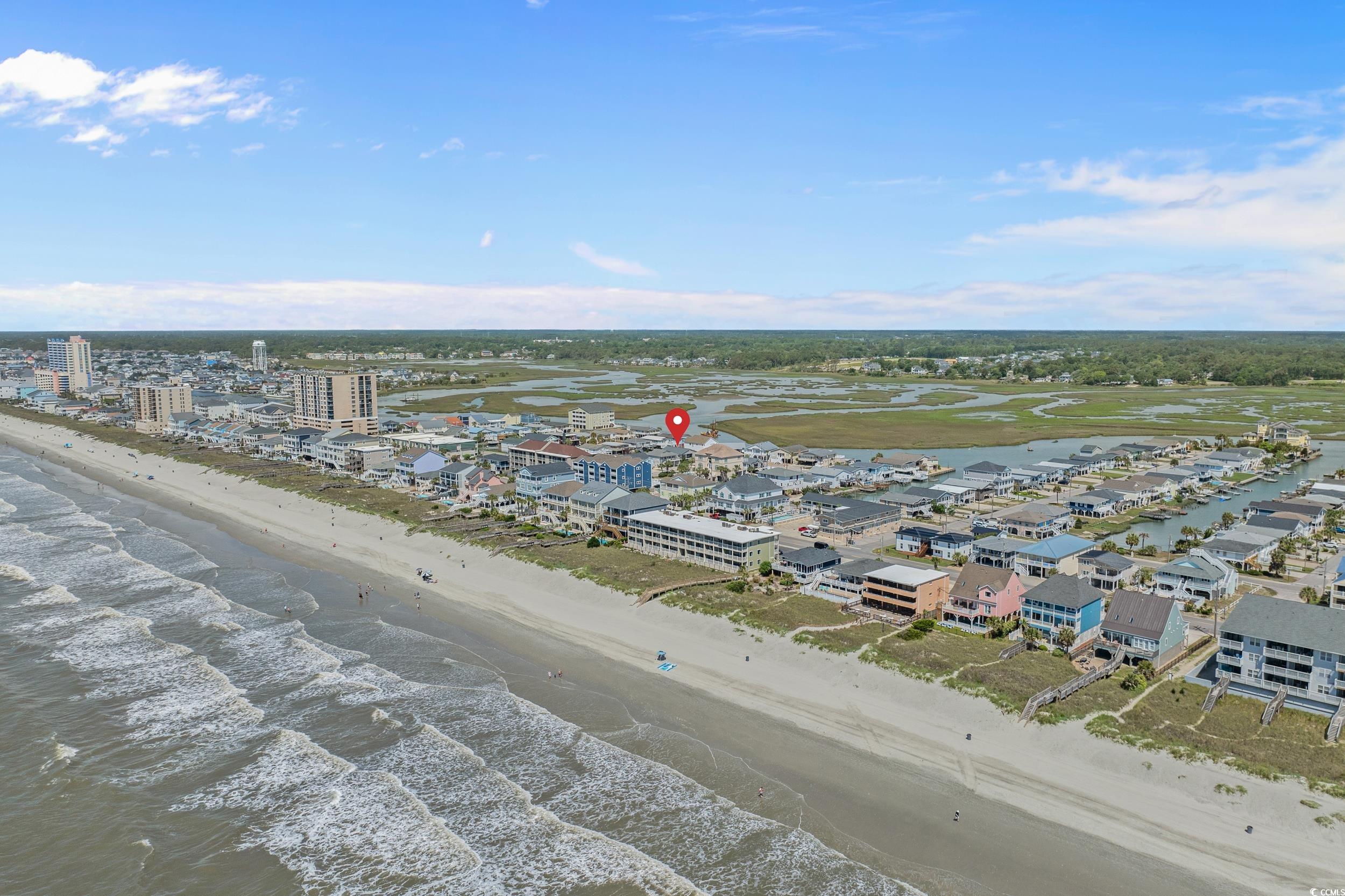 Welcome to this stunning move in ready home located on the channel in the highly sought after area of Cherry Grove! This 4 bedroom, 3 bathroom, raised beach style home is just one block from the ocean and sits on a wide channel with incredible marsh views. This is a huge bonus to your already fantastic, direct water view! Being offered fully furnished and tastefully finished and decorated, this home will WOW you. Upstairs you will step into a bright and open space where the living and dining areas flow together seamlessly and include a large wet bar. Adjacent to the dining area is the kitchen featuring SS appliances, granite countertops, a pantry and a laundry closet with full size stackable washer and dryer. The split bedroom floor plan provides privacy for all. The primary bedroom is located at the rear of the home, offering a peaceful water view and private ensuite with double vanity and walk in shower. A second bedroom with its own private bath sits at the front of the home on the same side. On the opposite side, two additional bedrooms share a convenient Jack-and-Jill bath. All bathrooms have new lights, fans and shower fixtures. The entire upstairs has been freshly painted with new lights and ceiling fans installed. Step outside to access your oversized screened in porch through either the sliding glass doors in the kitchen or the dining area. This spot is truly magical and versatile and is large enough to gather, eat, entertain, work, relax or whatever you choose! Downstairs you will find an additional 1200+ square feet that is climate controlled by a brand new Samsung mini split. This space is currently equipped as a gaming and entertaining area including a ping pong table, corn hole boards, dart board and a 90 inch TV. This indoor/outdoor living space is the perfect spot to relax, watch the game or entertain your family and friends! This downstairs area also has a 495 square foot storage/workshop space which is heated and cooled as well. The entire downstairs floor, as well as the outdoor rear walkway has gorgeous new polyaspartic coating. Step outside to savor the views and the soothing sounds of nature- perfect for an afternoon nap in the hammock or an evening cocktail with picturesque sunsets. Some of the recent additions outdoors include a brand new 7 step, extra wide kayak launch/lift, new cement pad for kayak loading, a new deck area for washing off sand, new rock/landscaping, new Trex decking (front and rear) as well as new black porch railings. There is also an outdoor shower for your convenience. Whether you are looking for primary, secondary or investment property, this is the channel home you have been wishing for. This home is located close to everything including dining, shopping, health care, golf, entertainment and more. Don't miss this one, schedule your showing today!