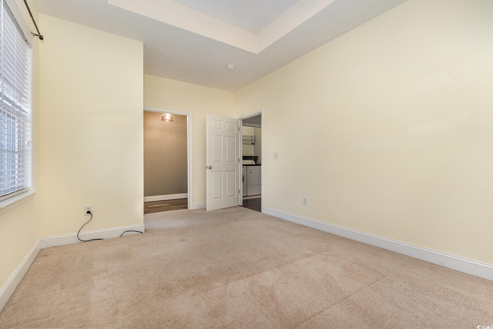 This 2-bedroom, 2.5-bathroom townhome perfectly combines space, style, and convenience. Situated in a prime location close to everything the Grand Strand has to offer while still providing the privacy and tranquility you’ve been looking for.Step inside to a welcoming foyer that opens into a spacious and functional floor plan. The main living area boasts beautiful wood flooring, while the kitchen flows seamlessly into a cozy dining nook, ideal for casual meals or entertaining. Upstairs, you’ll find two large master suites, each featuring a private en suite bathroom and walk-in closets, offering both flexibility and comfort.This home also features tile flooring in the wet areas and carpeting in the bedrooms for added warmth. A standout feature is the all-seasons room, perfect for enjoying additional living space year-round. The attached one-car garage provides both convenience and extra storage, and the charming front porch invites you to unwind on peaceful evenings. With custom wood shelving and accents throughout, ample storage space, this townhome is as functional as it is inviting. Homes like this rarely come on the market and don’t last long. Priced to sell quickly, this is your chance to own a beautiful townhome just minutes from the beach, shopping, dining, local hospitals, and entertainment. Schedule your showing today!