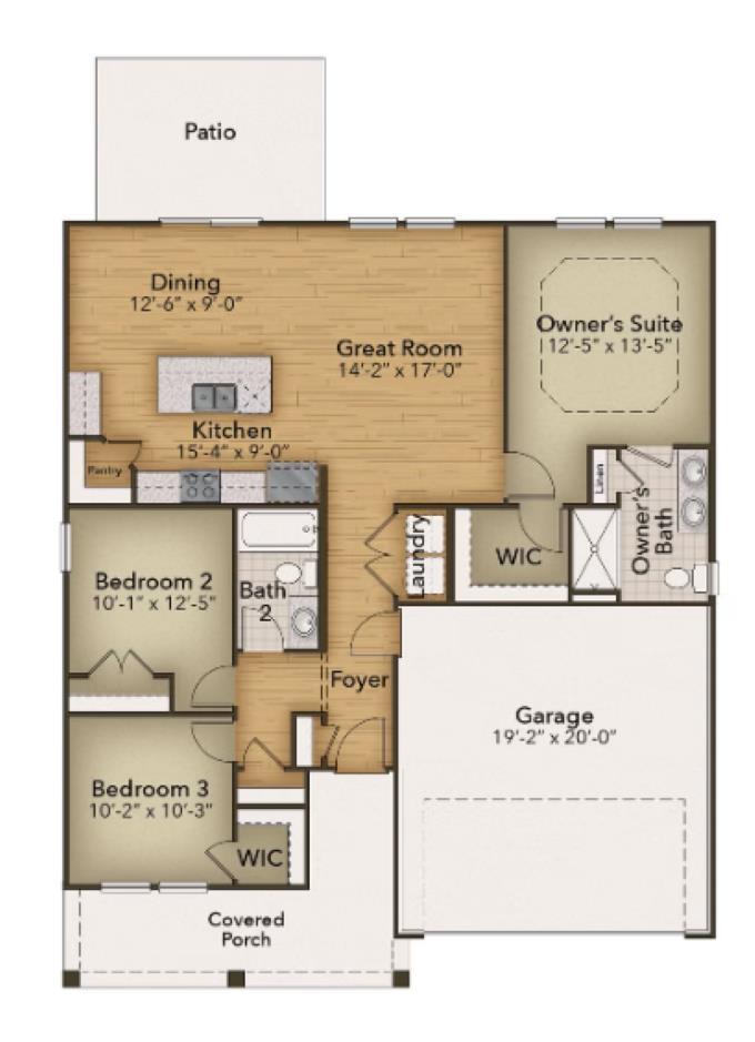 Welcome to the Indigo! Step into over 1,260 square feet of luxurious first-floor living space. Upon entering the home, you'll be greeted by 2 bedrooms and a full bath on your left – perfect for hosting guests in their own serene retreat. Continuing on, you'll discover a harmonious flow between the kitchen and the great room. A stunning kitchen island offers additional seating and counter space for all your culinary needs and entertaining endeavors. At the rear of the home, you'll find the tucked-away owner's suite featuring a tray ceiling, a spacious walk-in closet, and an elegant owner's bathroom. Enjoy upgraded features throughout the home such as LVP flooring in the foyer, kitchen, great room and Owner's bath. As well as shaker style cabinets, stainless appliances (natural gas stove, Side by Side refrigerator, microwave, and dishwasher), top loading washer and dryer, and quartz countertops. Embrace the comfort and elegance of the Indigo – make it your home today!