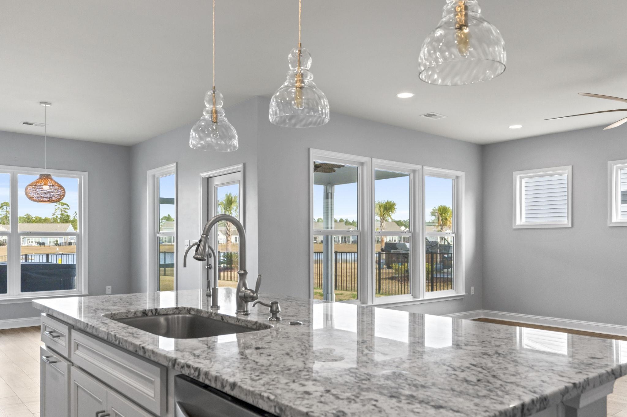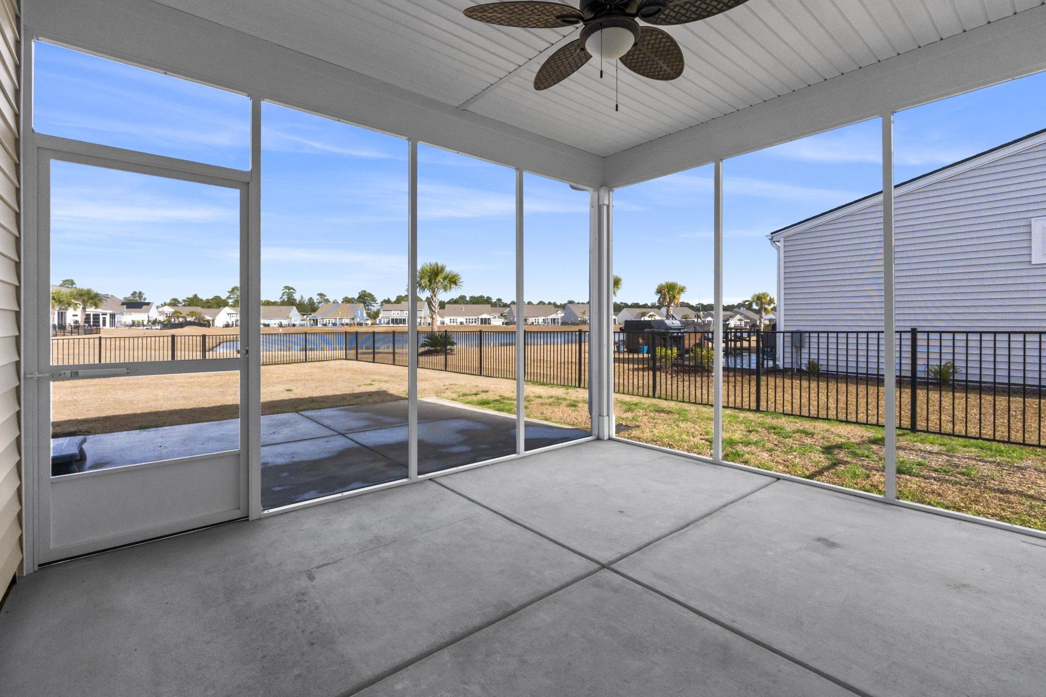OPEN HOUSE! SATURDAY FEBRUARY 28th 11:00am-1:00pm DON'T MISS OUT ON THIS BEAUTIFUL HOME ON A WATER LOT! Gorgeous 3-bed, 2-bath single-story home with a flex room, fully fenced on a pond lot. Built in 2022, this property features extensive builder upgrades, with the sellers adding even more enhancements after purchase. The gourmet kitchen offers granite countertops, a stylish backsplash, walk-in pantry, stainless steel appliances, gas cooktop, inset range and microwave, vented hood, and a spacious island ideal for meal prep and entertaining. Upgraded lighting and ceiling fans are found throughout the home. The primary suite includes a tray ceiling, walk-in closet, and with a walk-in shower and dual sinks. Additional highlights include a painted two-car garage with pull-down stairs leading to a finished attic space, screened porch, extended concrete patio with a hot tub that DOES convey with the home, an irrigation system for easy lawn care, and a tankless water heater for added efficiency. Community offers true resort-style living! Residents enjoy impressive amenities including a lazy river, two sparkling pools, a splash zone with dump bucket, fitness center, hot tub, pickleball courts, basketball court, bocce ball, dog parks, playground, and scenic walking trail. Conveniently located approximately 10 minutes to Coastal Grand Mall, 10 minutes to the airport, and just 15 minutes to the BEACH. This neighborhood delivers the perfect blend of luxury, convenience, and coastal lifestyle. Schedule your showing today!