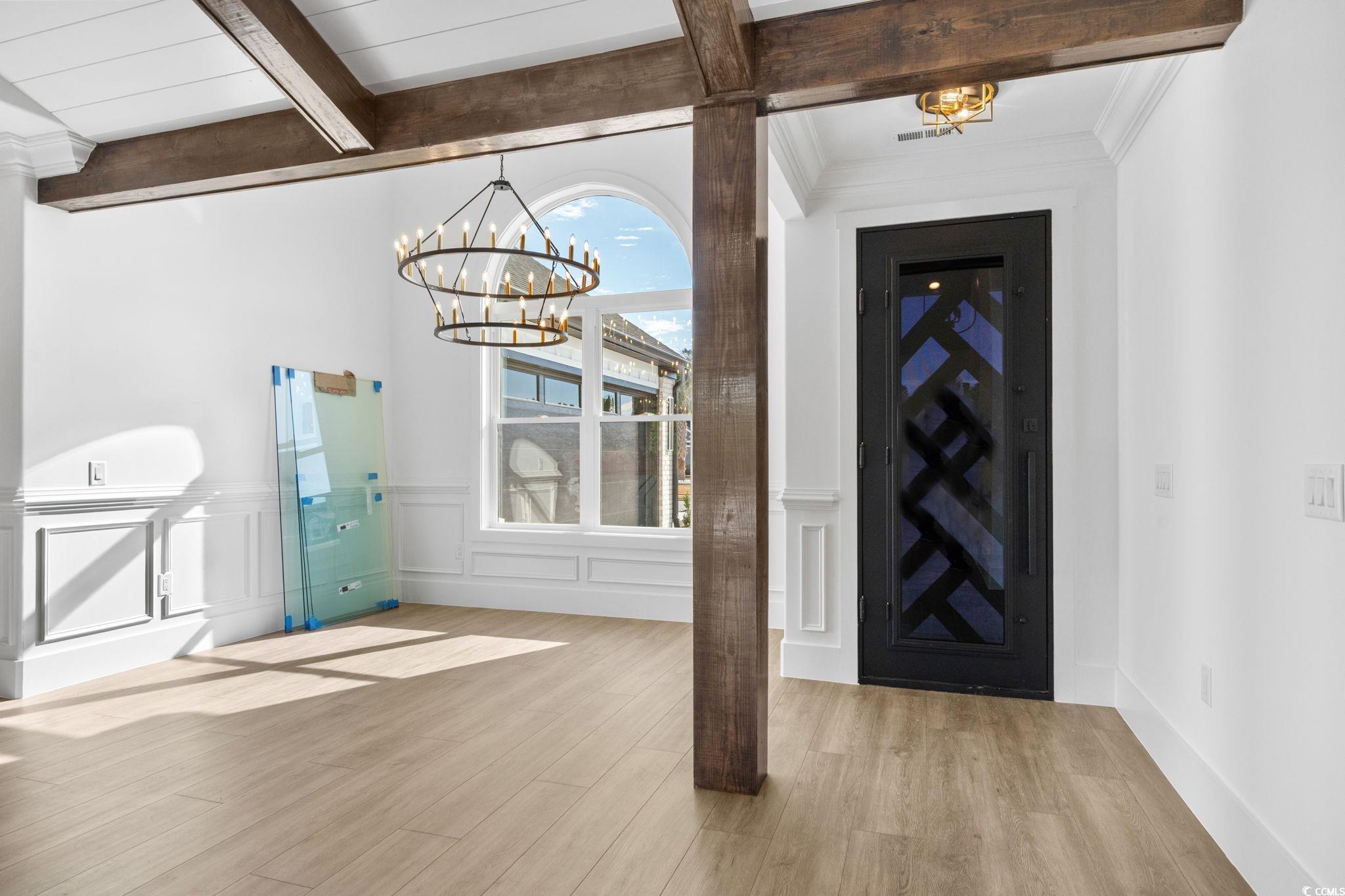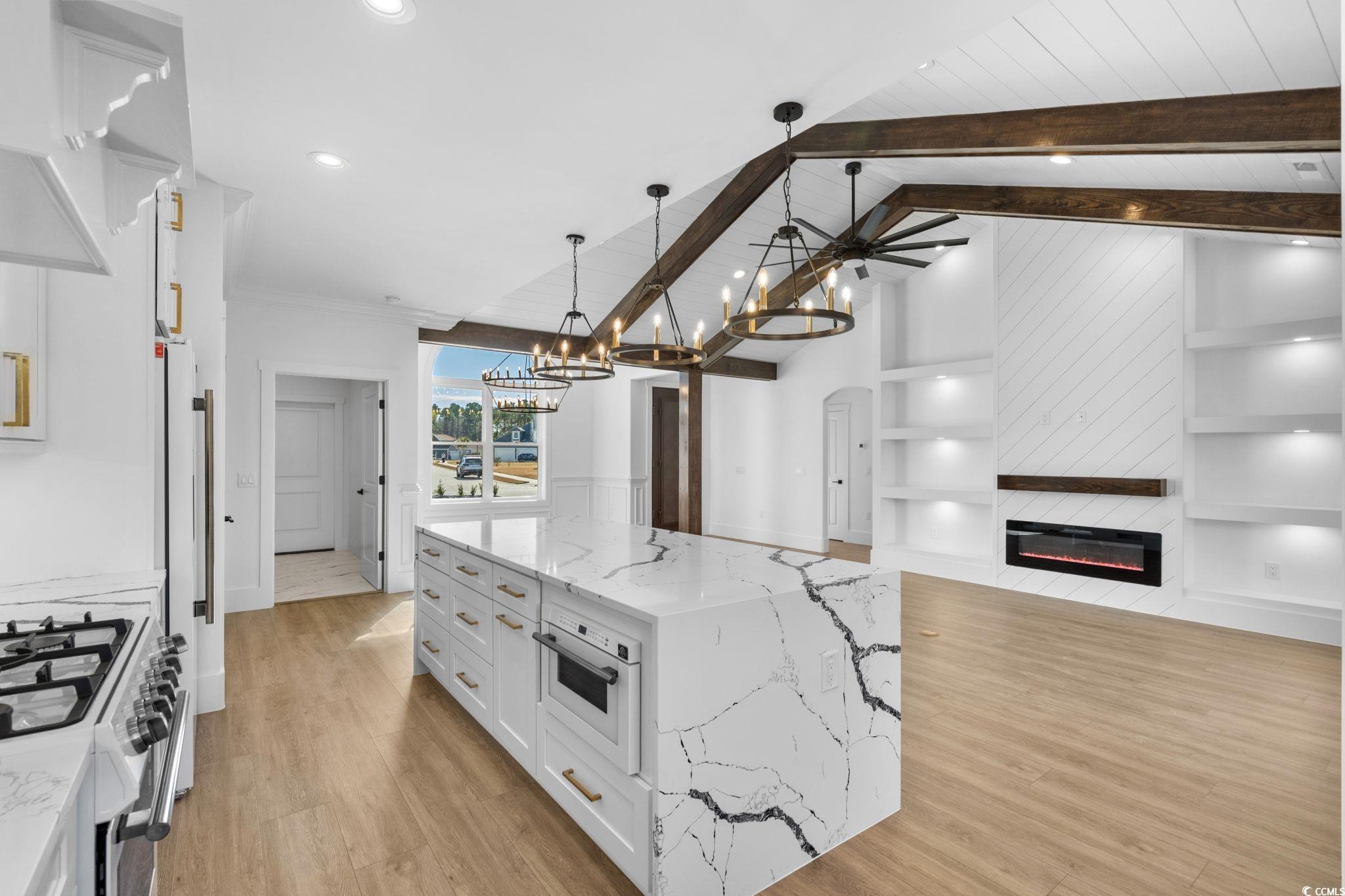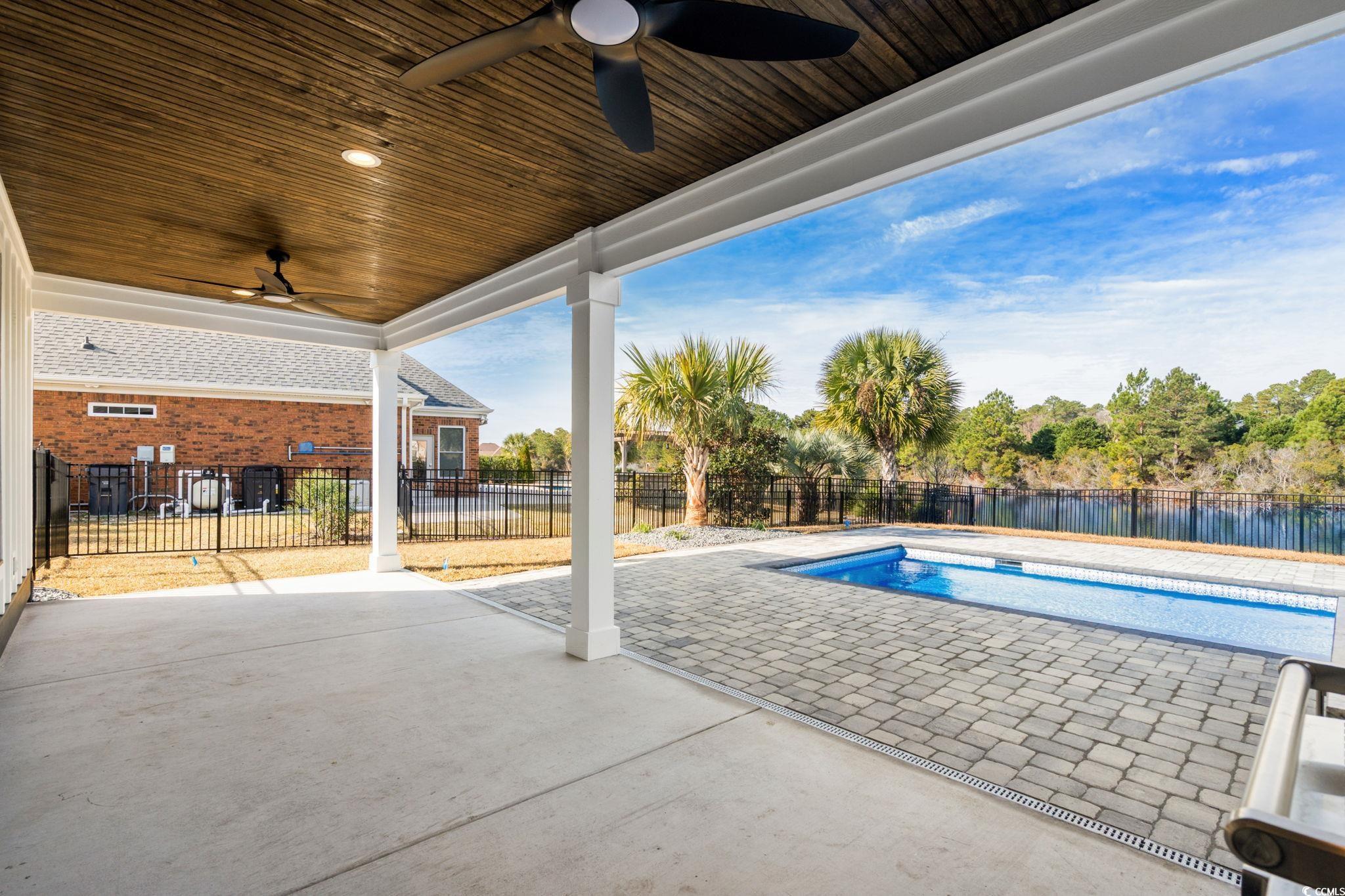 Welcome to this 3 Bed / 2 Bath stunning modern farmhouse offering impeccable design and luxurious finishes throughout with an inground pool! As you step inside, you’re greeted by an open-concept living area with vaulted, beamed ceilings and expansive windows that flood the space with natural light. The chef’s kitchen is the showpiece of the home, featuring custom white cabinetry, striking waterfall quartz countertops, a gas cooktop, and elegant gold hardware paired with designer lighting. The spacious island provides ample seating and anchors the room beautifully for cooking and entertaining. The living area flows seamlessly onto the covered patio overlooking the backyard and pool area, creating an ideal indoor–outdoor living experience. High-quality flooring, clean lines, and thoughtful craftsmanship are evident in every corner of this home. With its bright, airy layout and modern finishes, this property blends comfort and sophistication perfectly—offering a truly move-in-ready retreat. Located in the sought after gated community known as Sago Plantation. If you love to golf you are just a golf cart ride away from Legends Golf Course! Centrally located in Myrtle Beach you are close to the Tanger Outlets for shopping, Carolina Forest for restaurants, and entertaining. Still just a few miles from the ocean, this home is very conveniently located.