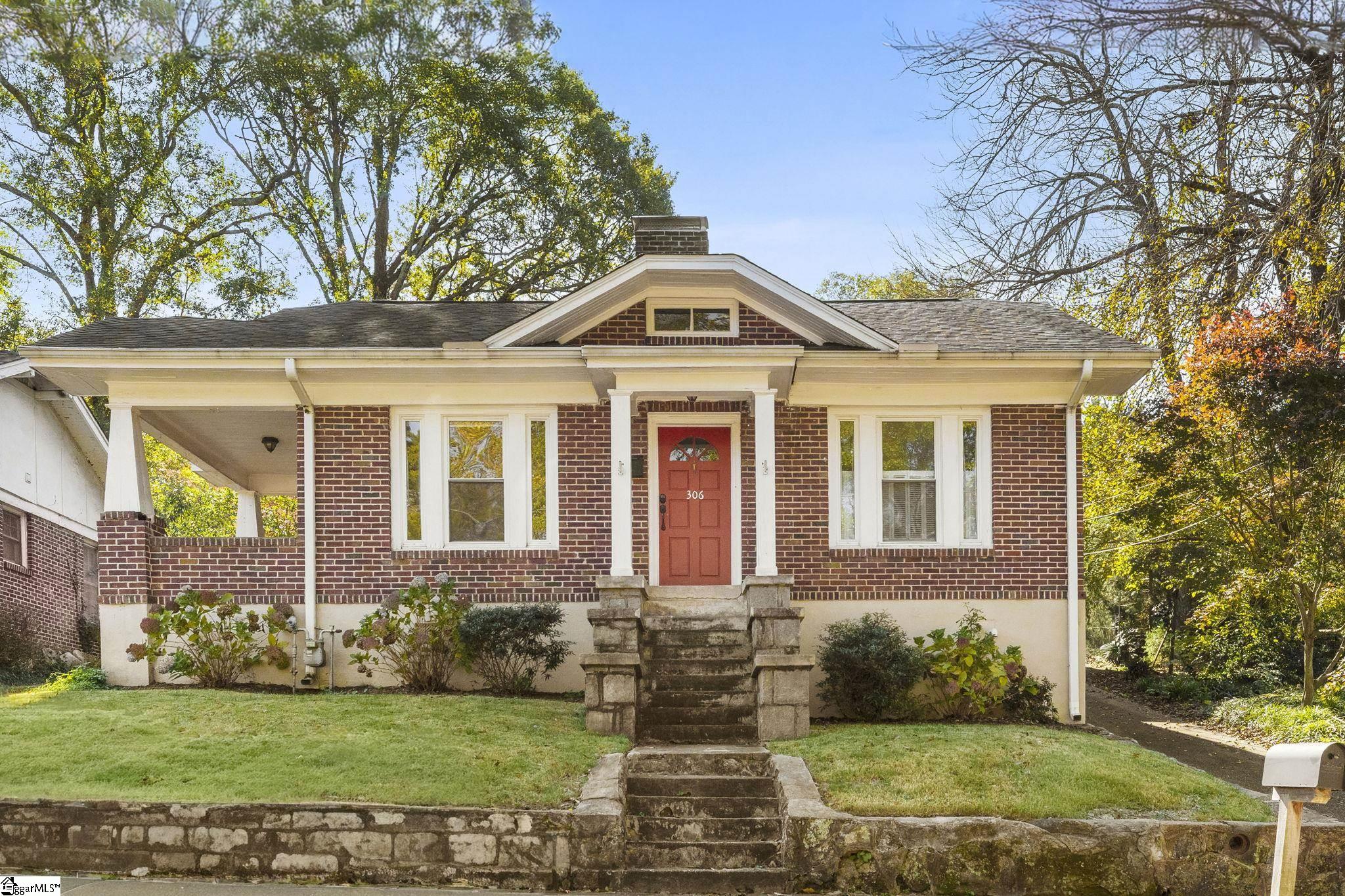 Live in the heart of Downtown Greenville! This Craftsman-style home in the sought-after North Main area offers the best of downtown living with the privacy and charm of a residential neighborhood. The property includes both a main home and a garage apartment—perfect for rental income, guest accommodations, or multi-generational living. The main residence is a charming 2 bed/1Bath brick cottage showcasing a beautiful blend of character and modern comfort. Original hardwood floors, glass doorknobs, and wide moldings pair effortlessly with updated fixtures and contemporary conveniences. The bright living room features a cozy gas fireplace and opens to a covered side porch—ideal for unwinding on cool Carolina evenings. An arched doorway leads to the dining room and a thoughtfully updated kitchen complete with granite countertops, a full stainless steel appliance package, and space for a breakfast nook or home office. The walk in laundry room provides easy access to the garage. The apartment above the garage offers its own private entrance, living room, kitchen with breakfast area, bedroom, and full bath. The fenced backyard provides ample space for outdoor living, featuring a large patio perfect for entertaining or grilling. There is a spacious workshop in the garage with a separate yard door for easy access. Unbeatable location—walk downtown, hop on the Swamp Rabbit Trail, or enjoy the nearby restaurants, boutiques, and entertainment. Easy access to I-85 completes this rare opportunity. Enjoy the true Greenville lifestyle today! Some photos virtually staged.