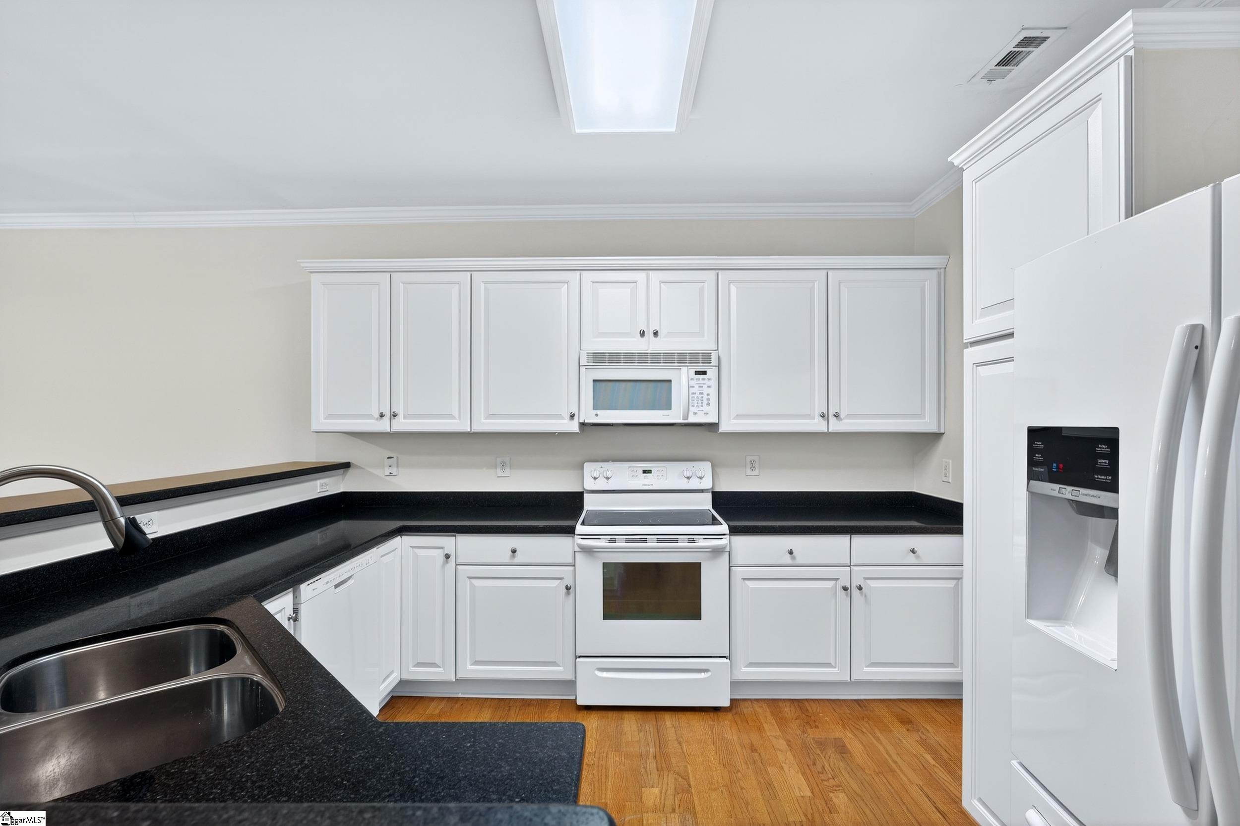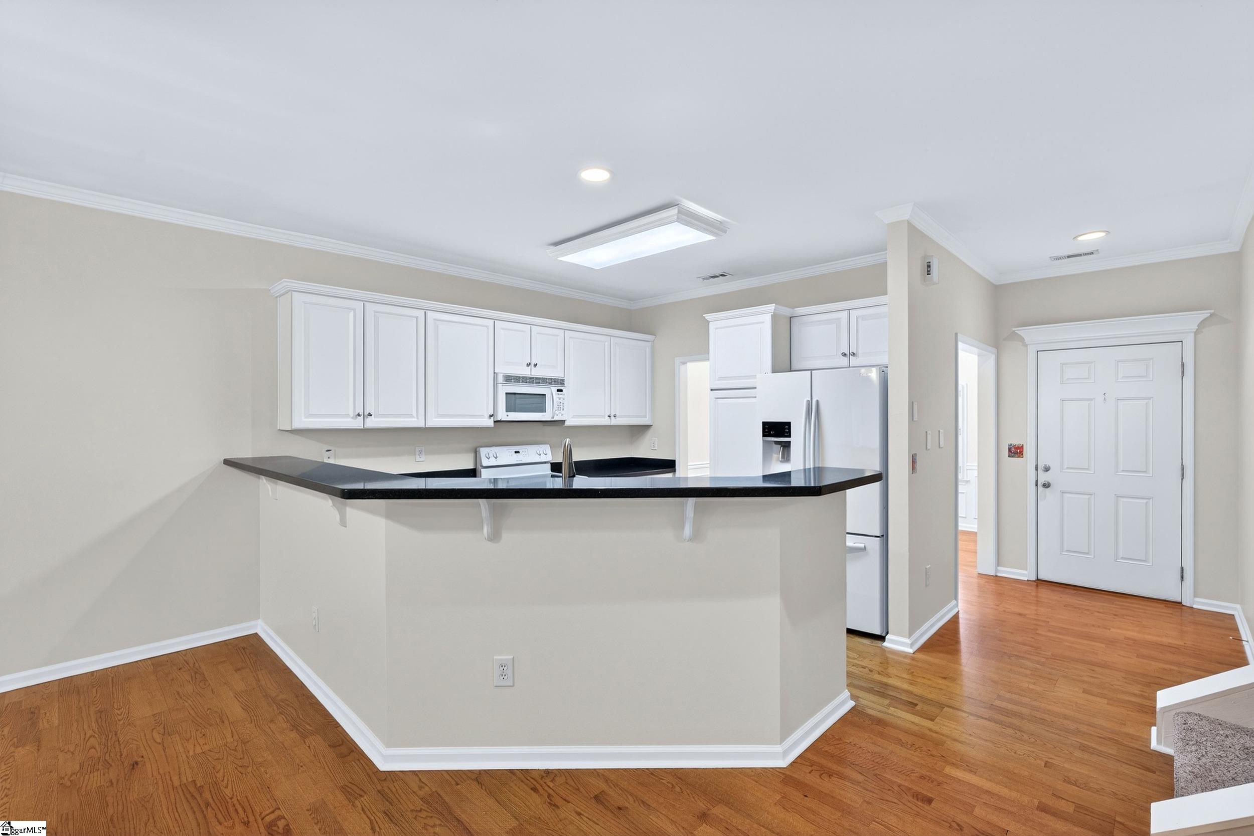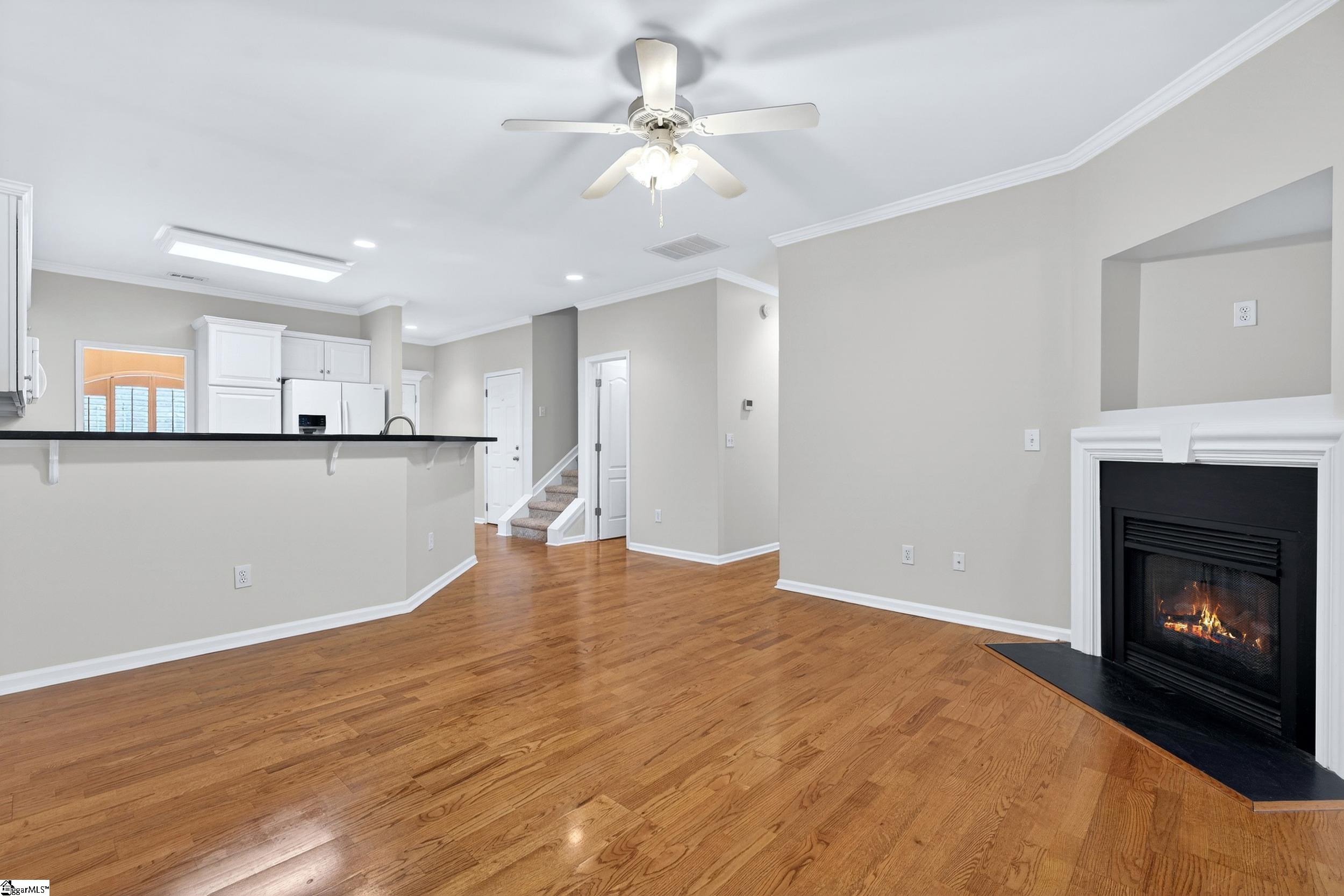 NEW PAINT THROUGHOUT!!! Don’t miss out on this pristine townhome located In Rock Springs Townes GATED community, which includes conveniences such as sidewalks, yard maintenance, exterior maintenance, and access to a pool and playground area! Residences enjoy access to shopping, dining, healthcare facilities, and top-rated schools, as well as proximity to I-85, I-26, the Westside YMCA, and the historic Wadsworth Trail. This 3-bedroom, 2 1/2 bath Townhome with a SUNROOM, FLEX room and walk-in attic space boasts an open floor plan. As you enter there is a formal dining room with a vaulted ceiling, upscale plantation shutters and decorative chair molding. The kitchen offers an open concept with a peninsula featuring bar seating, ample counter space for meal prep, and cabinets for storage options. The living room has a gas log fireplace and opens into the spacious sunroom with plantation shutters and access to your private patio with a lush backyard. Down the hall is a walk-in laundry room, a half bath, and hall closets for storage. The master suite is on the main floor and has plantation shutters, dual vanities, a soaker tub, a walk-in shower, and a walk-in closet. Upstairs offers a large Flex room, a walk-in attic space that could be finished off for additional square footage, and 2 spacious bedrooms that share a full bathroom. Storage can be found throughout the home in multiple linen/coat closets, a walk-in attic space, and in the two-car garage. Experience the benefits of home ownership without the hassle of exterior maintenance, as the HOA fee takes care of yard work, exterior upkeep and exterior insurance, common areas, street lighting, trash pick-up, and irrigation! Move right in and enjoy!