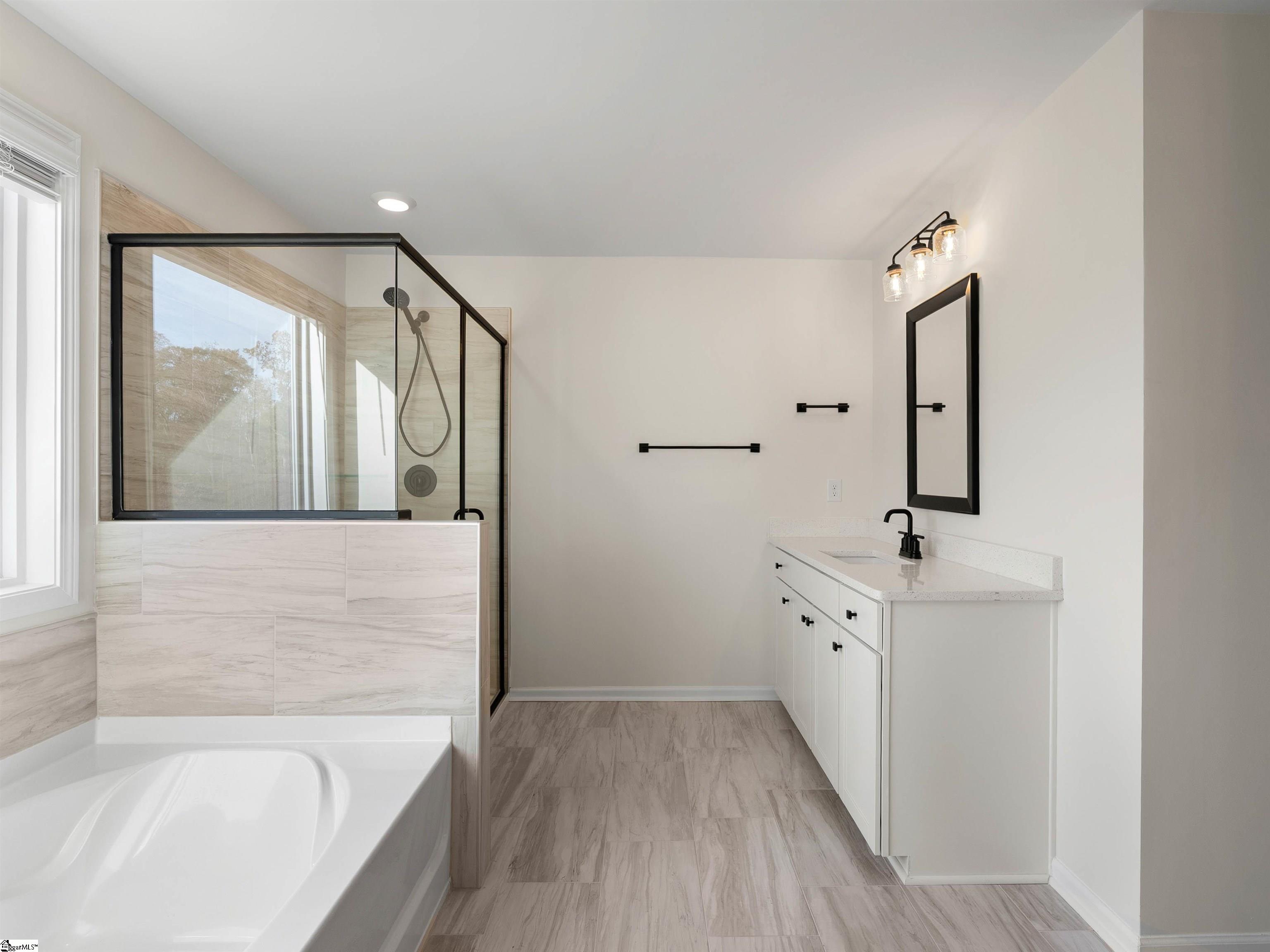 Nestled in the desirable Pine Valley subdivision of Boiling Springs, this "Better than New" home contains 3687 Sq Ft of unparalleled comfort and style. Boasting 5 bedrooms and 4 bathrooms, this meticulously upgraded residence features an inviting open floor plan perfect for modern living all on a larger private lot! From the moment you arrive, the charming front porch and 3-car garage set the tone for what’s inside! As you enter, you’re greeted by elegant, warm redwood laminate flooring that extends through the main living areas. To your right, a versatile office or flex room awaits, while a formal dining room provides an elegant space for entertaining. The heart of the home is undoubtedly the expansive kitchen, a chef's dream with a center island featuring pendant lighting, gleaming quartz countertops, soft-close cabinetry, a ceramic tile backsplash, and convenient under-cabinet lighting. Equipped with a premium Whirlpool appliance package, it includes double wall ovens, dishwasher, refrigerator and a gas cooktop. The kitchen seamlessly flows into a spacious eating area and a comfortable living space with corner fireplace and remote-control ceiling fan, ideal for gatherings. This home truly caters to every need with a convenient downstairs bedroom and private bathroom, perfect for guests or multi-generational living. The 3-car garage provides abundant storage and parking. Upstairs, a colossal recreational room presents endless possibilities – envision a dedicated entertainment zone, a craft haven, or a private gym. Three additional large bedrooms provide ample closet space, all with added ceiling fans, and a dedicated laundry area adds to the home's functionality. The very private owner's suite is a luxurious retreat, featuring a cozy sitting area, his-and-hers closets, separate vanities, a large soaking tub, a tile shower with frameless doors, and elegant ceramic tile floors. Outside, an extended patio area overlooks the private backyard, complete with a full-yard irrigation system, ensuring lush greenery year-round. For added peace of mind, the sellers have included a premier security package with cameras, motion sensors, and remote-control access. This exceptional home is packed with upgrades and meticulously maintained, offering a lifestyle of comfort and convenience in a prime Boiling Springs location. Pine Valley provides even an abundance of amenities including a large swimming pool, club house, pickleball courts, and playground. Space, style, and comfort are in every corner and this home is your chance to live the upgraded lifestyle you've been dreaming of! Call today to schedule your private tour and make this dream home yours!