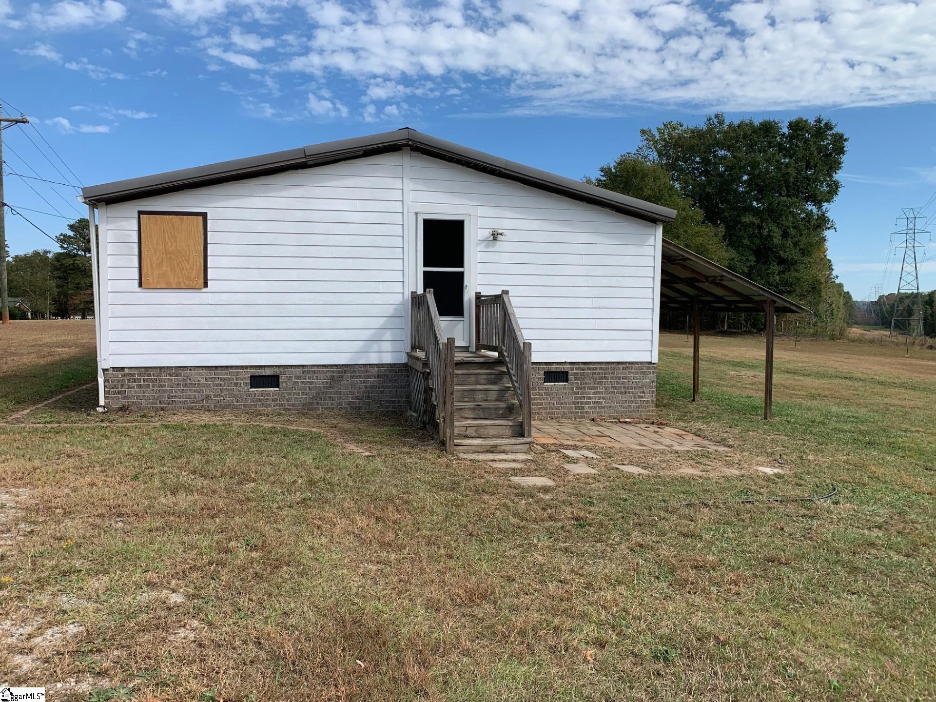 3 BR, 2 BA split bedroom plan on large, level lot! Permanent foundation, metal roof, front and side entries. Great room has a vaulted ceiling and corner fireplace. There is a full dining room plus a breakfast bar in the kitchen. The primary bedroom has two closets, garden tub, and separate shower. The rear of the home has a lengthy lean-to attached for covered storage.