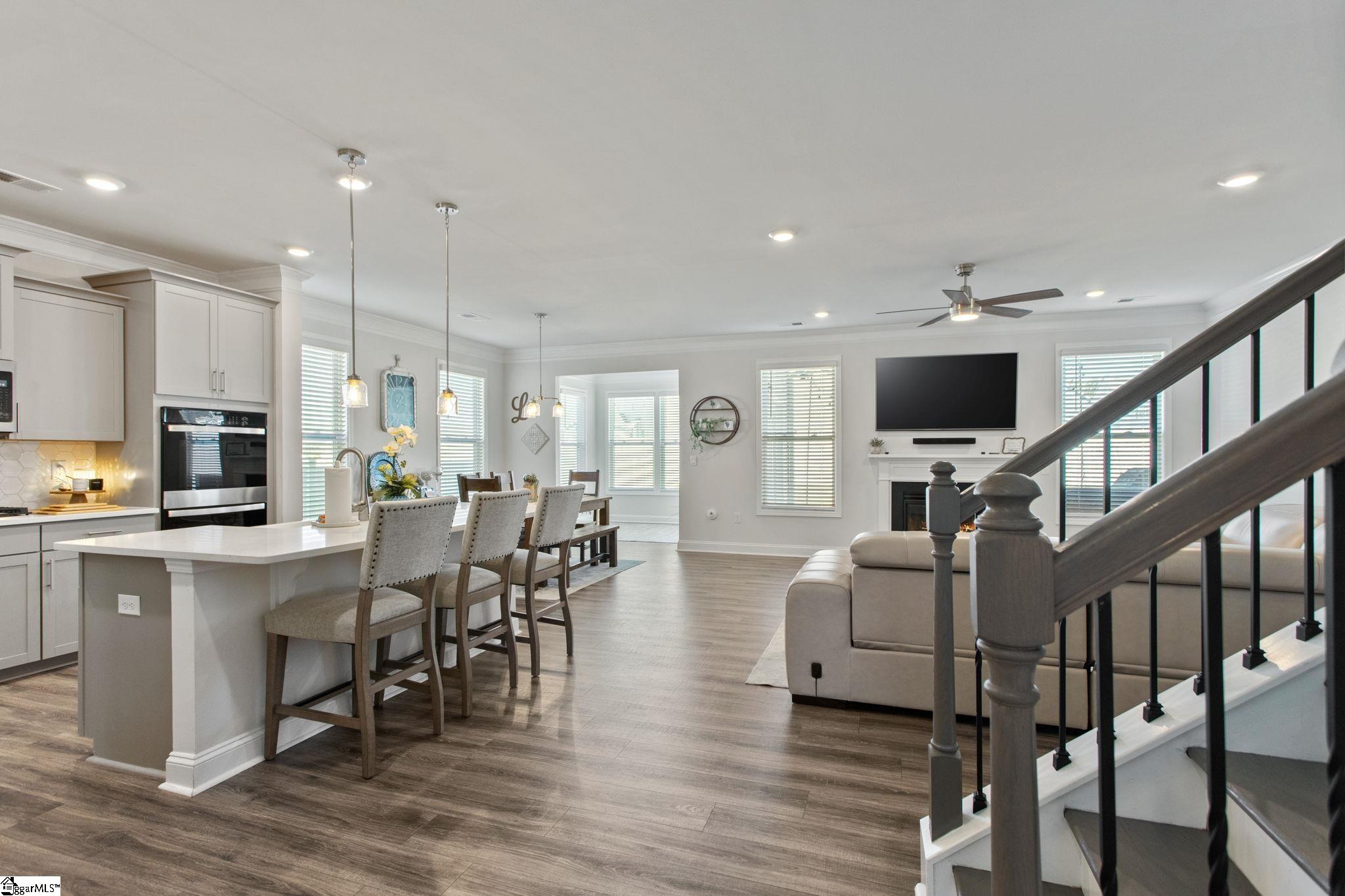 Fantastic floor plan in one of the fastest growing areas of the upstate! 308 Addie Court, purchased as a new build earlier this year, is nestled in Chumley Estates. This 4 bedroom, 3 bathroom home includes a 2 car attached garage and open floor plan. Formal dining is situated off of the entry with coffered ceiling. Butler’s pantry (with access to large walk-in pantry) leads you from dining to kitchen. Main living area features an open floor plan with kitchen, living room, and breakfast nook. LVP flooring throughout main level. Eat-in kitchen with center island has quartz countertops, gas cooktop, and stainless steel appliances. Living room is centered around gas fireplace. Sunroom situated off of breakfast nook with access to the outdoor patio. Bedroom/office also located on main floor and full bathroom. Drop zone with build in cubbies tucked away between garage entry and main living area—a helpful way to keep your home tidy! Upstairs is centered around a family room/rec room. Massive primary suite with sitting room, full bathroom with double vanity, separate shower & tub, and large walk-in closet. Two additional bedrooms, another full bathroom, and walk-in laundry with sink are also on this level! Don’t miss your chance to see this home today!