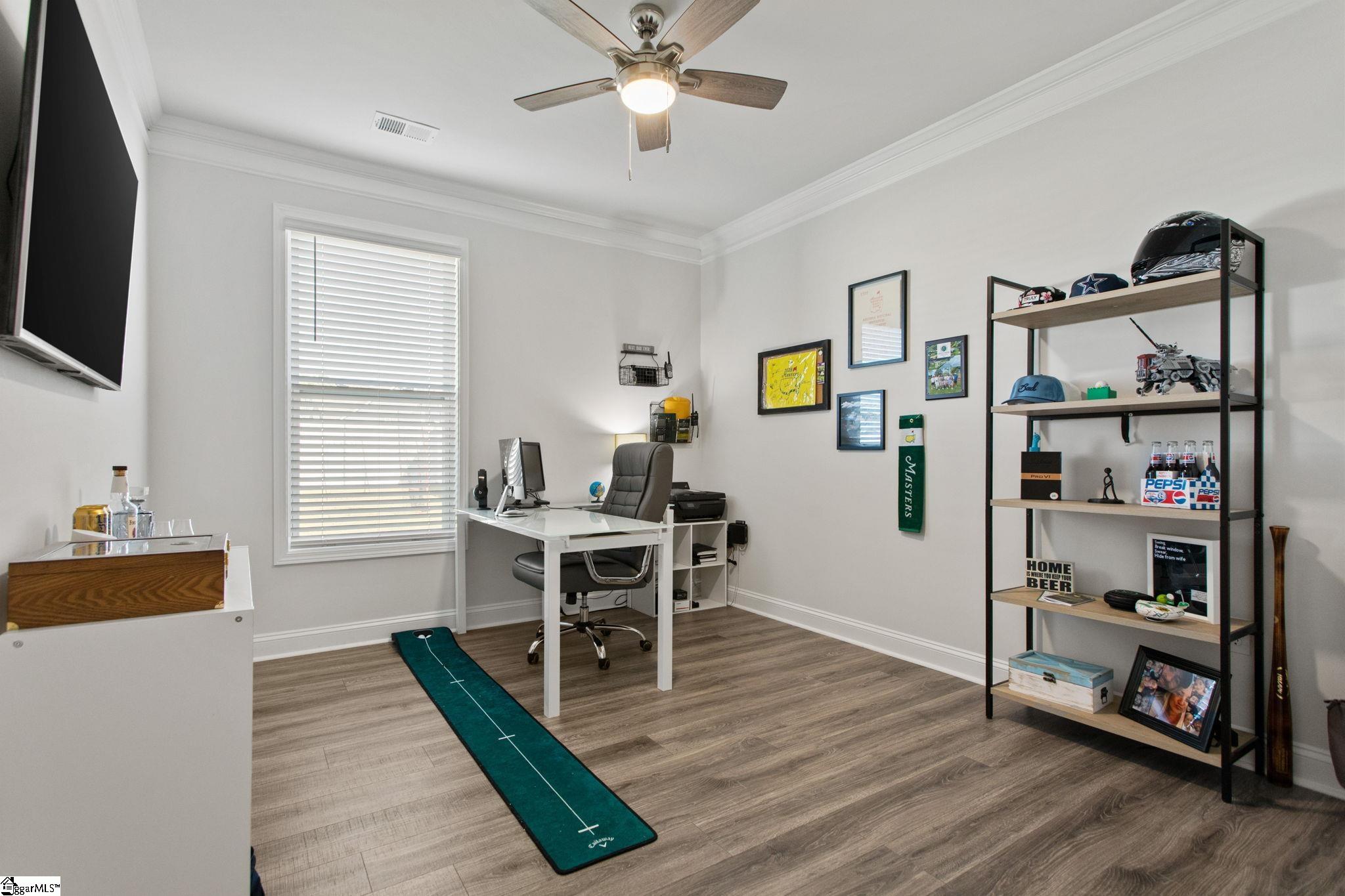 Fantastic floor plan in one of the fastest growing areas of the upstate! 308 Addie Court, purchased as a new build earlier this year, is nestled in Chumley Estates. This 4 bedroom, 3 bathroom home includes a 2 car attached garage and open floor plan. Formal dining is situated off of the entry with coffered ceiling. Butler’s pantry (with access to large walk-in pantry) leads you from dining to kitchen. Main living area features an open floor plan with kitchen, living room, and breakfast nook. LVP flooring throughout main level. Eat-in kitchen with center island has quartz countertops, gas cooktop, and stainless steel appliances. Living room is centered around gas fireplace. Sunroom situated off of breakfast nook with access to the outdoor patio. Bedroom/office also located on main floor and full bathroom. Drop zone with build in cubbies tucked away between garage entry and main living area—a helpful way to keep your home tidy! Upstairs is centered around a family room/rec room. Massive primary suite with sitting room, full bathroom with double vanity, separate shower & tub, and large walk-in closet. Two additional bedrooms, another full bathroom, and walk-in laundry with sink are also on this level! Don’t miss your chance to see this home today!