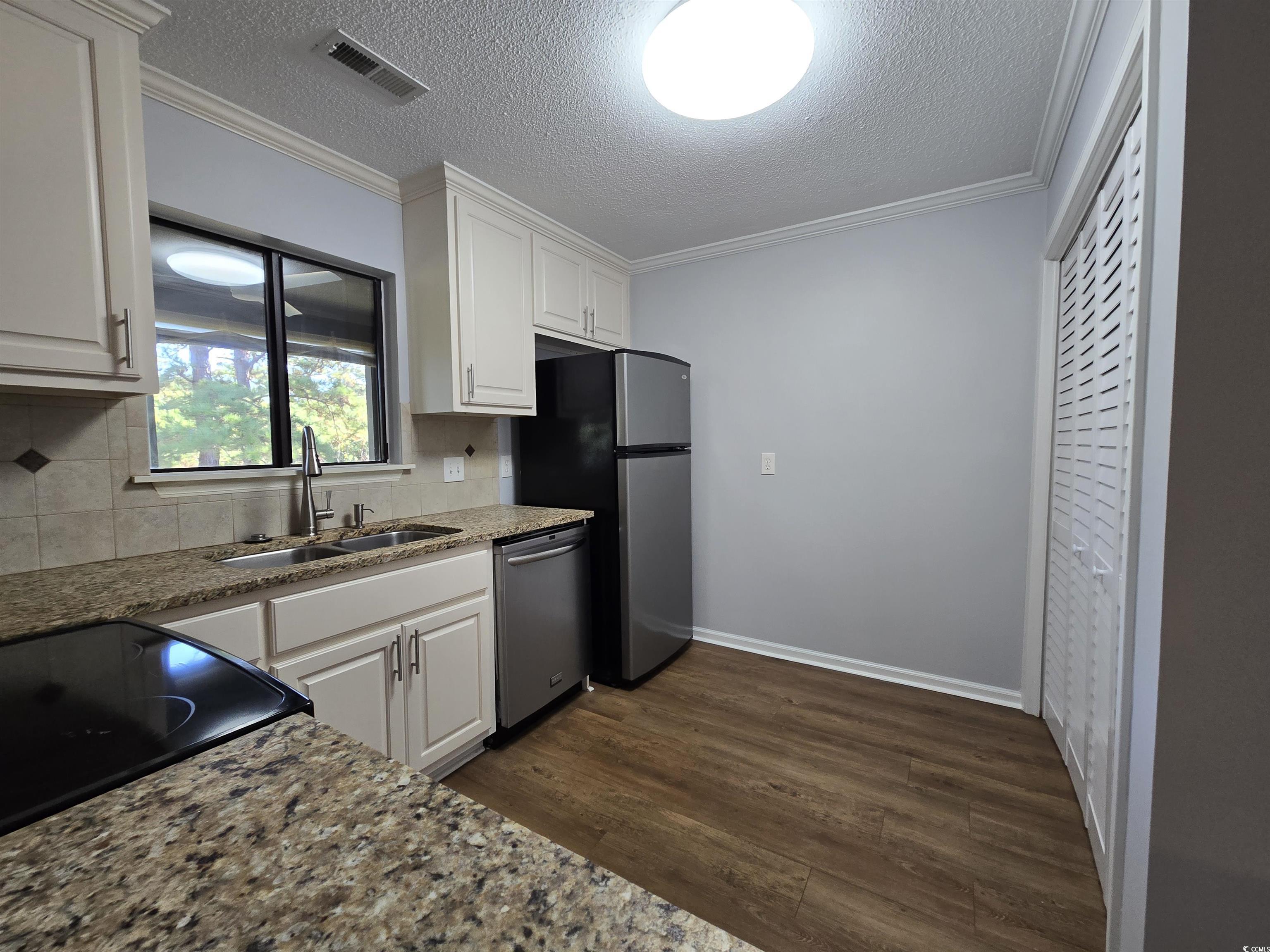 Under 2 miles to the beach, and close to everything you need. This updated 2BR/2BA end-unit sits in a quiet cul-de-sac and features a smart split-bedroom layout with private baths, fresh upgrades, and access to a community pool and grilling pavilion. Convenient to the MarshWalk, dining, shopping, and everyday essentials. Ideal for full-time living, a second home, or investment.