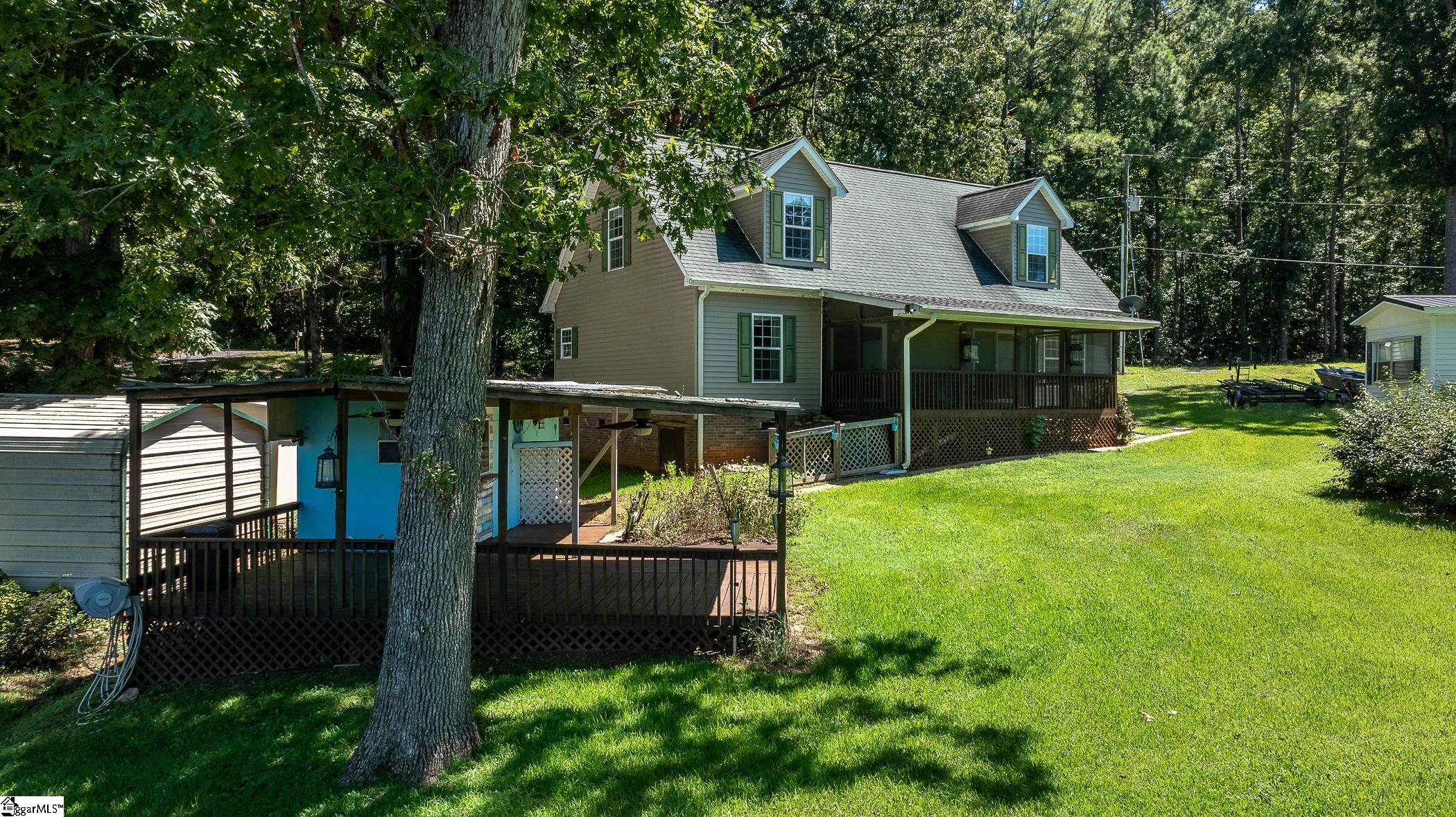 Lake life is calling! This is the one you’ve been waiting for. If you’ve been dreaming of a lake house big enough for family and friends—or even the perfect VRBO/Airbnb spot—you just found it. Pull your pontoon up to the covered dock, hop on the jet ski from the open dock ladder, or cast a line and clean your catch right at the fish station. Dinner is just steps away at the tiki hut with a grill—and yes, it even has its own air-conditioned man cave/she-shed. Morning coffee tastes better on the swing by the water, waving at neighbors as the lake wakes up. Step inside and you’ll love the open living, kitchen, and dining area—all designed to flow together for easy entertaining. From the living room, head out to a porch with an amazing lake view, or relax on the beautiful screened-in porch that connects directly to the master suite. The master-on-main features a private bath with double sinks and a soaking tub, perfect for unwinding after a day on the water. The kitchen comes fully equipped with a refrigerator, stove, dishwasher, and microwave, plus the washer and dryer are included—making this home completely move-in ready. Upstairs, you’ll find two more bedrooms and a full bath—plenty of space for family and guests. And don’t worry about your lake toys—between the oversized 24’ x 21’ two-car carport and two powered outbuildings, you’ll have all the storage and workspace you need. This one has it all—well-maintained, fully equipped, and ready for you to start making memories. Call Pam Borghesani today for your private showing!