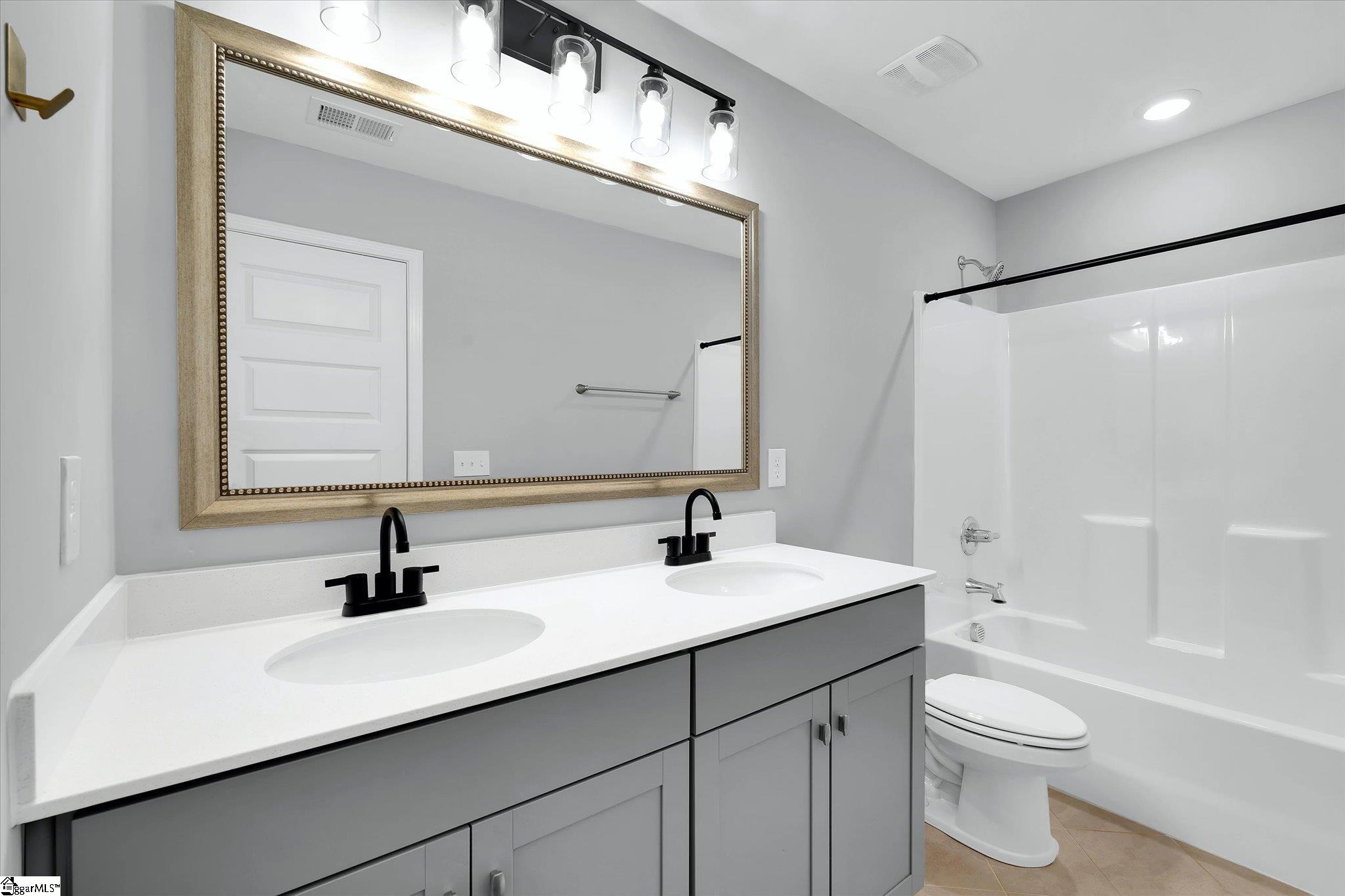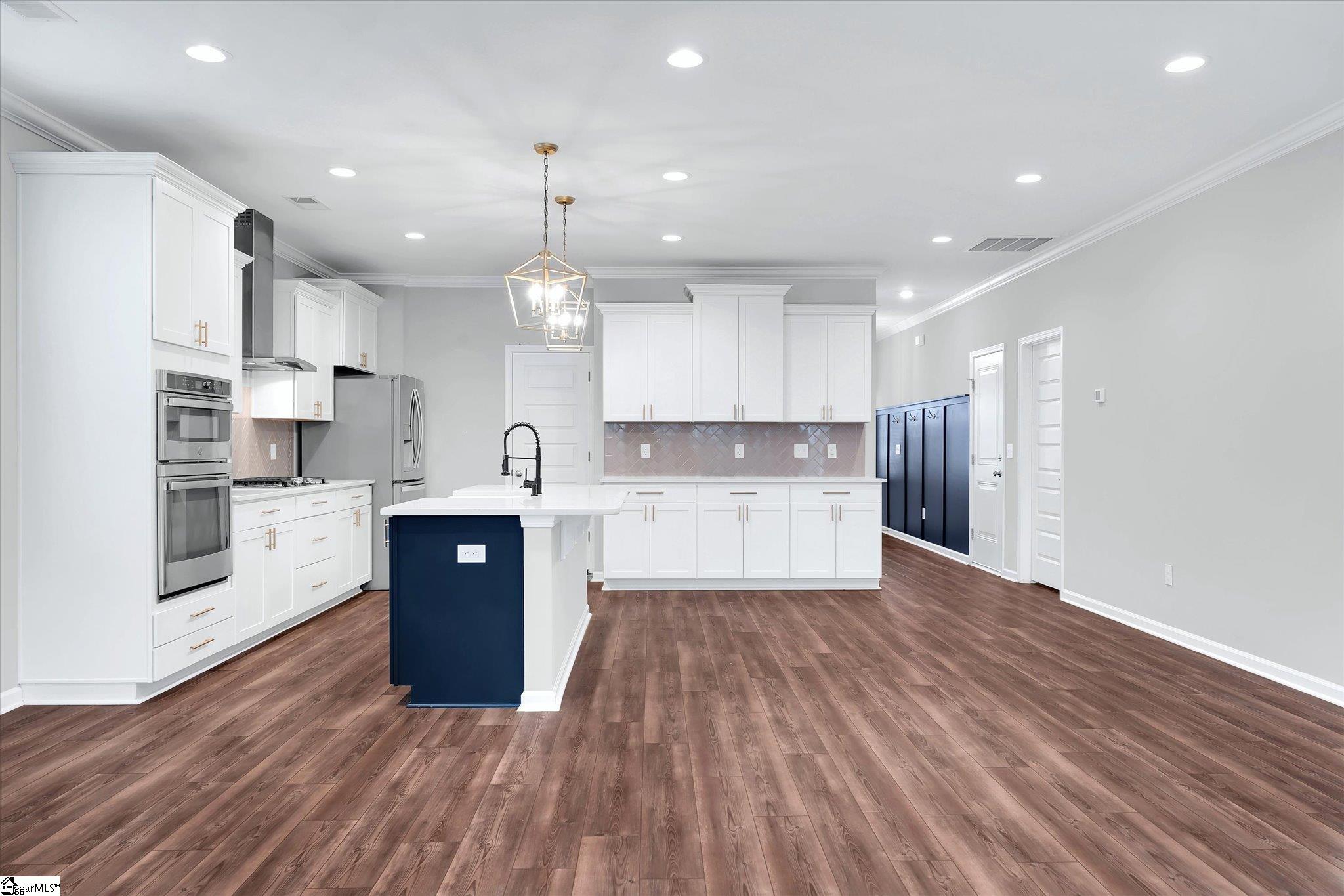 Welcome to this lovely two-story home in desirable Yorkshire Farms, featuring 4 bedrooms, 3.5 bathrooms, a loft, and a huge bonus room (23' x 18'). The open-concept main living area connects the family room, eat-in dining space, and gourmet kitchen—perfect for family living and entertaining. The kitchen showcases quartz countertops, shaker cabinets, a farmhouse-style cast iron apron sink, gas cooktop with built-in oven/microwave combo, and coordinating backsplash, all complemented by 6" luxury vinyl plank flooring throughout. The primary suite is a private retreat with double quartz vanities, a tiled shower, linen closets, and a generous walk-in closet. Upstairs, three additional bedrooms with walk-in closets, a full bathroom, and a loft area provide ample space for family, homework, or a central computer station. The bonus room offers endless possibilities for gaming, media, workouts, or crafting. Additional thoughtful features include ceiling fans in every bedroom, the bonus room, and living room, a keypad-controlled garage door opener, and a versatile pet pad under the stairs for pets or kids. The bonus room includes a small door on the left that provides access to a floored storage area above the garage. Step outside to a covered back patio with ceiling fan overlooking a fully sodded yard—ideal for outdoor dining or relaxing evenings. The front porch is equipped with two hooks, making it ready for a porch swing if desired. Located just minutes from top-rated Powdersville schools, the local library, and I-85, with a quick 15-minute drive to downtown Greenville, this home combines comfort, style, and convenience.