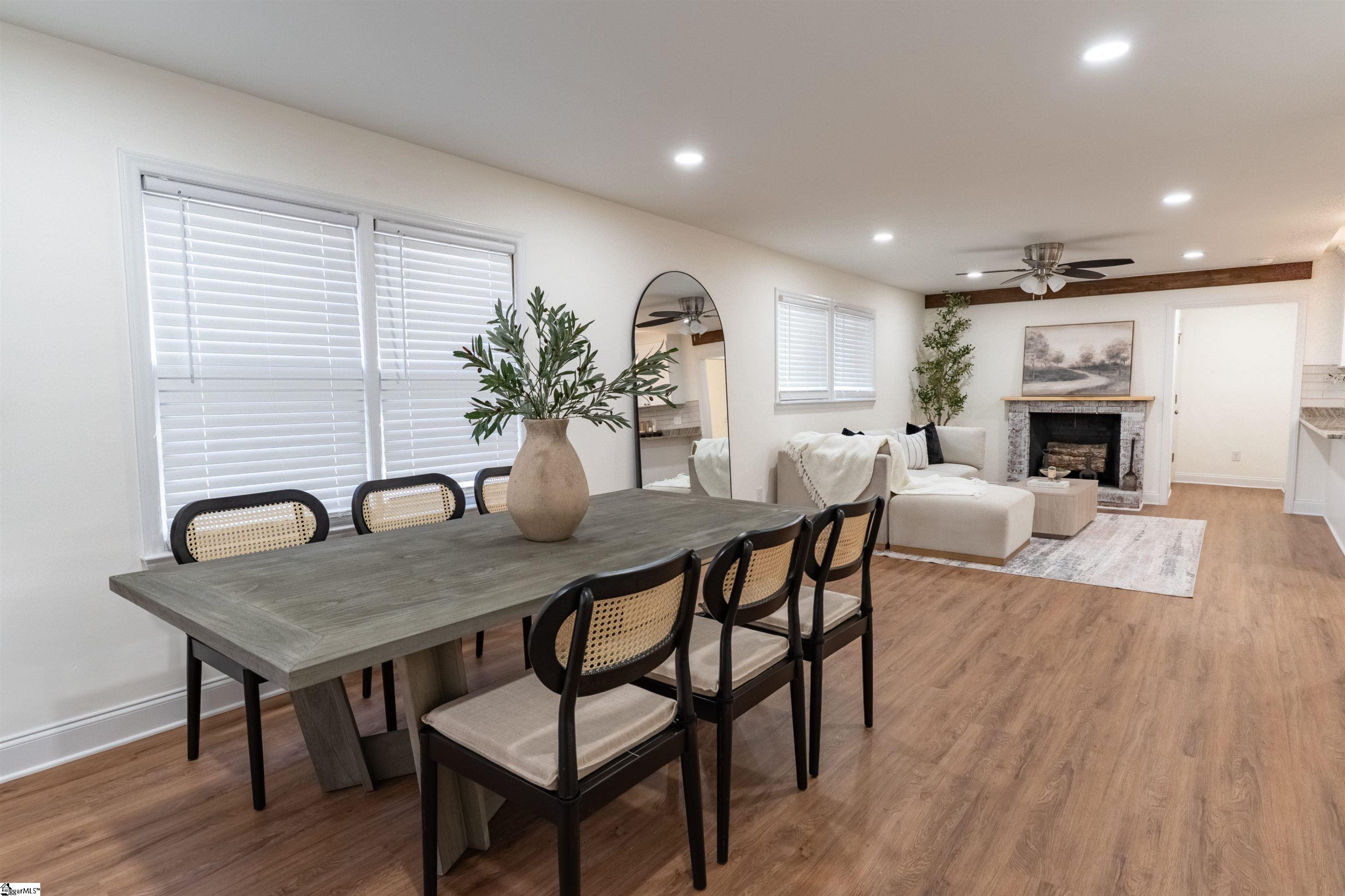 Beautifully renovated, move-in ready home! This 4-bedroom / 2-bathroom home sits right in the heart of Cherrydale—just 7 minutes to Downtown Greenville! Situated on a corner lot with two driveways, fully fenced-in yard, and storage shed, this property offers both convenience and functionality. This location cannot be beat- less than a mile from everyday essentials including grocery stores, gas stations, banks, medical offices, gym, movie theater, pharmacy, and all the shops and restaurants in the N Pleasantburg and Poinsett Hwy area! You’re also just minutes from Piney Mountain Park, Paris Mountain, and Travelers Rest. Inside, you are sure to fall in love with the open floor plan, brand-new LVP flooring, new carpet, and a fully remodeled kitchen featuring granite countertops, new cabinets, and brand-new stainless steel appliance package. The ultra-spacious primary bedroom includes an updated ensuite with new double vanity, tiled walk-in shower, and walk-in closet. Three additional bedrooms and secondary full-bath offer flexibility for family members, guests, a home office, or even a workout room—whatever fits your lifestyle! After making your way to the back of the house, you will find a charming air-conditioned sun-room overlooking a backyard perfect for entertaining with a custom pergola, outdoor lighting, and beautiful mature trees. Also, there's a new water heater, duct work, and the deck was fully repaired! Come see this four bedroom, one-story home with unbeatable access to everything at an unbeatable price—schedule your showing today!!