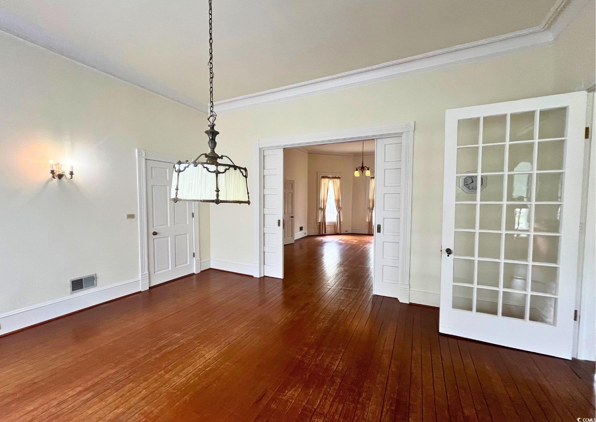 Once upon a time in Kingstree, a town with roots as deep as a towering white pine, the streets whispered stories of past days. Nestled along historic Academy Street, stands a graceful colonial residence built in 1910, a silent witness to more than a century of Southern life. Meet 309 N Academy Street!!!!! This timeless elegant house has 4 spacious bedrooms, 3.5 bathrooms, and 3,615 sq ft of living space. 309 N Academy Street isn't just walls and a roof. It is a century old stage where hardwood floors creak with tales of family gatherings by the fireplace, laughter spilling from detailed woodwork, and the porch echoing with evening conversations. Situated on a generous 1.3-acre lot, its backyard feels like a secret garden with an inground pool for hot summer dips, a pavilion for shaded chats, and a detached three-car garage. There's plenty of space for outdoor entertaining, gardening, or future expansion. Located just minutes from the scenic Black River, known for boating, fishing, and wildlife, this home offers the perfect blend of town convenience and nature's beauty. Whether you're looking for a private residence, a charming Airbnb, a bed and breakfast, or a unique event venue this rare gem in Kingstree delivers. This property is a rare find, combining historical significance with modern conveniences. Its prime location offers easy access to local amenities, schools, and the charming downtown area of Kingstree. Whether you're a history enthusiast or seeking a spacious family home with character, 309 N Academy Street presents a unique opportunity.