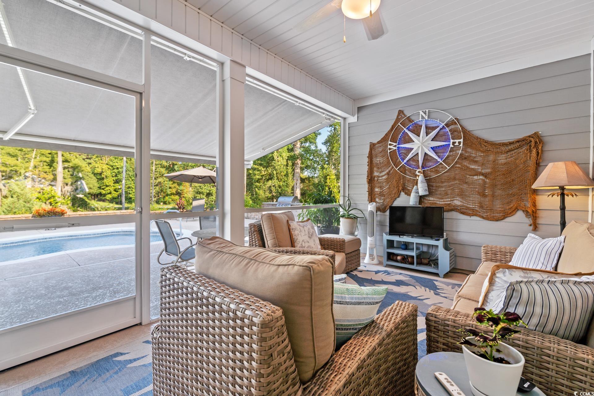 Welcome to your private paradise —where elegance, comfort, and convenience combine to create a truly exceptional lifestyle. Step inside this meticulously maintained no-shoes home, offering nearly 3,000 SF of refined living space. With 3 bedrooms, 3 full baths, 3-car garage, a versatile flex room, a roomy loft, and enclosed porch, this thoughtfully designed residence is a showcase of upscale finishes and modern comfort. The gourmet kitchen is designed to impress and features premium Whirlpool stainless appliances, quartz topaz countertops, a propane gas stove with sleek range hood, apron sink, and a central work island perfect for prepping or gathering. Upgraded soft-close cabinetry and a walk-in custom pantry elevate both style and function and an extended bay window in the dining room (another upgraded) welcomes the morning light. Wake up to serene pool views from your spacious primary suite, highlighted by a tray ceiling and expansive layout. The ensuite bath offers spa-like indulgence with a soaking tub, all-tile walk-in shower, granite, double vanities, water closet and a generous walk-in closet. Throughout the home, you’ll find an array of thoughtful upgrades such as elegant plantation shutters throughout, durable plank tile flooring, 2x6 exterior walls, 6" baseboards and beefy crown molding, solar panel energy with dual Tesla storage batteries, epoxy/flake garage flooring, in-wall pest control system, an advanced HVAC system with UV air purifier and air scrubber, a tankless propane gas water heater and metal slat hurricane protection system. Outdoors, welcome an escape to your private backyard retreat, where luxury meets tranquility. A heated/cooled salt swimming pool with slip and heat-resistant decking, jacuzzi jets and ambient lighting invites year-round enjoyment. Entertain effortlessly from your screened porch, outdoor kitchen, outdoor shower, and motorized retractable awning—all surrounded by a lighted stone wall, a fenced yard, and views of a serene cypress pond. Tucked within the highly desirable Shaftesbury Estates golf community, this home includes a free golf membership to the acclaimed Shaftesbury Glen Golf Course and is centrally located only 15 minutes from lovely Downtown Conway with its rich history, quaint shops, upscale restaurants and the Riverwalk; and with Hwy 22 only 2.5 miles away, you’ll have quick access to shopping outlets, dining, live entertainment, beach activities, and everything the Myrtle Beach area has to offer—just 20 minutes away.