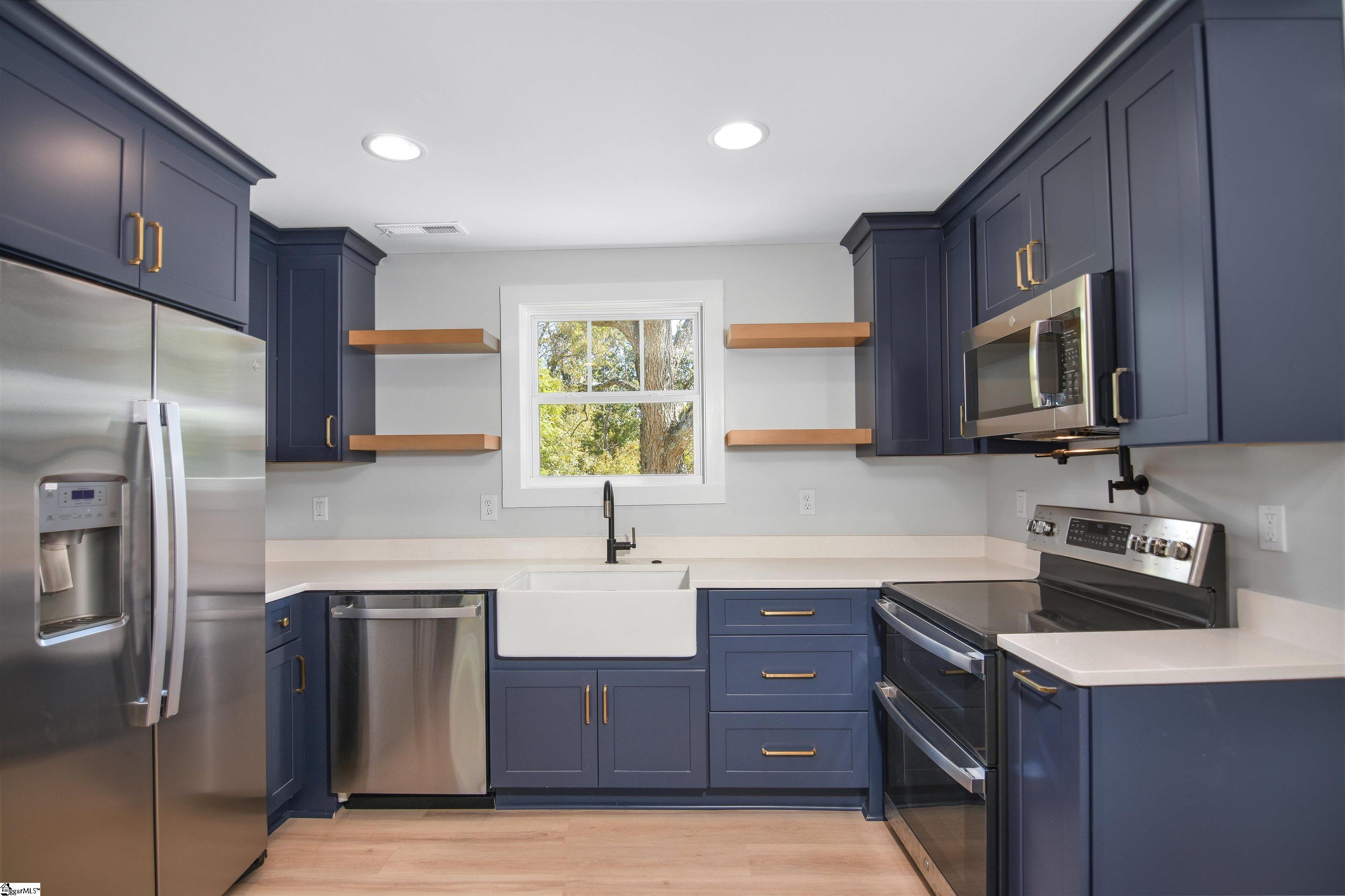 HOME SWEEEEET HOME! This 3BR/2BA ranch home is the sweetest gem around! Located on ~3.1 acres on the highly desired Hillside Church Road in Fountain Inn just 10 miles from Target, Publix, shopping and restaurants on Fairview Road, this property comes with NO HOA restrictions... so bring your dreams, your shop ideas, your organic chickens, or your cute little goats! AND the upgrades and updates have ALL been done on this beautiful ranch home so just bring your suitcases! This home has been updated with new hardiboard exterior, new architectural roof, new plumbing, hvac, and electrical, plus a wholly renovated interior! WOW! These sellers left nothing out! From the moment you pull into the long driveway, you will quickly notice the two updated front porches complete with bead-board ceiling plus the new exterior lighting and landscaping! The interior is beautiful with new flooring, painting, and lighting throughout. The great room just naturally opens to an upscale custom kitchen with lovely cabinetry including such features as pantry pullouts, soft close, a Rev-a-shelf cabinet organizer, drawers, instant hot pot filler faucet, quartz countertops, and all brand new appliances including a refrigerator, double oven, and disposal! Fall in love with this kitchen! The attached dining space also boasts a great coffee station area with another pot filler faucet and access to the new back deck! The main level includes two bedrooms and the two gorgeous bathrooms. The primary suite on the main level with vaulted bead-board ceiling provides private access to the secondary front porch, a walk-in closet with excellent built-in shelving, and a private bath with dual sinks and tile lined bath/shower! Completing the main level is an amazing laundry room with built-ins including a drop station, laundry cabinetry with sink, new stacked washer and dryer, plus secondary walk-in pantry! The attached one car garage is extra long with a garage door opener. Up the hardwood stairs, check out the third bedroom with walk-in closet that can also serve well as a private office or just extra flex space! Don't forget the extra patio in back, plus added landscaping around this acreage. The detached shed provides space for your outside dreams.... store your dream car, convert for animals, or whatever your hobby needs! The acreage is an open canvas for creating these dreams as you desire... or just provide that perfect country-type tranquility you are searching for! Stop your search today! Come home to 309 Hillside Church Road where you will be surrounded by high end homes and wonderful neighbors!