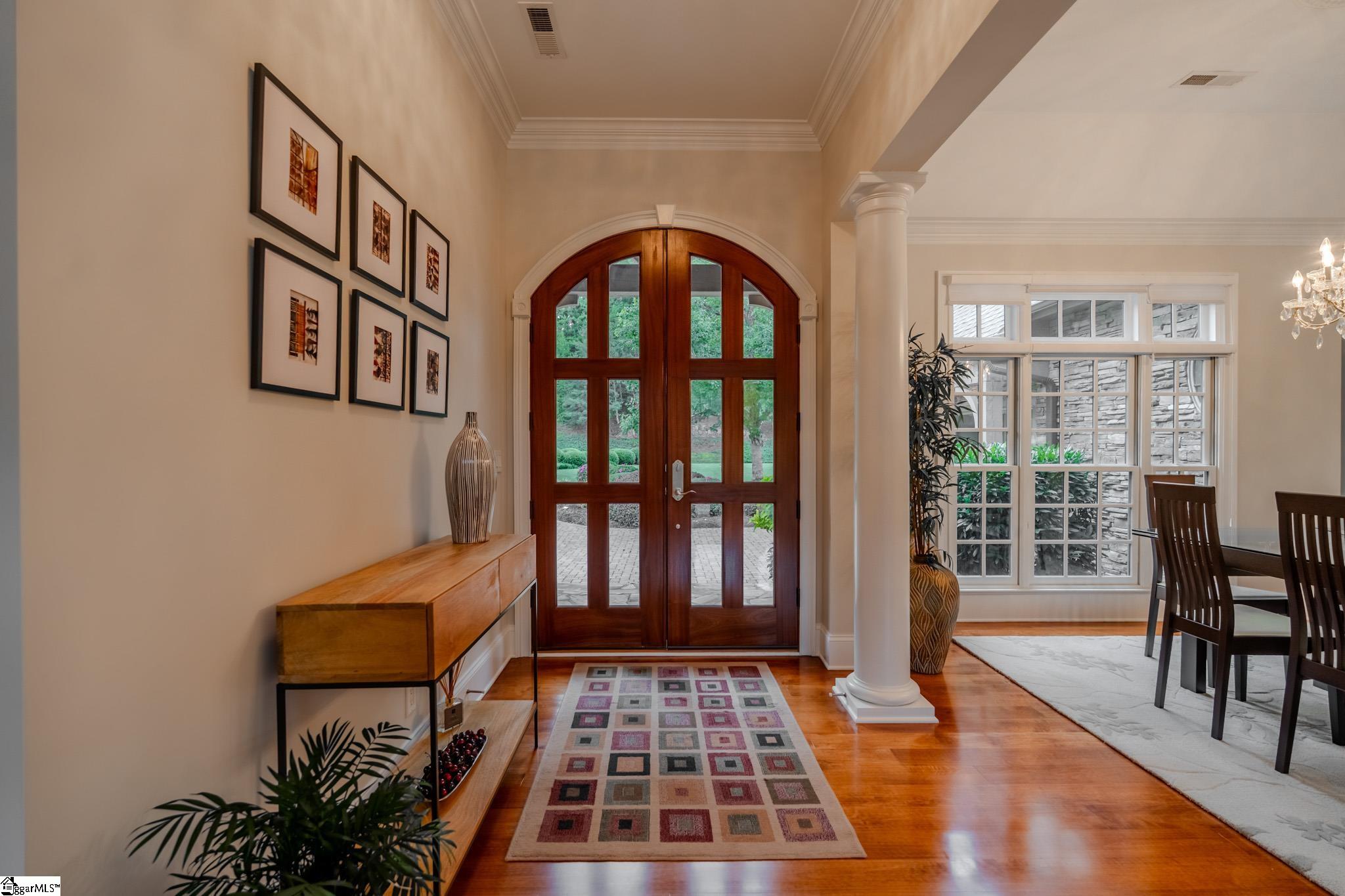 Conveniently located on a premium vista lot in The Cliffs Valley luxury community, 309 Split Creek Trail blends mountain living with everyday comfort in a way that feels both refined and inviting. Backed by the Blue Ridge Mountains and just a short walk from the community’s 15,000-square-foot Wellness Center, this home is designed for those who want the best of nature, connection, and convenience. Set at the end of a quiet cul-de-sac lined with Japanese cherry trees, the home greets you with a hand-laid stone driveway leading to a welcoming courtyard. Custom mahogany double doors open to soaring ceilings and a dramatic 20-foot stone fireplace—the centerpiece of an open light and bright floor plan that flows easily between the living, dining, and kitchen spaces. A Viking Professional kitchen makes entertaining effortless, while the adjoining breakfast room frames ever-changing mountain views. The primary suite is its own retreat, with a bay window overlooking the mountains, dual custom closets, and a spa-like bath. Guests will feel at home in the lower-level suite, which offers its own living area, kitchenette, and private patio. Upstairs, a large bonus room with a half bath and walk-in attic storage provides flexible space for a media room, office, or additional guest quarters. This home is built for both gathering and retreat. Sip coffee in the breakfast nook as the seasons unfold outside, host evenings by the fireplace with friends, or recharge with a quick stroll to the Wellness Center for a swim or workout. With a new architectural roof, refreshed interiors, and thoughtful updates throughout, it is move-in ready for its next chapter. Located 35 minutes from downtown Greenville and minutes from Traveler's Rest and Hendersonville, Cliffs Valley offers an appealing location. Valley Members enjoy access to all 7 world class Cliffs Communities located a short drive in either direction. At 309 Split Creek Trail, luxury and lifestyle go hand in hand—a home that balances mountain serenity with modern living, offering a place to connect, recharge, and truly belong.