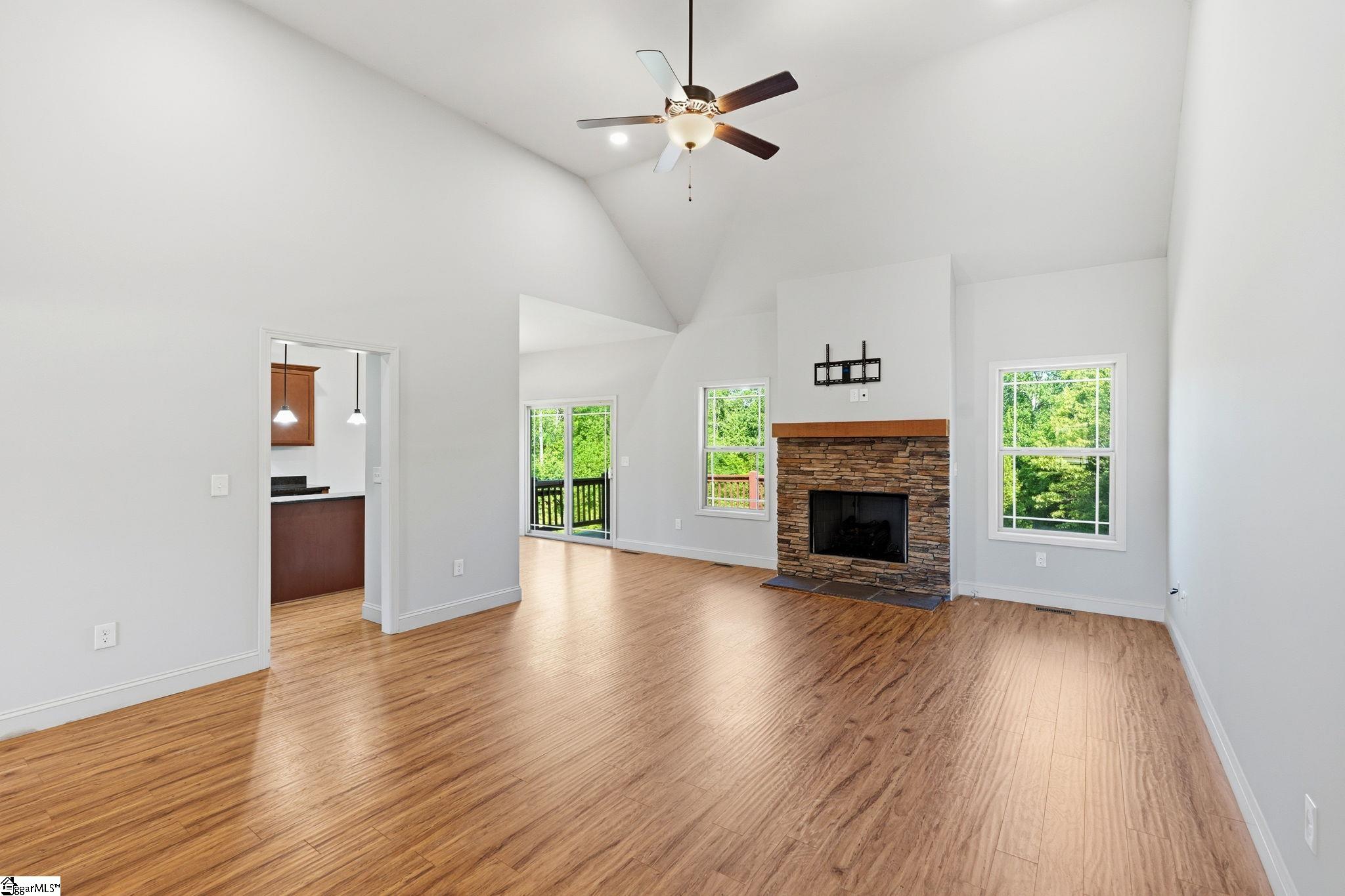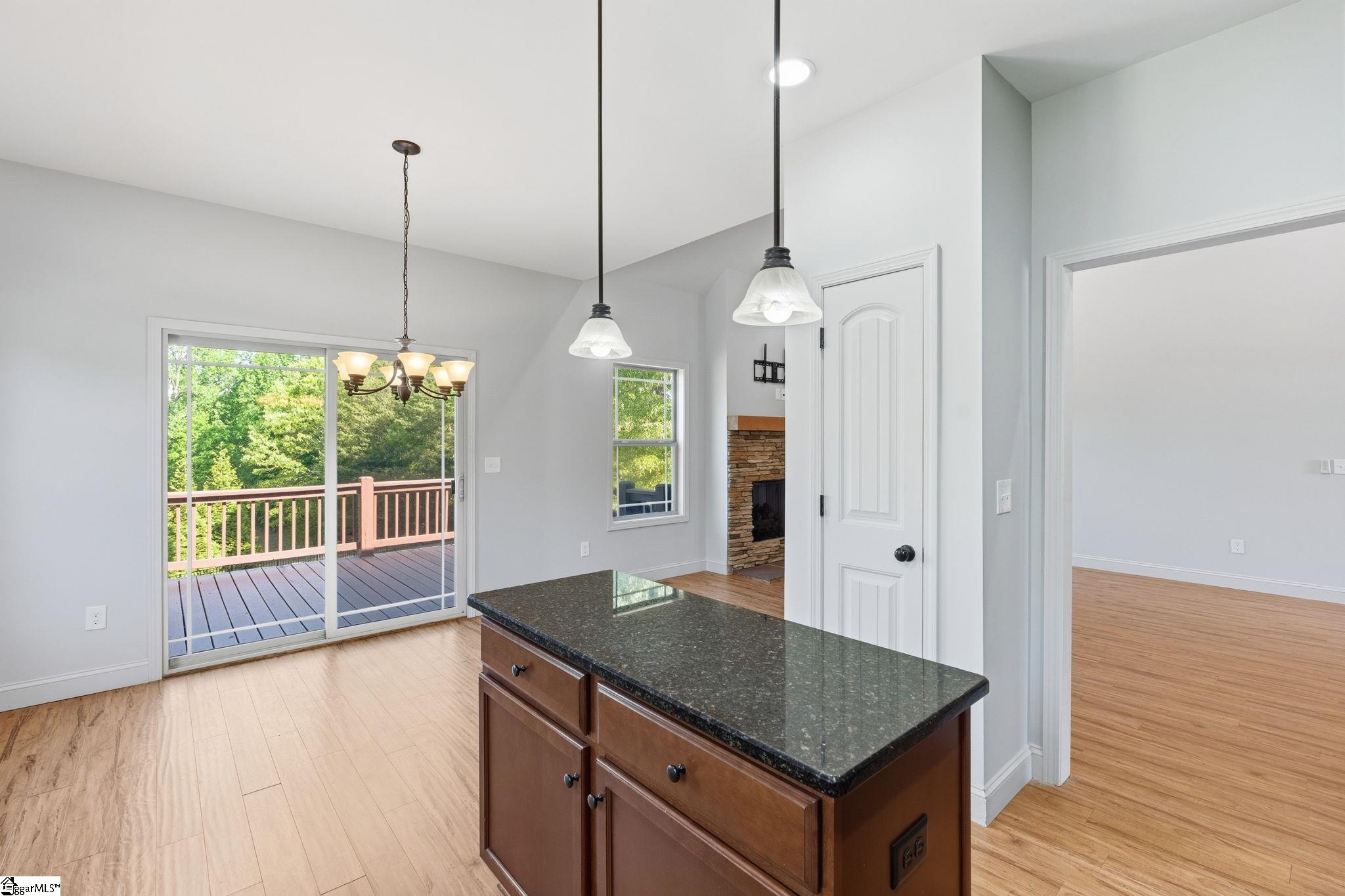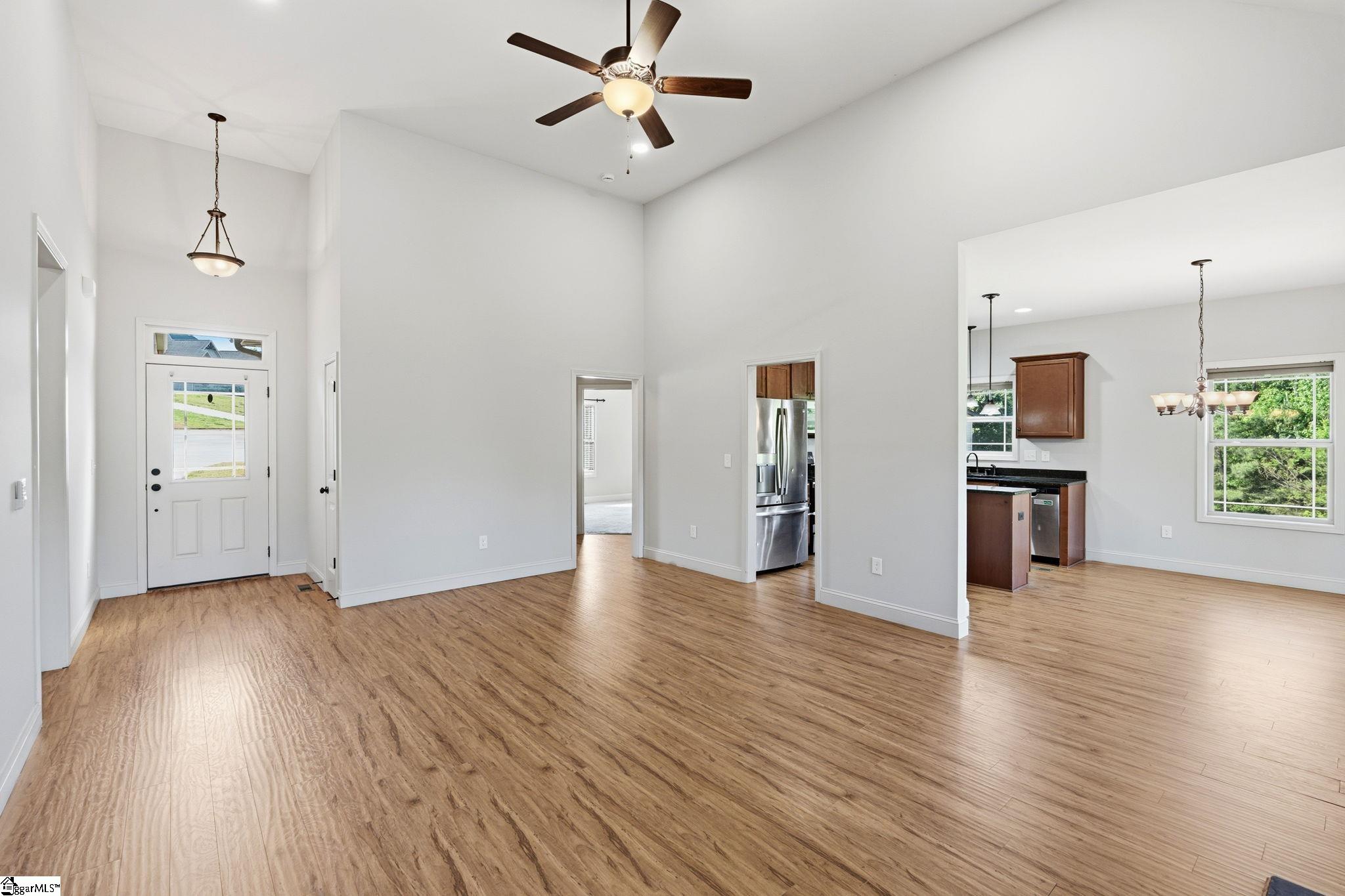 31 Caperton Way is a well-maintained home located in the quaint Sharon Ridge subdivision, just under four miles from downtown Greer’s shopping and dining. This 3-bedroom, 2-bathroom home features a spacious living room with gas log fireplace and a layout that flows easily into the kitchen. Complete with granite countertops and stainless-steel appliances, this kitchen features ample cabinetry, center island and separate breakfast area. Freshly painted interior and freshly painted deck – this home is move in ready! The main level includes a primary suite with dual vanities, a garden tub, separate shower, and walk in closet, along with two additional bedrooms that share a full bathroom. A walk in laundry room with a sink and extra storage adds everyday convenience as well. Upstairs, a flexible space over the garage provides the perfect option for a home office, playroom, or additional living area. Outside, enjoy a large wooden deck overlooking a fully fenced backyard with iron fencing, lovely paved, large patio with lighting and a fan ideal for a firepit or lounging, and beautiful views – sometimes even the Blue Ridge Mountains in the Fall. This home also features a wonderful, detached shed providing ample yard storage space or a workshop, a water recirculation pump, and a whole house plug hookup for a generator. A great opportunity in a convenient Greer location. Schedule your chance to view this amazing home today!