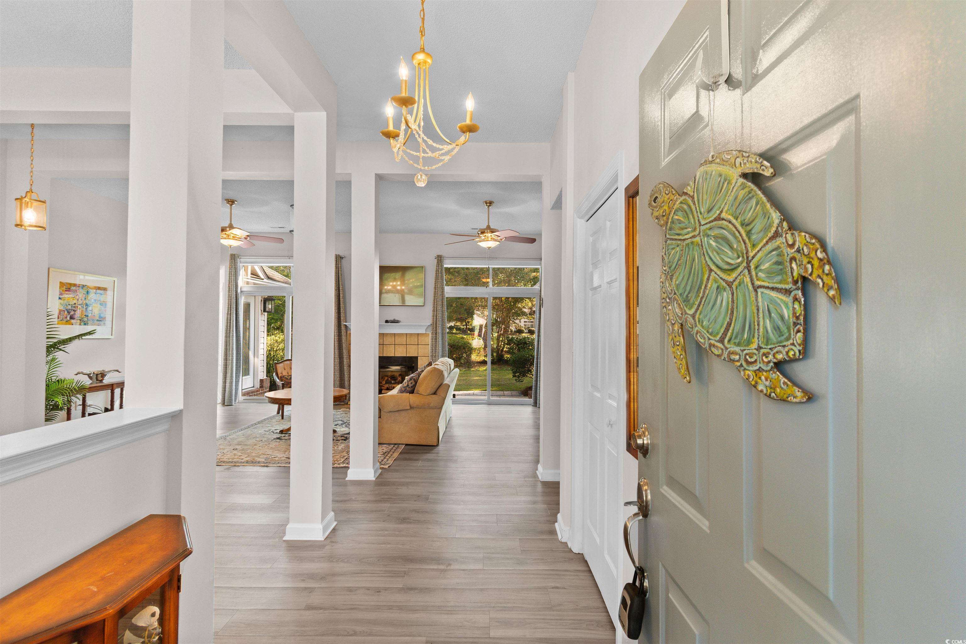 Welcome to 31 Haig Ct., a beautifully built and maintained single story three bedroom, two and a half bath home that blends timeless charm with modern comfort. Step inside to find bright, airy living spaces filled with natural light, perfect for both relaxing and entertaining. The thoughtful layout includes a welcoming entryway, large windows, LVP throughout and cozy details that make you feel right at home. The great room has 10' ceilings, gas fireplace, and double sliding glass doors to the back patio and golf course views. The dining room scenery is equally as good with views of the tremendous Crepe Myrtles and front lawn. A newly remodeled kitchen is what every cook loves to hear and this one is sure to please with new stainless appliances, quartz countertops, glass tile backsplash, cabinets, breakfast bar, nook, vaulted ceilings and lots of windows. Off of the kitchen is the laundry room, half bath and garage entry. The owner's retreat is located at the rear of the home and has sliding doors leading to the patio, and an ensuite bath with double doors, large walk-in closet, large vanity, tile floors, walk-in shower and a garden tub for relaxing after a busy day. Two additional bedrooms are in the front of the home and share a hall bath. Outside enjoy a beautifully landscaped yard with mature trees, lush greenery, and a shaded front lawn that offers the perfect spot to unwind - great curb appeal and also located on the 2nd hole of popular Wedgefield Country Club. Wedgefield is an active community lined with amazing moss draped live oaks and designed with it's very own public 18 hole golf course plus a boat landing into the Black River. Enjoy entertainment and a burger at the onsite Brick House Pub, an easy golf cart ride from home. Close to historic downtown Georgetown waterfront Harbor Walk, shopping, wonderful restaurants, fresh seafood vendors, and access to five rivers that surround the area with an easy drive to Pawleys Island, the closest beach access. *Buyer is responsible for verifying square footage of home, lot size and HOA information.