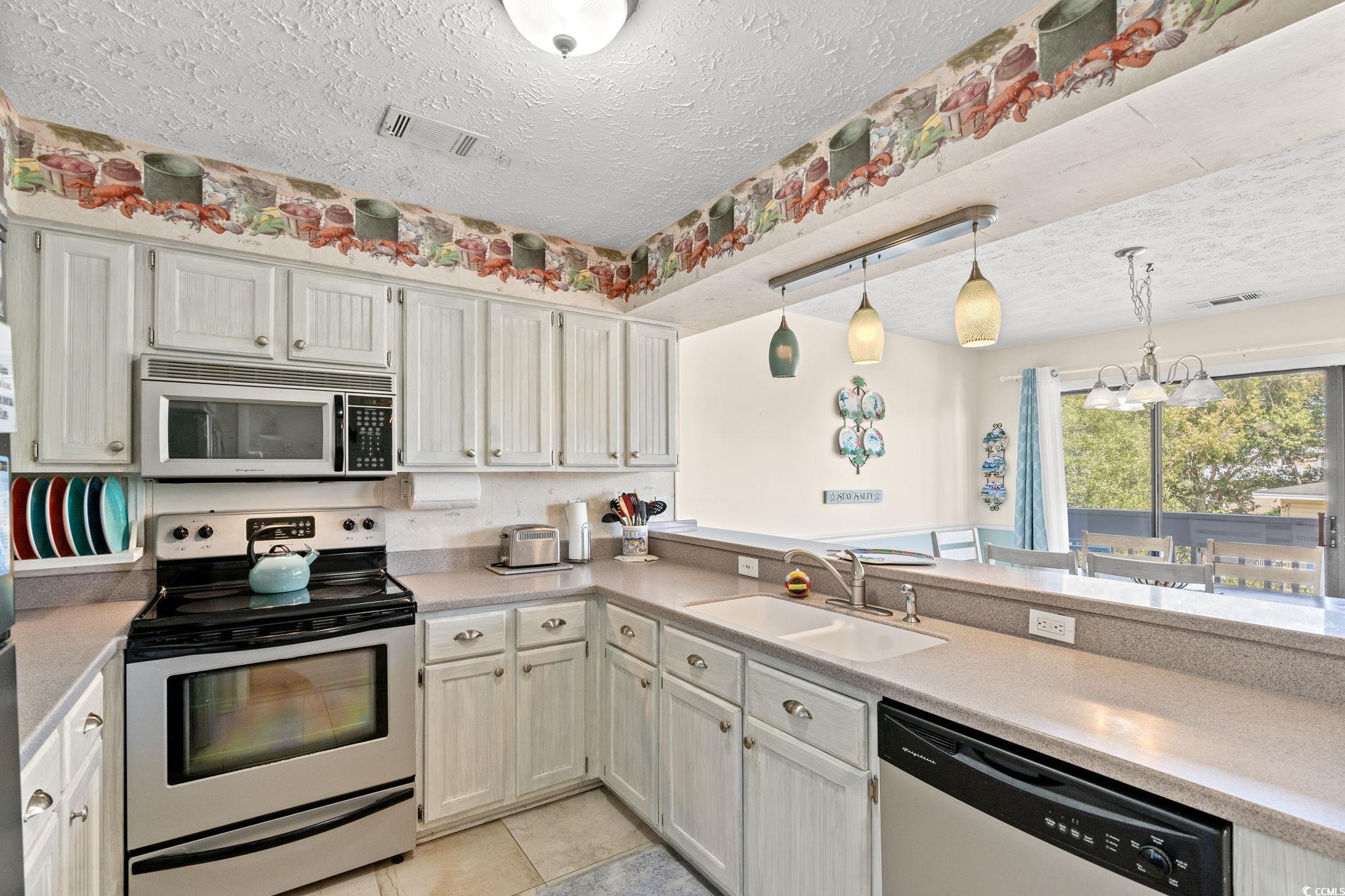 Move-in ready and beautifully furnished, this turnkey 3BR/2BA condo in highly desired Surfside Beach, SC is just one block from the ocean. Sea Grove Condominium is tucked away among mature live oaks and lush tropical landscaping, featuring a true coastal lifestyle with a resort-style pool, gazebo, and grilling area for owners and guests. Inside, you’ll find a bright and sunny open living & dining area that flows onto a large private balcony—ideal for enjoying ocean breezes and a peek of the Atlantic Ocean. This well-maintained condo features Luxury Flooring in the living and dining areas, ceramic tile in the kitchen and baths, and carpeting in the bedrooms. The spacious primary suite includes an en-suite bath, vanity area, and large closet. Additional highlights include a walk-in pantry, full-size washer & dryer, interior and exterior storage closets, and parking both under the building and in front. 2 parking spaces per unit-One may be used for Your Gas Golf Cart. This property is ideal as a income-producing vacation rental, second home or primary home. Conveniently located near the Surfside Beach Pier, Myrtle Beach attractions, golf courses, entertainment, dining, shopping, and medical facilities, you’ll have easy access to everything the Grand Strand has to offer. All square footage is approximate and not guaranteed. Buyer is responsible for verification.