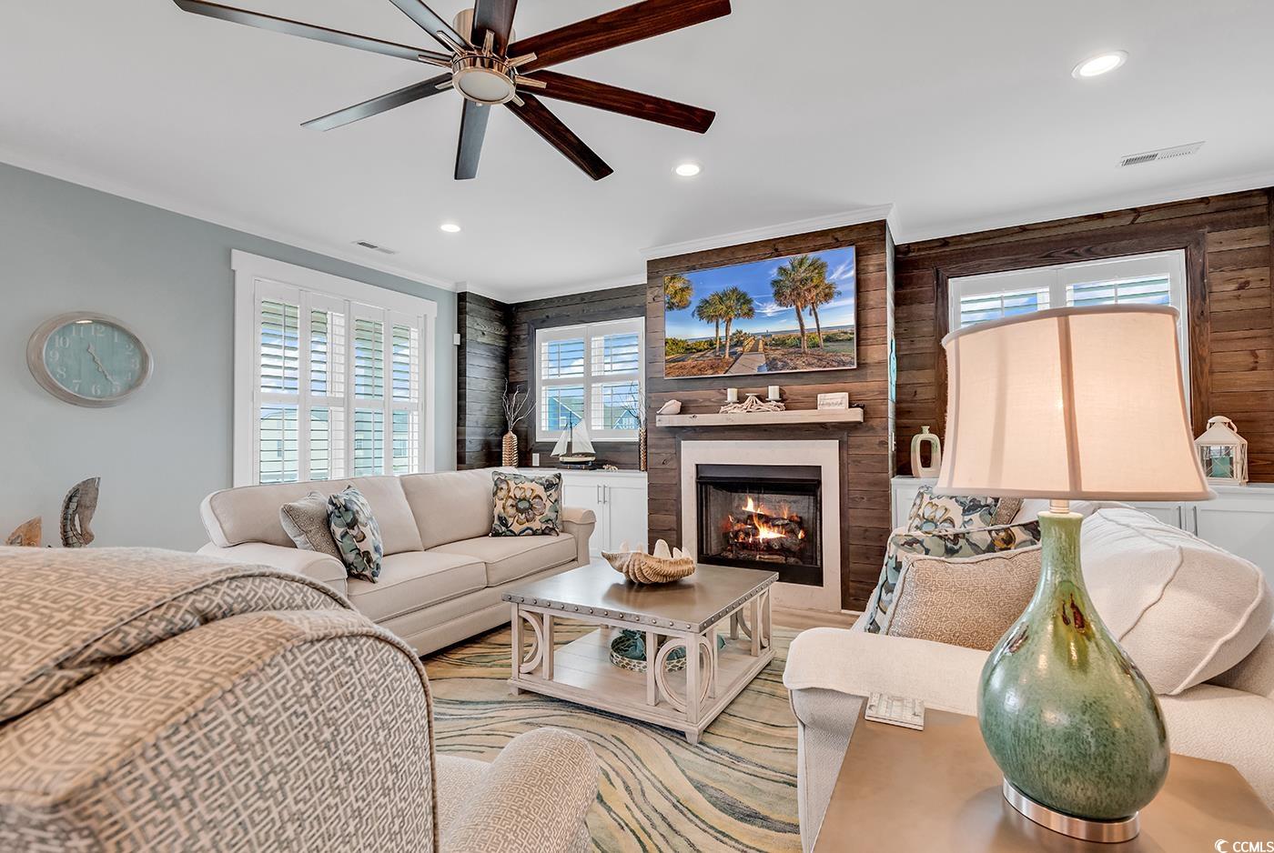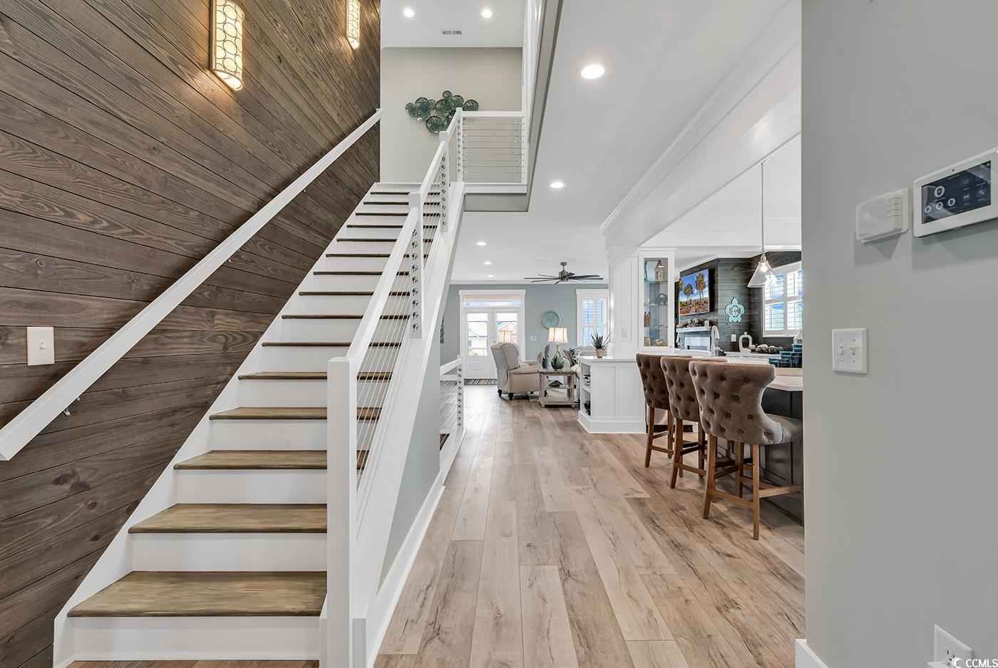 Introducing 310A N Ocean Boulevard, a custom built coastal retreat with quality construction and design. This beautiful 5 bedroom, 5.5 bath home sits perched on a corner lot in the heart of Surfside Beach with fantastic views of the Atlantic Ocean. Meticulous attention has been given has to detail, including the elegant finishes and furnishing. From the moment you arrive, you will feel at home. As you ascend the stairs to enter the home, the salt breezes begin working their magic and erasing the stresses of life. You may find yourself wanting to enjoy relaxing on the front porch for a little while. Once you enter, you are certain to fall in love with this unique home! The first level is the perfect place for guest to have their own spaces. The living area has built-in cabinets and a gas log fireplace. It opens to a kitchenette that includes space for a table, quartz countertops, glass tile backsplash, a stainless steel sink, dishwasher, and refrigerator. There is a walk-in laundry room with shelving for extra storage. Also on this level are two huge bedrooms, each containing a private bath. One of the bedrooms has a private sitting room, and the other has multiple sleeping options. The second floor is the main living area and the hub of life in this magnificent home with fantastic ocean views. The open floor plan features a great room with built-in cabinets, gas log fireplace, and access to another large porch with plenty of space for outdoor eating and entertaining. The open dining space has seating for 10. The kitchen is a chef's dream, open and airy with a large island and plenty of room to create delightful meals. It includes quartz countertops, glass tile backsplash, stainless steel appliances, and an abundance of cabinets and counter space. A half bath, large pantry, and two bedrooms each with private baths complete this level. The highlight of this amazing property is the primary suite that encompasses the entire 3rd level. A hall of windows looks up into the open cupola and down into the lower level and separates the bedroom from the en suite. This private oasis offers a luxurious area for sleeping with a private balcony offering sweeping views of the ocean. A large custom walk-in closet and additional closet with it's own stackable laundry area give plenty of space for storage. The private bath has dual vanities with quartz countertops and an oversized tile shower. From top to bottom, this retreat exudes grandeur while remaining cozy and welcoming. An elevator at the back of the home goes from the ground level to the second level. There is an outdoor shower and plenty of room to park in the two driveways or underneath the house. There is also space in the backyard to add a pool (approx. 12x25) This home is conveniently located across the street from a public beach access and only 3 blocks away from the new Surfside pier as well as restaurants and shops. You will not want to miss out on this crowning jewel located in Surfside Beach!