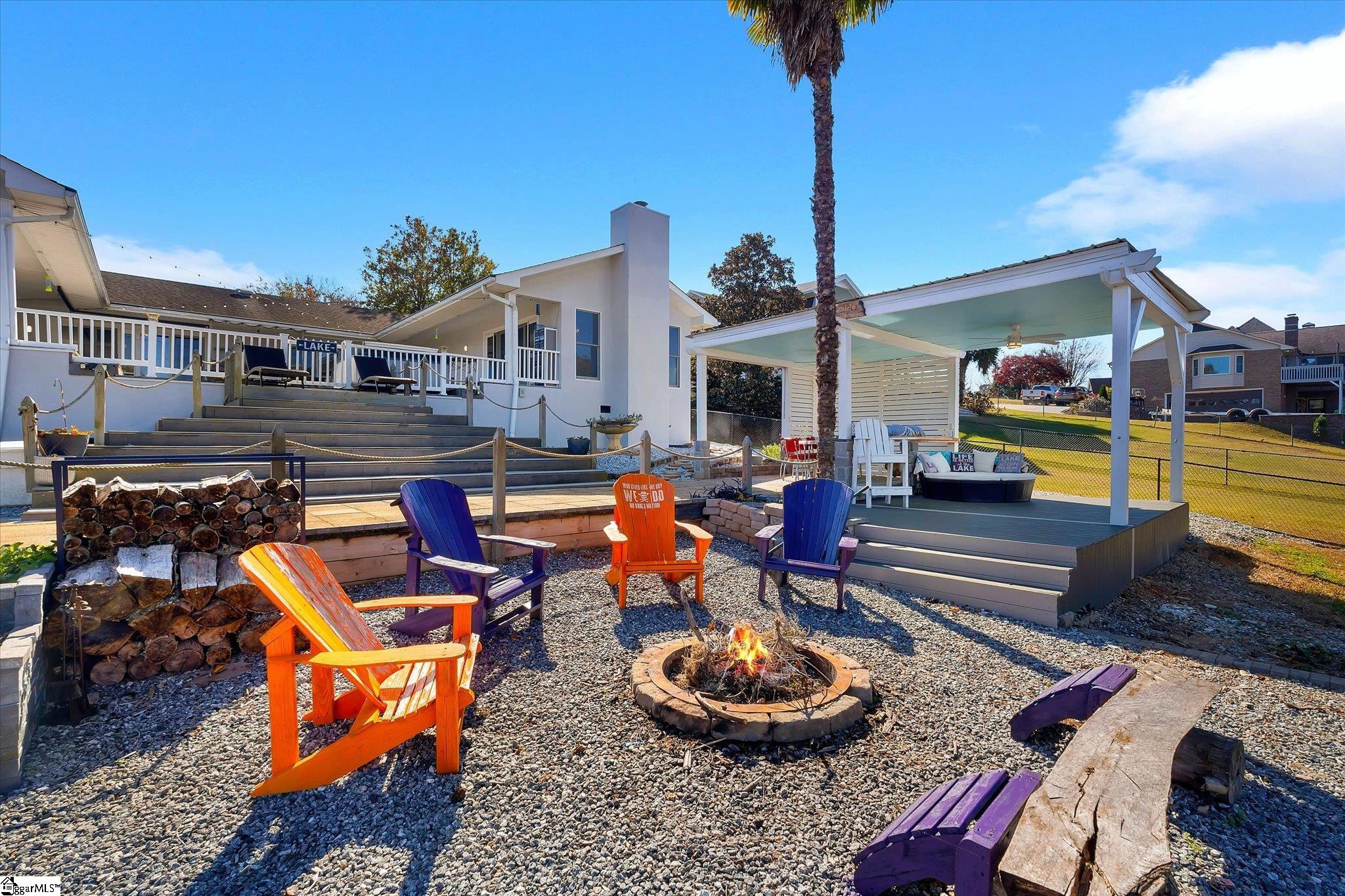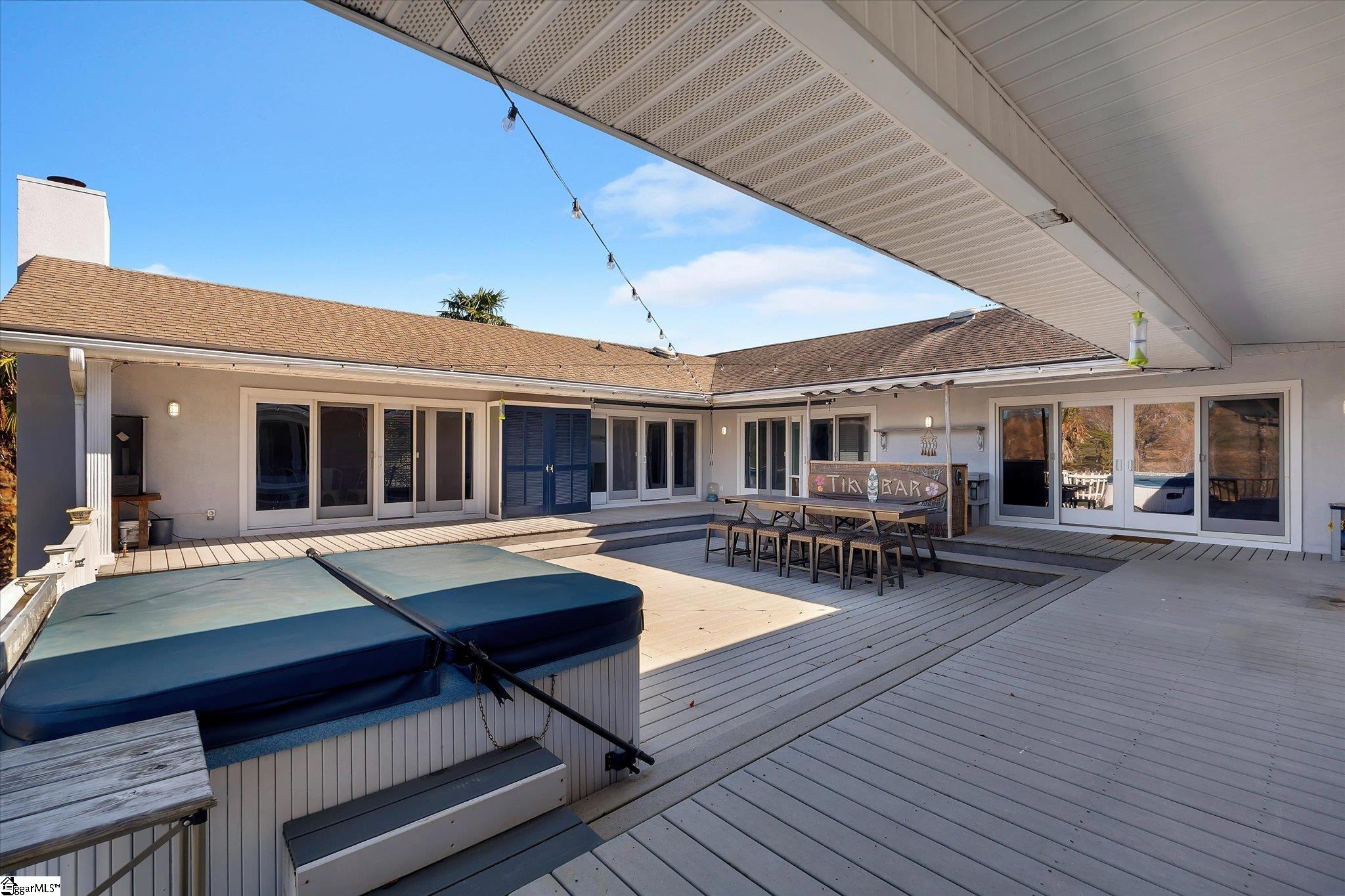 Stunning lake Hartwell waterfront home with deep water, big-water views, and an unbeatable outdoor living setup! This 3BR/2BA home is zoned to North Pointe, McCants, and TL Hanna schools and is designed with a versatile, no-wasted-space floor plan built to maximize the views. The primary bedroom, family room, and kitchen/dining areas all overlook the lake, and the home features life-proof LVP flooring throughout for durability and easy maintenance. The updated large kitchen has abundant cabinetry, granite countertops with bar seating, stainless-steel appliances, a spacious center island, and a built-in kitchen vacuum system. Kitchen opens to the dining area with wood-burning stone fireplace (electric insert), dual sliders, and walls of windows with dual glass. All appliances—including washer and dryer—convey for move-in ease. The primary bedroom suite also features its own wood-burning stone fireplace, private lake-view slider, and an updated en-suite with a custom vanity, built-ins, and stunning double boat-shaped sinks. The walk-in closet offers built-ins, and while the shower was not redone, the space is clean and functional. The second full bath has also been beautifully updated with a double-sink vanity, tiled tub/shower with niche, and a lighted mirror. Outside Is Where This Property Truly Shines. Enjoy one of the most impressive outdoor living setups on lake Hartwell: Massive 1,329 sq ft composite deck, Tiki bar, shuffleboard table, hot tub, and Gas line for grilling. There is a fire pit area, a powered pergola with dual ceiling fans, and fenced backyard. For your waterfront playground, this property includes a max-sized covered double-slip dock, hydro boat lift, and tons of room for all your lake toys. Even better—the sale includes a 2019 18-ft Bayliner boat with 2018 115 HP motor, plus nearly every accessory you see: Staying with the home are the Boat, Dock toys, Tiki bar, Shuffleboard table, Hot tub, Pool table, Kayaks, Sectional sofa, Twin beds, Outdoor furniture, Round dining table, Garage cabinets, Exterior cabinets … and more! Plus both the interior and exterior of the home were recently painted. Home is conveniently located within 5 minutes of the Walmart and other shops, restaurants and more on Clemson boulevard. With deep water, big water views, extensive updates, a ready-made entertainment deck, an included boat, and a max-size dock, this is easily one of the best values on lake Hartwell. Homes offering this combination of location, water depth, outdoor living, and included features are rare—don’t miss your chance to make this extraordinary lakefront retreat yours!