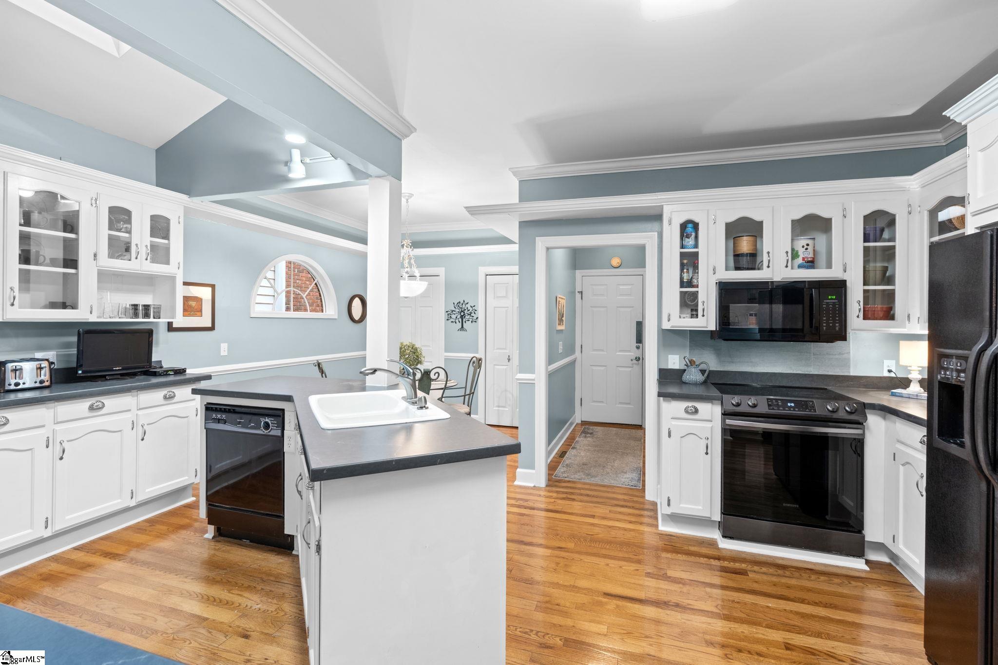 Welcome to 310 Greenview Circle in the sought-after Linkside Green community. This well-maintained home offers just under 3,000 square feet of comfortable living space with a primary suite conveniently located on the main level. Beautiful kitchen with quartz countertops and separate breakfast room. Additionally, there is a beautiful formal dining room, office and two-story den complete with built in cabinetry and gas logs fireplace. The primary suite offers access to a wonderful porch and deck as well as an updated bathroom. The spacious layout includes three bedrooms, two and a half baths, and a third story which is partially finished and is great for storage or could be fully finished out. The yard has been meticulously maintained. Thoughtfully cared for and move-in ready, this property combines functionality and main level living with room to grow in a desirable Greenville location.