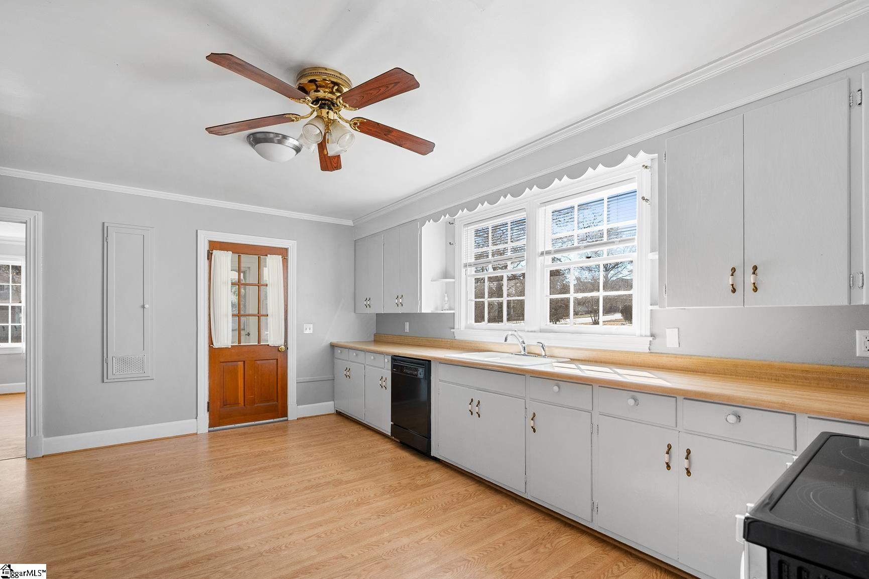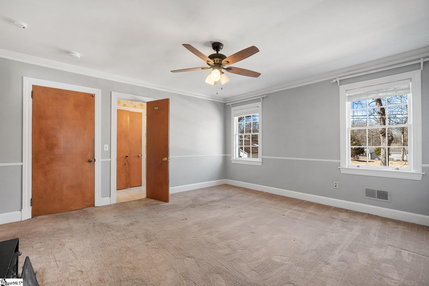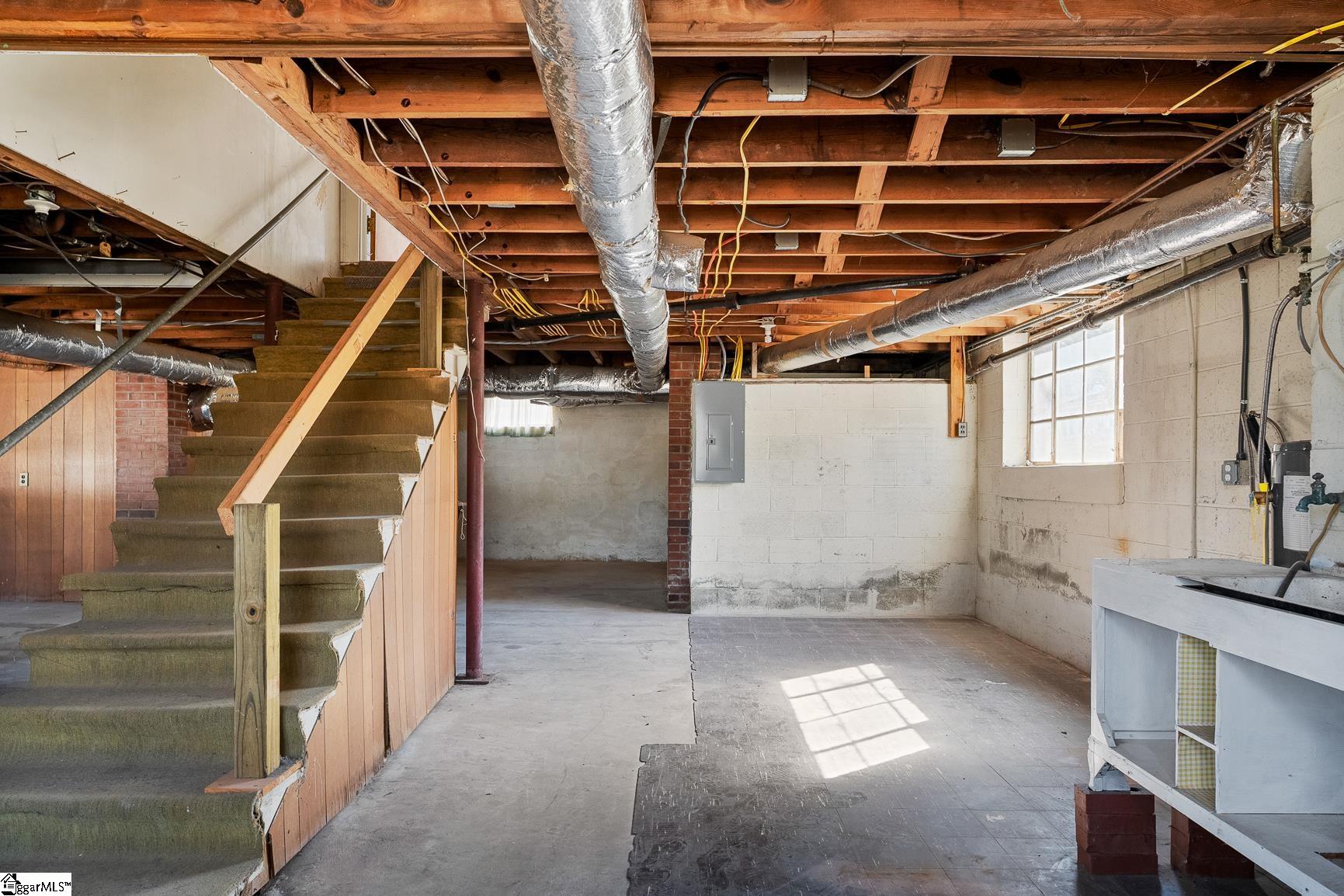 Located just one block from the quaint downtown of Belton, South Carolina, this distinctive property has been owned by the same family since the late 1960s. The home was built by Samuel Sloan Smith, a respected local builder | carpenter, and a longtime Belton resident, widely known as S.S. Smith Lumber Company, a name closely associated with the town’s mid-20th Century growth. Thoughtfully designed with flexibility in mind, the original floor plan offers the option of a single family residence or a duplex, featuring separate entrances, two driveways, independent living quarters, and two full kitchens. The home retains many original midcentury features that will appeal to buyers who appreciate authentic character, including hardwood floors, period light fixtures, crown moldings throughout, a built-in ironing board, multiple fireplaces and two chimneys. The layout and generous room sizes provide easy options to reconfigure spaces and create additional bedrooms if desired, allowing the next owner to tailor the home to modern living while preserving its architectural integrity. A walk-up attic runs the full length of the home and offers exceptional storage or creative potential. The full daylight basement also spans the length of the house, providing substantial additional space suitable for workshops, storage, hobbies, or future use. The heated living space on the main floor measures approximately 2,150 square feet. The attic and basement are not included in this measurement and represent valuable additional areas for a variety of needs. A significant electrical system improvement was completed in October 2025, offering added peace of mind. Situated on approximately 0.8 acres of flat, usable land, the property offers a rare combination of space and walkability near downtown. The location and flexible design make it equally attractive as a unique historic primary residence and/or as an income-producing property. This Property is value-priced to reflect location, condition, and exceptional acreage. Sold AS IS for the seller’s convenience. No FHA or VA financing.