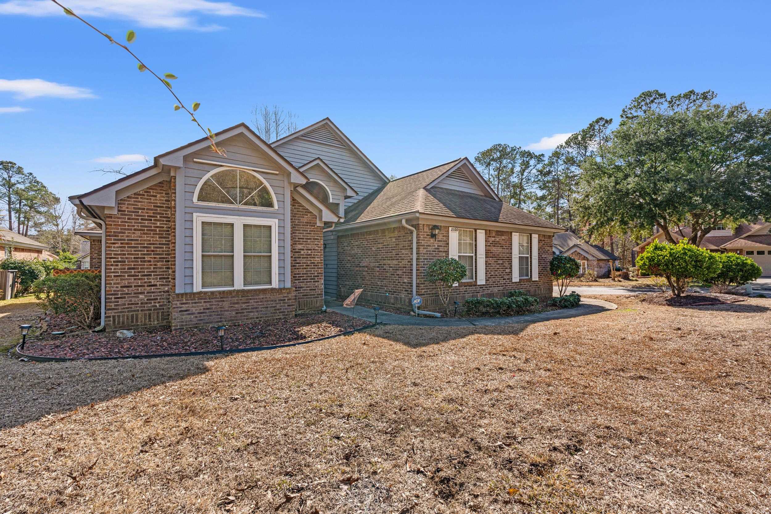 Located on a cul-de-sac, this spacious 3-bedroom, 2-bath home with a 2-car garage offers comfort, natural sunlight, and exceptional value with a LOW HOA in a sought-after golf course community. The layout features an open living and dining area that feels both inviting and functional. The kitchen, features new flooring, stainless steel appliances, ample cabinetry, a breakfast bar perfect for casual dining or entertaining. Large windows throughout the home fill the space with natural light, creating a warm and welcoming atmosphere. The Carolina Room also features new flooring and provides flexible space ideal for relaxing, working from home, or hosting guests. Step outside to the back patio and enjoy easy outdoor living. The spacious primary en suite offers a private retreat with a soaking tub, perfect for unwinding at the end of the day. Two additional bedrooms provide comfortable space for guests, hobbies, or a home office. The 2-car garage includes a small dedicated workshop area, adding functionality for projects or additional storage. The home is primarily brick with some siding accents, offering both durability and curb appeal. Enjoy life in a golf course community with access to a pool and clubhouse, all while being conveniently located near Little River and North Myrtle Beach. Just 5.2 miles to the beach and close to River Hills Medical Plaza, shopping, and dining. Schedule your showing today!