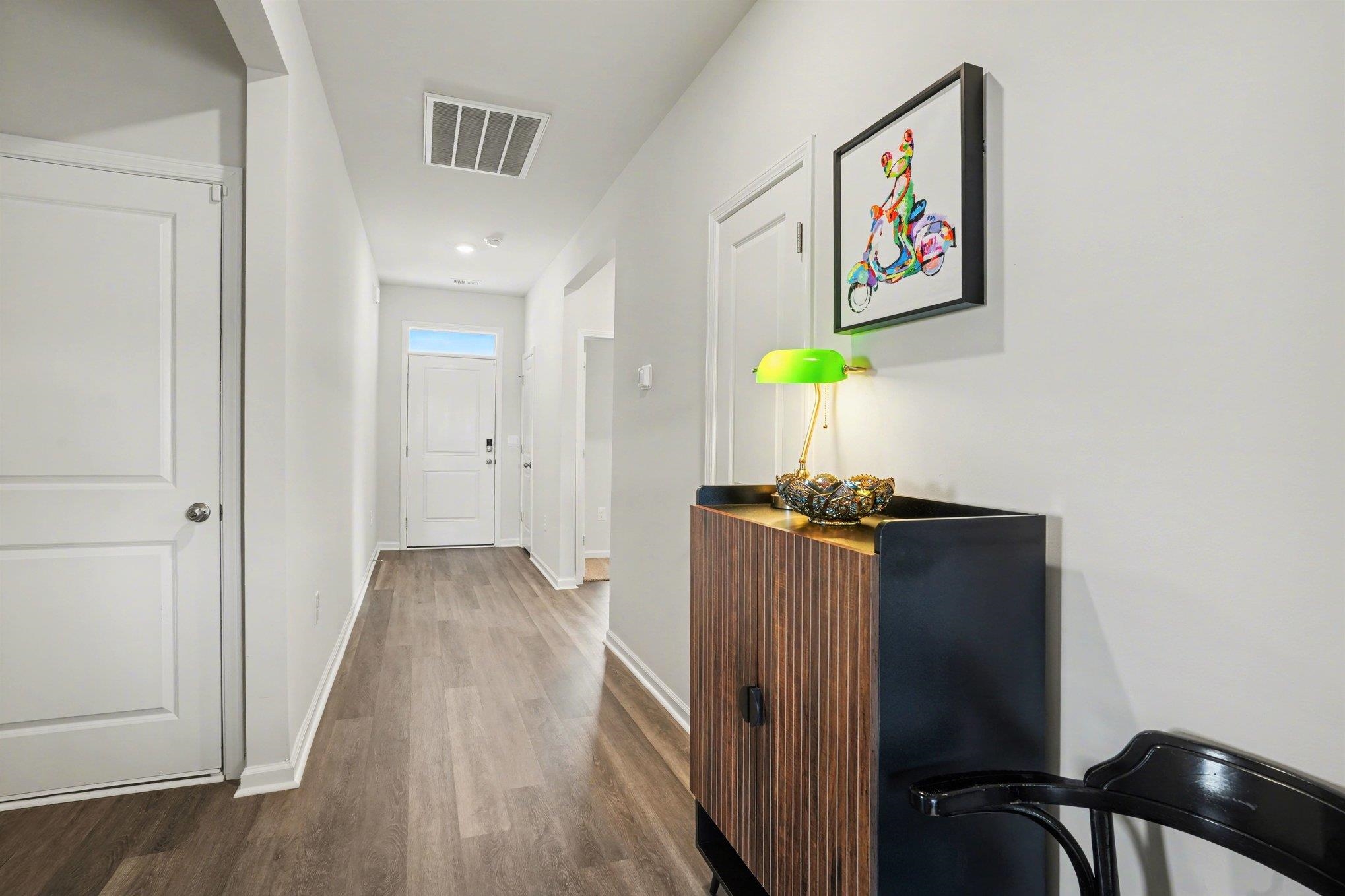 Welcome to this quiet neighborhood in the desirable Ridgefield community, a natural gas neighborhood offering modern comfort and convenience. Built in 2024, this spacious 4-bedroom, 2-bath home is ideally located just minutes from golf courses, shopping, dining, and the airport. The open floor plan features generous living and dining areas that flow seamlessly into the kitchen, complete with granite countertops, stainless steel appliances, an oversized island with breakfast bar, and a walk-in pantry. The private primary suite is situated at the rear of the home and includes a large walk-in closet, linen closet, double vanity, and walk-in shower. Three additional bedrooms offer ample closet space throughout. Relax on the rear porch overlooking a peaceful pond view. Plenty of room to park your cars and storage in the 2-car garage. This is a must-see home in a great neighborhood—schedule your showing today.