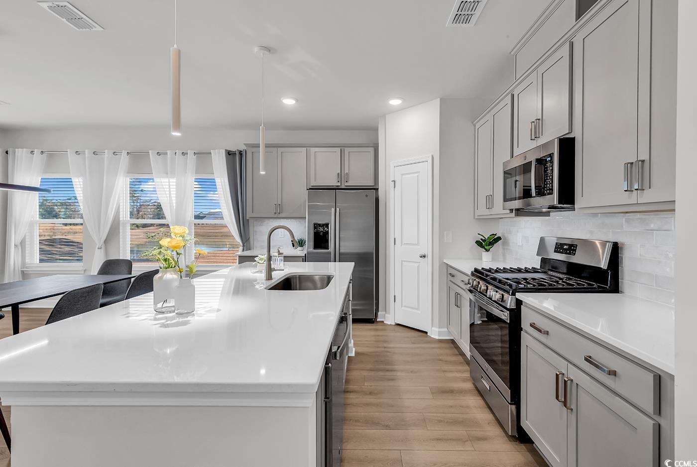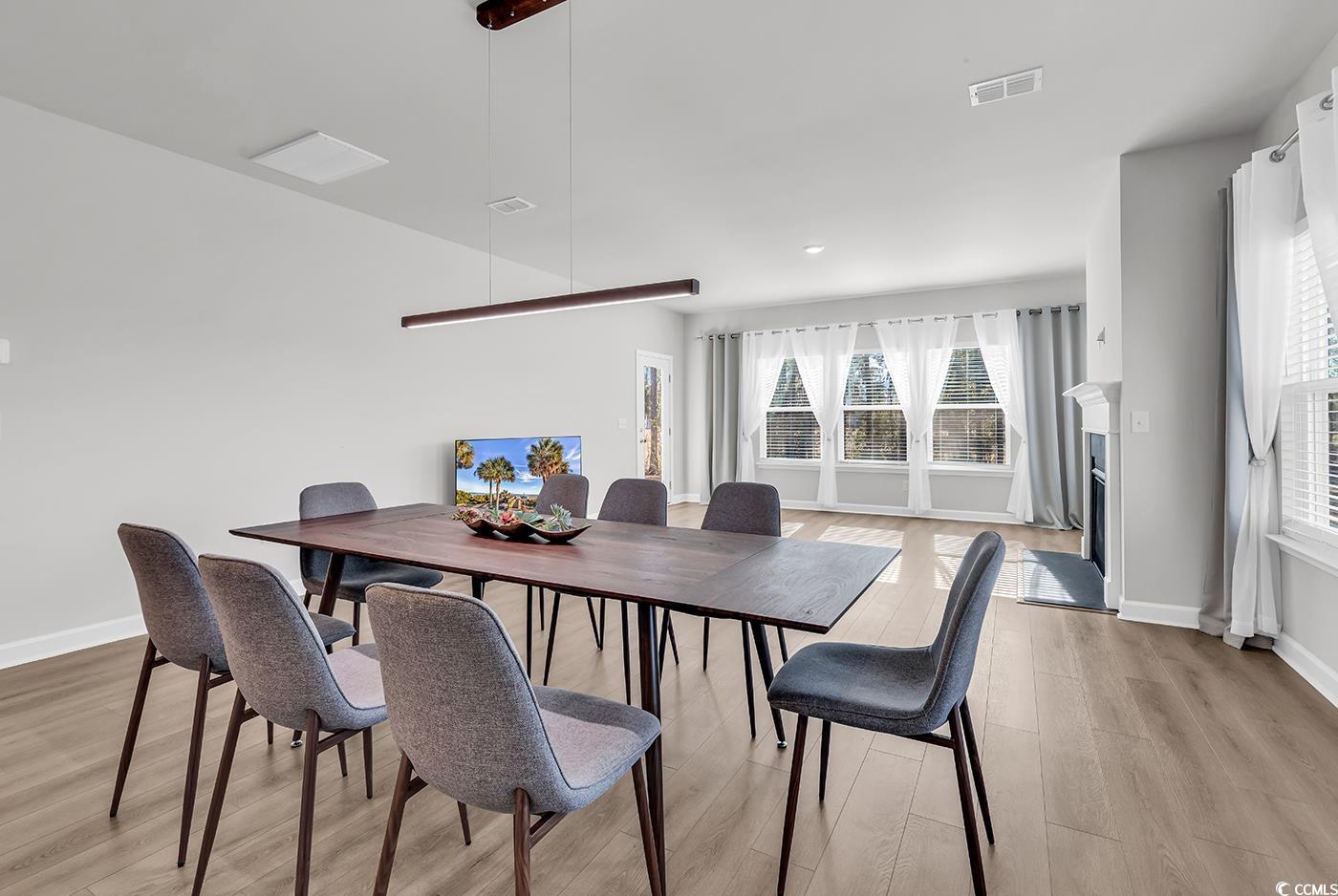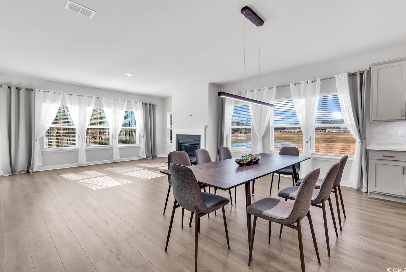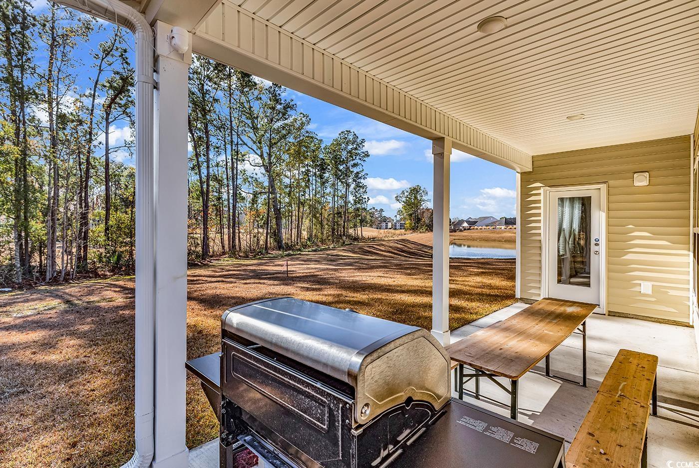 This immaculate, Elegant, Like-New 3BR/2BA Home with Office | Wooded, Pond & Golf Course Views residence—purchased new in July 2025 and used only as a vacation home—offers 1,955 heated square feet of bright, open living in the sought-after, natural-gas community of Trieste at Bella Vita, located within an award-winning school district. Designed for both comfort and sophistication, the home features a spacious great room, a flexible office/formal dining area, and an array of high-end upgrades including luxury vinyl plank flooring, quartz countertops, a designer tile backsplash, and stylish pendant lighting. The gourmet kitchen is a standout, boasting a large quartz island, premium cabinetry, GE stainless steel appliances, and a gas cooktop—perfect for both everyday living and entertaining. Expansive windows fill the living and dining areas with natural light while offering tranquil pond views. Step outside to the inviting back porch, where a private wooded backdrop opens to a picturesque view of the River Oaks Golf Course—an ideal setting for morning coffee, evening relaxation, or hosting guests in a serene environment. Move-in-ready and meticulously maintained, this exceptional home blends elegance, privacy, and convenience. Just minutes from the beach, shopping, dining, and world-class golf, it offers the perfect coastal lifestyle.