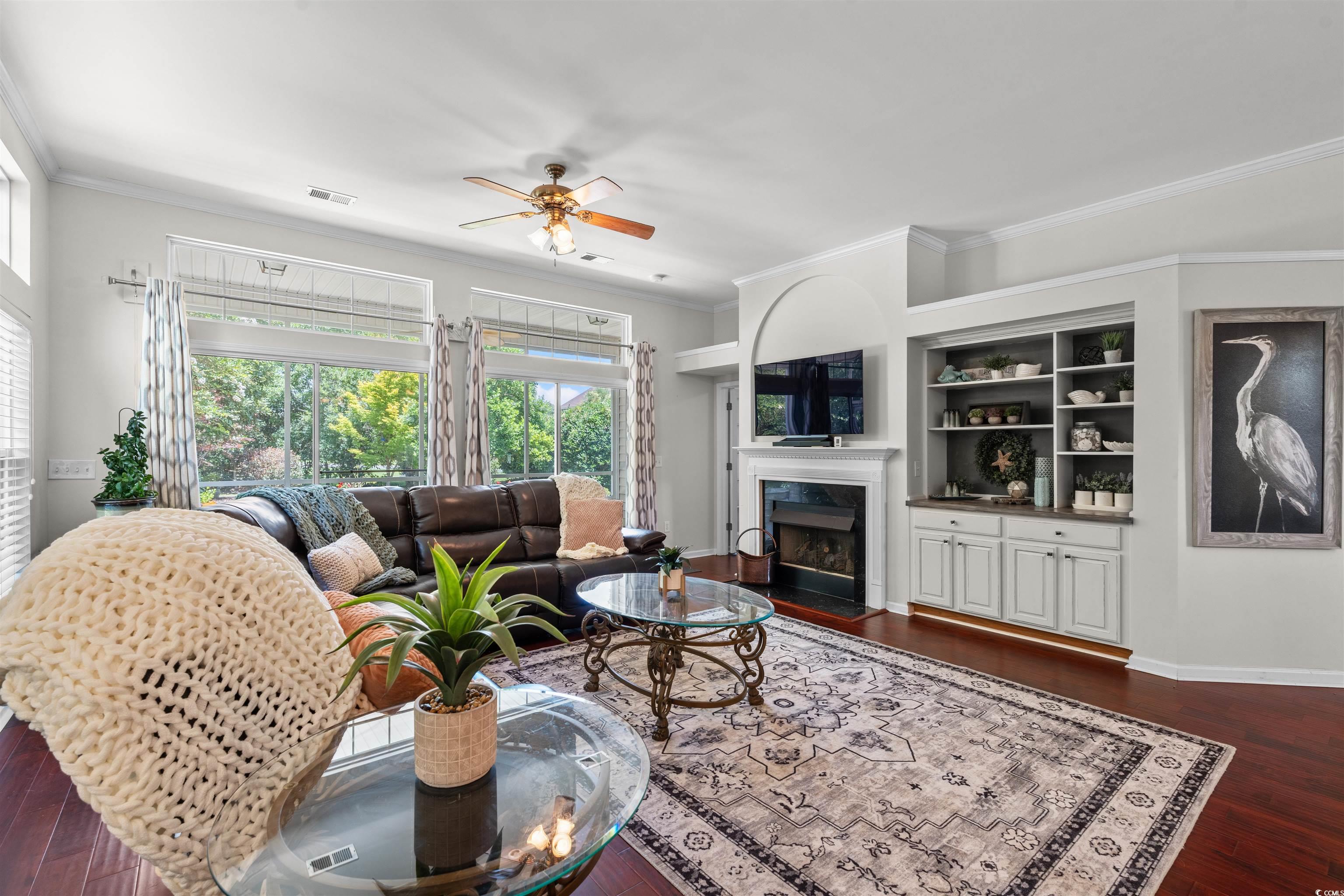 Secret-garden serenity meets resort-style living—one of the closest homes to every amenity the International Club offers. Tucked on a quiet cul-de-sac, this 3-bed/2-bath charmer sits on 0.38 acres and backs to a lush canopy of trees, so mornings start with coffee and birds singing on the screened porch. Cross the yard and you’re barely 50 feet from the community’s zero-entry pool, clubhouse, fitness center, bocce and horseshoe courts, playground, and the acclaimed International Club golf course with its newly renovated restaurant and lounge, The Venue. Inside, 10-foot ceilings, solar tubes, and abundant windows create an airy, coastal vibe. An open living-dining layout flows into the generous kitchen featuring a brand-new refrigerator, ample counter space, and a handy breakfast bar. A separate flex room with French doors off the foyer adapts effortlessly to a home office, den, or guest suite. The primary suite has a walk-in closet and an ensuite bath with a soaking tub and separate shower, while the split layout keeps the flex room, second bedroom, and full bath tucked away for added privacy. Practical upgrades—new HVAC (2025), new sprinkler controls (2025), and a 2018 roof—add peace of mind, as do the brand-new washer and refrigerator. And don’t overlook the garage—its dedicated heating and cooling system lets it double as a year-round workshop for all of your garage hobby dreams or a climate-controlled fitness area. Beyond the neighborhood, life unfolds in minutes: the Murrells Inlet MarshWalk and Garden City Beach are about 4 miles away, legendary Brookgreen Gardens just 8 miles, and everyday conveniences—grocery, dining, healthcare—are even closer. Whether you crave tee times, fresh seafood, or sunset strolls, 311 Caldera Court places it all at your doorstep while gifting you a private backyard retreat to recharge between adventures. Experience the lifestyle yourself—schedule a tour today.