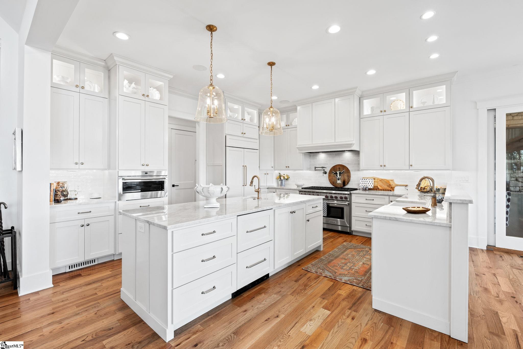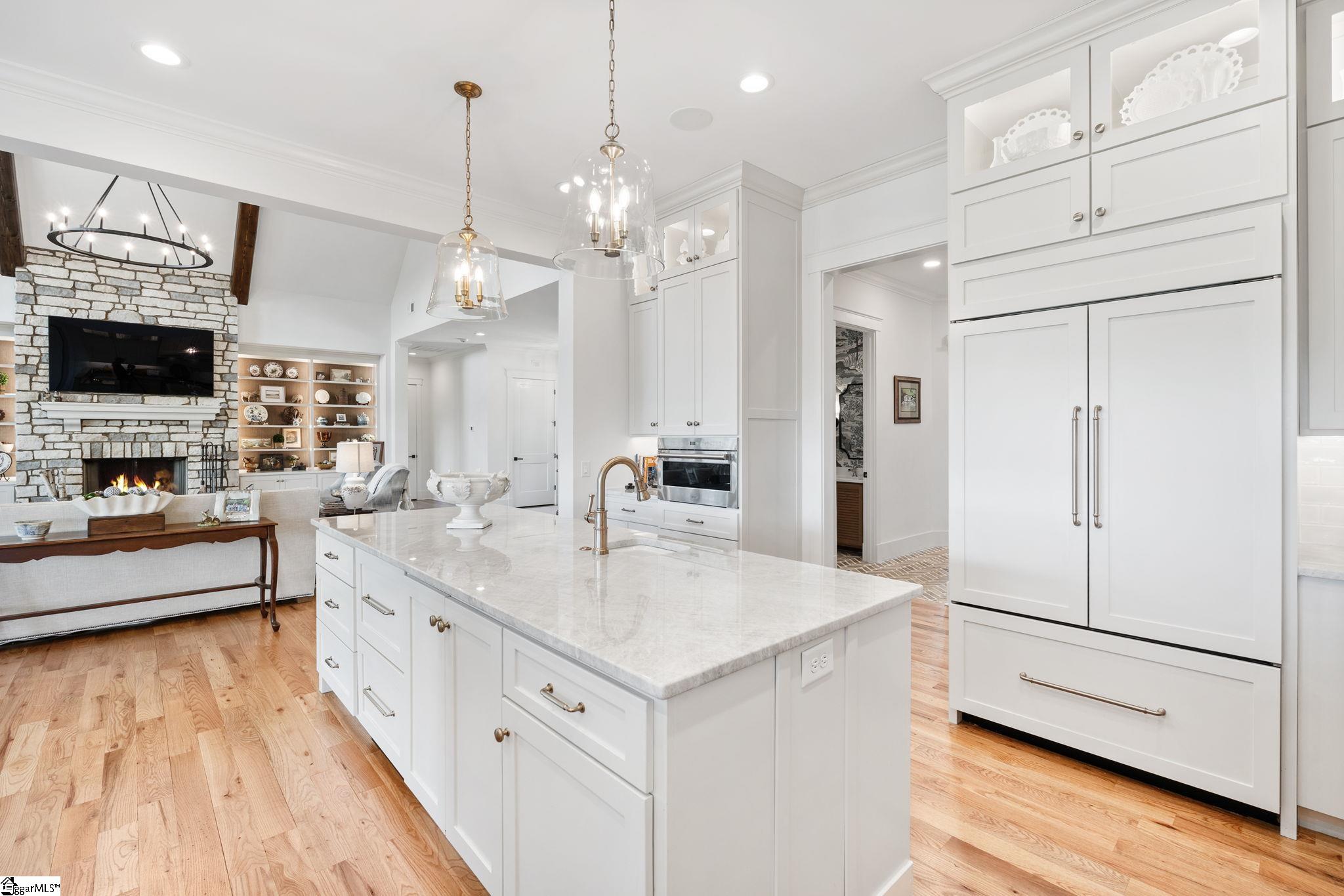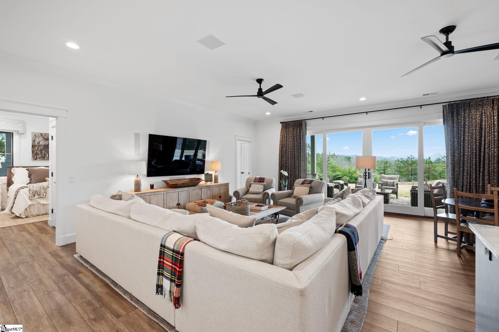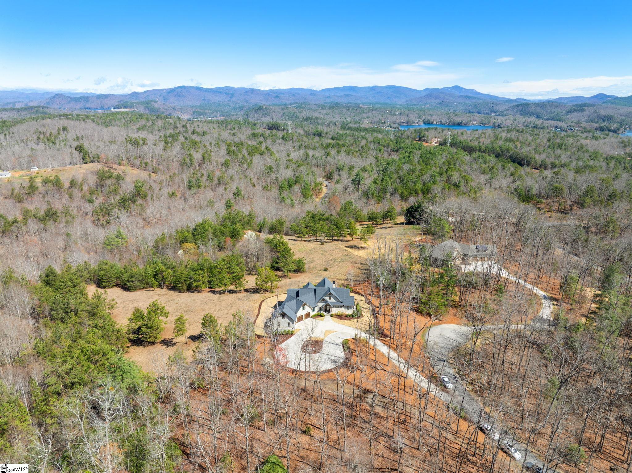 Exceptional Blue Ridge Mountain Retreat with Lake Keowee Boat Slip. 311 Sunset Ridge Way offers an impeccable and tastefully decorated estate home perched on an elevated plateau, providing expansive panoramic views of the Blue Ridge Mountains. This property features increasingly rare access to a boat slip on Lake Keowee. Nestled on nearly three acres, the home ensures privacy, open meadow vistas, and dramatic mountain ranges in multiple directions. The approach showcases a thoughtfully designed circular concrete driveway and motor court, complemented by paver parking pads. Upon entering, guests are welcomed into an open and functional floor plan filled with natural light and stunning mountain vistas. The home is designed for both relaxation and entertaining, with abundant outdoor living areas and carefully curated décor. The vaulted great room, enhanced with exposed beams, features a spacious sitting area oriented toward a striking floor-to-ceiling stone fireplace. Custom cabinetry and shelving flank the fireplace, providing display space for books and decorative pieces. The adjacent gourmet kitchen is a chef's dream, boasting a large center island, walk-in pantry, generous quartzite countertops, and high-end appliances from WOLF, SubZero, and Miele. The inviting dining area, lined with a wall of windows, offers exceptional views. Off the great room are two distinct family and entertainment spaces: an open covered porch ideal for relaxation, reading, or al fresco dining, and an all-season room with a stone fireplace extending to the ceiling. The all-season room includes EZ Breeze windows that adjust with the weather, sunshades for late afternoon sunsets, and a dedicated dining area. Additional main level features include a spacious laundry room, powder room, and an expansive three-car garage equipped with custom storage cabinetry. On the opposite side of the main level, the master suite provides mountain views and a spa-like bath with dual vanities, a large travertine shower, and separate his-and-her walk-in closets. Custom blinds, stylish wallpaper, custom mirrors, and additional décor enhance the suite’s comfort and appeal. The lower level offers three bedroom ensuites, a fourth bedroom, a cozy baby's room, and a large open recreation/media room complete with a bar—perfect for family gatherings or entertaining guests. There is a substantial unfinished storage area with shelving and space for mechanical systems. Outside, a wraparound patio provides the ideal setting for relaxation, featuring a game area with a ping pong table and comfortable seating. A short walk leads to a large, attractive firepit and ample open space, perfect for enjoying cool evenings and backyard activities. Above the three-car garage, a spacious bonus room offers flexible options for an additional bedroom, office, or exercise room. Currently, it serves as a children's entertainment area with a charming shiplap-wrapped bunk room accommodating four bunks and includes a half bath. Rare access to Lake Keowee is just a short ½ mile drive via car or golf cart to your leased boat slip with lift. This home is in pristine condition, boasting recent painting and staining, and is richly adorned with high-end finishes such as decorative wallpaper, custom mirrors, premium lighting, and many other designer touches. Furnishings are negotiable, though the seller will have some exclusions.