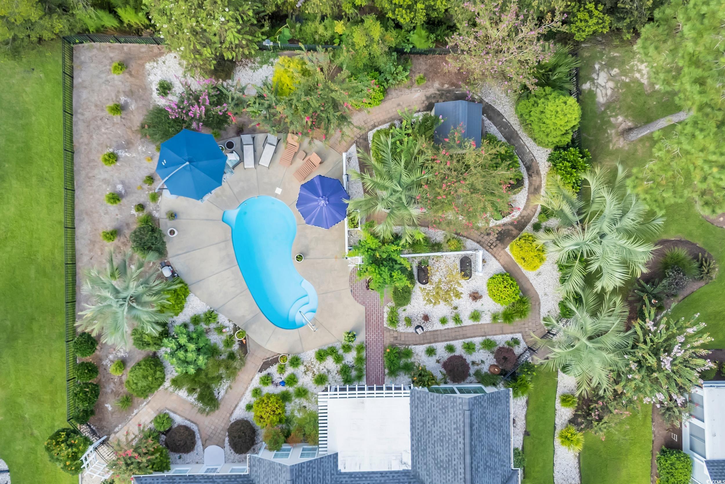 OPEN HOUE SUNDAY 1/18 from 11:00 - 2:00 pm PRICE IMPROVED. Summer is coming—come see this beautiful home with an INGROUND POOL and timeless curb appeal! This brick-front home features 4 bedrooms and 3 baths, surrounded by lush gardens and timeless charm. Thoughtful upgrades are evident throughout, blending elegance with comfort. From the moment you arrive, the extended driveway, enchanting greenery climbing up the brick facade along with the landscaped grounds create the feeling of stepping into the pages of "Better Homes & Gardens." Inside, you’ll find it to be carpet-free with tray and vaulted ceilings, wainscoting, plantation shutters throughout, and an updated kitchen with granite countertops and marble backsplash. The spacious master suite features a beautifully renovated bathroom with a walk-in shower, his/her separate sinks and your washer & dryer. The two additional bedrooms and bathroom include a pocket door for added privacy and a suite-like feeling. A cozy living room with fireplace (propane hookup) opens to a custom addition family room with built in bookshelves creating the perfect TV or gathering space. Upstairs, the large bonus room, used as a bedroom, has its own full bath and a Mr. Cool, mini-split A/C unit for year-round personal comfort. Access the backyard from either the primary bedroom or the screened-in lanai off the family room. Outdoors, the property is nothing short of breathtaking. A sparkling pool is framed by lush gardens, an iron gated fence, and mature landscaping. Relax in the screened-in patio or enjoy the privacy of your beautifully landscaped backyard, complete with a storage shed, irrigation system, and even some patio furniture that conveys. New exterior lights and ceiling fans throughout add to the many thoughtful details. In the gardens you’ll be greeted by emerald zoysia grass, azaleas galore, hydrangeas, a fig tree, Mexican petunias, butterfly bushes, crepe myrtles, Japanese maple, palm trees, daylilies, roses, cactus, loquat, a charming trellis draped with wisteria plus more. Located in Waterford Plantation, this home offers almost 2400 heated sq. ft. If you’ve been searching for a home that blends elegance, character, and natural beauty, this one-of-a-kind property is the epitome of refined living. This community offers true resort-style living with an outdoor pool, clubhouse, fitness center, basketball courts, tennis courts, and walking sidewalks—plus community events for all ages. HVAC (2020), Roof (2021), Water Heater (2021), and a 6-zone irrigation system. Community Amenities: Pool, tennis courts, basketball courts, walking trails, and more. Conveniently located near top-rated Carolina Forest schools, shopping, dining, golf, hospitals, Myrtle Beach International Airport, and the world-famous beaches of the Grand Strand. All measurements and square footage are approximate and not guaranteed. Buyers are responsible for verification of all information, including HOA info.