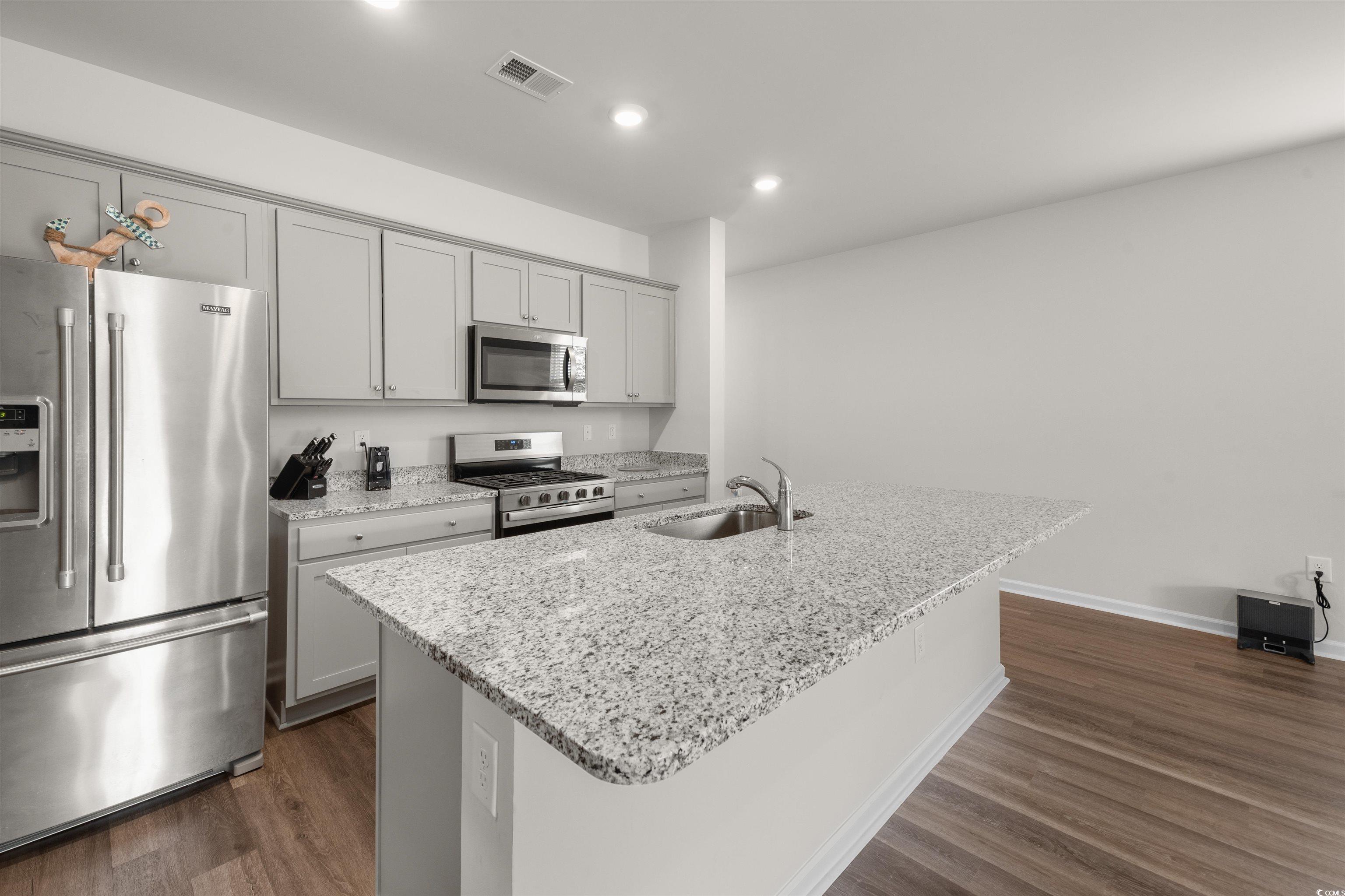 LIKE NEW 5BR, 3.5B home in master planned Ridgefield Community. Home features stainless steel appliances, granite countertops, gutters, tankless hot water system, 5th bedroom [20x20] or large bonus room over garage and additional loft space. Master bedroom and laundry are conveniently located on the 1st floor. Per DR Horton marketing, each home features America's Smart Home package which allows the homeowner the ability to control their thermostat, front door lock & light, and video doorbell from your smartphone or with voice commands to "Alexa." This affordable community offers a clubhouse, pool, fitness center and playground. Ridgefield is conveniently located to downtown Conway, medical, restaurants, shopping and for you sports fans, Coastal Carolina College.