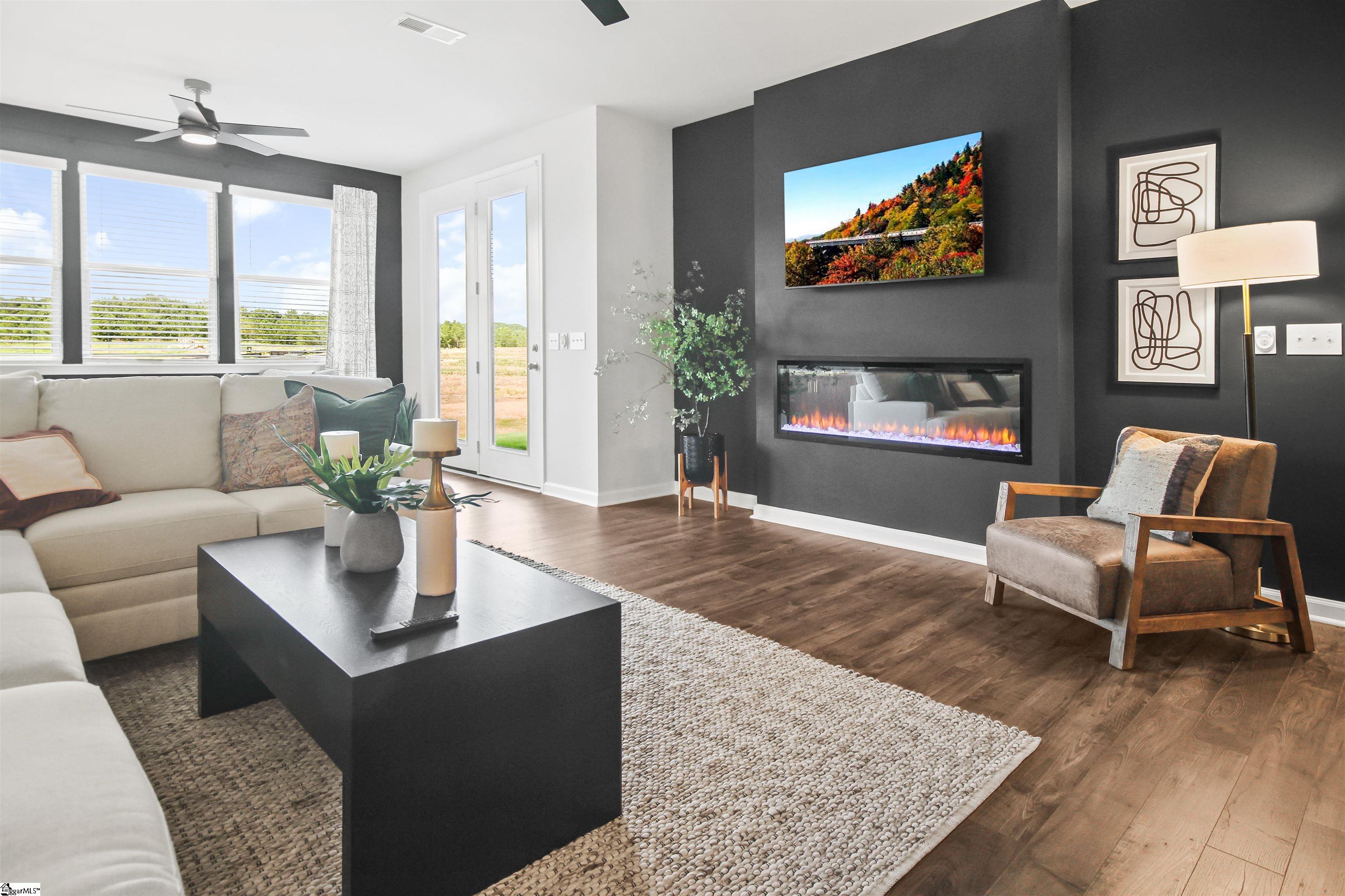 FINAL 3BR floorplan in this Newly Released Building! Sunset Views from this 4 Unit building under construction. Just 6 minutes from downtown Greenville, Discover Wyndermere, a gated community where location, lifestyle, and luxury come together. Enjoy an active neighborhood featuring a pickleball court, social pavilion, and future dog park — all designed for connection and convenience. This to be built stunning Gaines floorplan offers a main-level primary suite, sunroom, and linear fireplace, blending comfort and style in every detail. The chef-inspired kitchen boasts quartz countertops, white cabinetry, and a spacious island perfect for gatherings. With 9-foot ceilings on both floors, tall atrium doors, and abundant natural light, this home feels open, airy, and undeniably inviting. Step out to your private patio retreat or upstairs to find two spacious bedrooms with walk-in closets and a full bath. Lawn maintenance is included, giving you more time to enjoy life near Greenville’s vibrant downtown. There are too many beautiful features to list — come see why Wyndermere is one of Greenville’s most desirable new communities