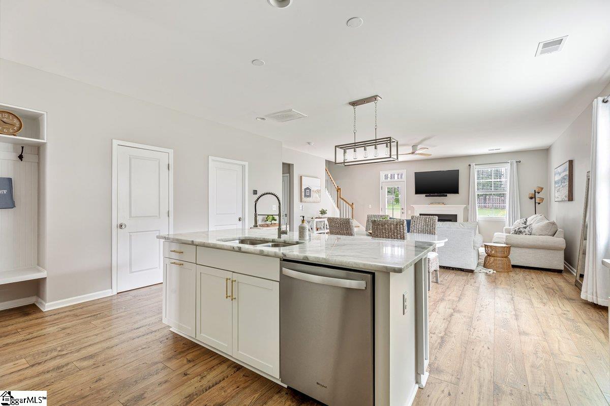 PREFERRED LENDER RATES AVAILABLE FOR LIMITED TIME! Prepare to be impressed, step in, you'll see; A home of timeless elegance and harmony! With beauty so simple yet crafted with care. Not a feature forgotten, you'll find it all there. The porch greets with charm, curb appeal so bright; a warm invitation, a welcoming sight. Inside every detail is perfectly placed, meticulous touches, no corner misplaced. Low-maintenance flooring flows room after room, stainless gas range adds a chef's perfect tune. Marble with veining, a counter divine, backsplash that sparkles, a bright bold design. The owner's retreat rests on the main floor, with double vanities you'll surely adore. A garden tub waiting, serene and so sweet, and a tiled shower with bench for your seat. Upstairs, abundance, so many to spare; rooms filled with comfort and light everywhere. Outdoors, a haven of privacy lies, where pine trees stand tall 'neath the Carolina skies. Relax on your patio, oversized and new, A covered escape with a tranquil view. Better than new, every upgrade in place, a home that is classic with unmatched grace.