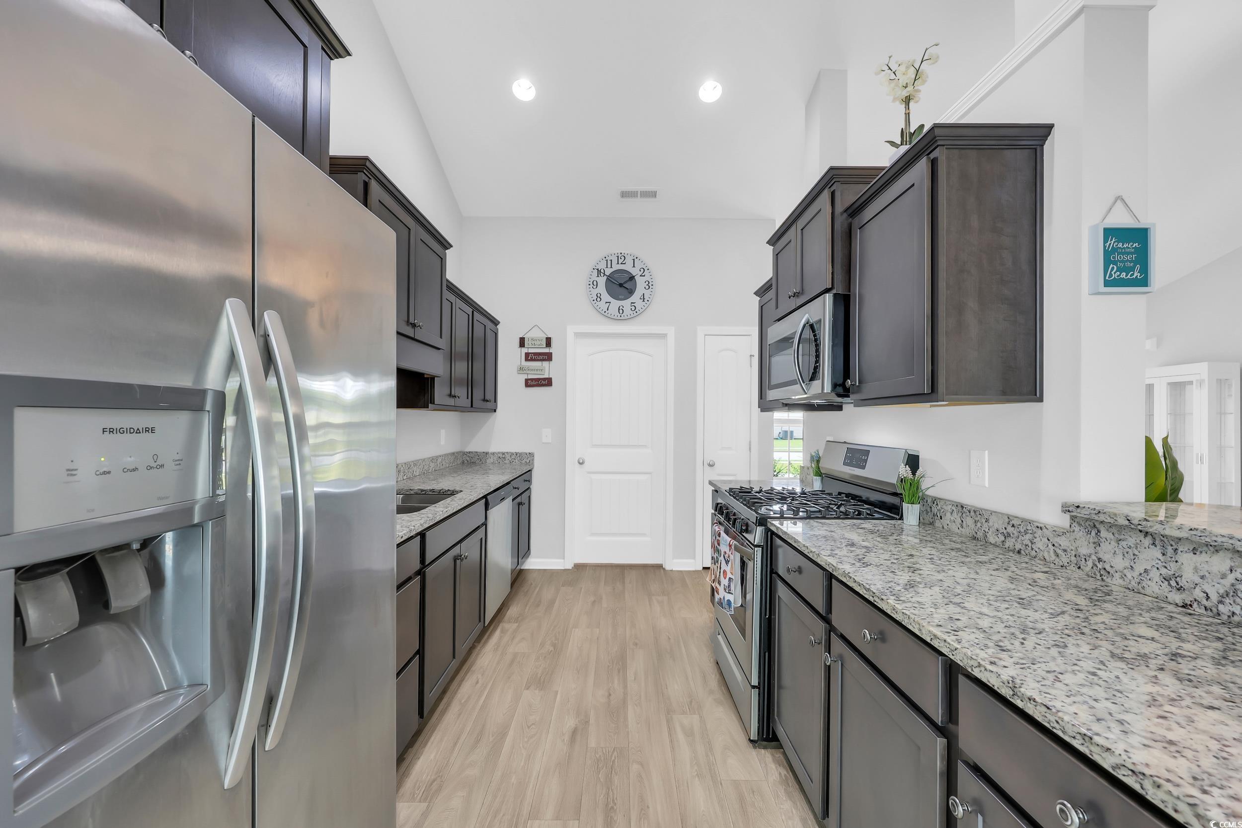 OPEN HOUSE: SUNDAY 10/26 FROM 1PM-3PM. MOTIVATED SELLER. Step inside this beautifully maintained 3BD/2BA home in the quiet Woodland Lakes community of Conway, SC! This home offers ample space inside and outside and above for your family to grow. Featuring an OPEN SPLIT FLOORPLAN with VAULTED ceilings, LVP FLOORING, a bright CAROLINA ROOM, SCREENED IN PORCH, and an EXPANDED BACK PATIO with a privacy fence—this home is perfect for relaxing or entertaining. Each room has CEILING FANS, The kitchen boasts STAINLESS STEEL appliances,GAS STOVE, solid-surface countertops, a breakfast bar, and large pantry, while the spacious owner’s suite offers a walk-in closet and private bath.2 car garage includes bump out and has ladder to LARGE STORAGE SPACE and TANKLESS HOT WATER HEATER .Located just minutes from downtown Conway, Coastal Carolina University, shopping, dining, and the beach, this charming home combines modern comfort with a peaceful neighborhood setting.. Homes like this don’t last long!Myrtle Beach International Airport, Broadway at the Beach, The Market Common, Coastal Grand Mall, Tanger Outlets, Barefoot Resort, Coastal Carolina University (CCU), marinas, public docks, landings, golf courses, entertainment, and endless dining and shopping options. Plus, you're only 90 miles north of historic Charleston, SC.