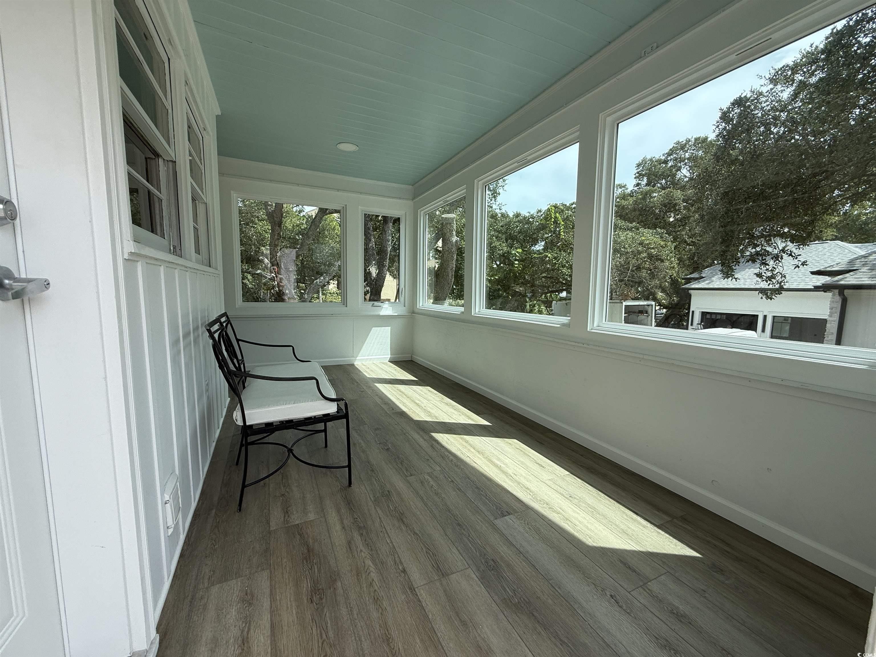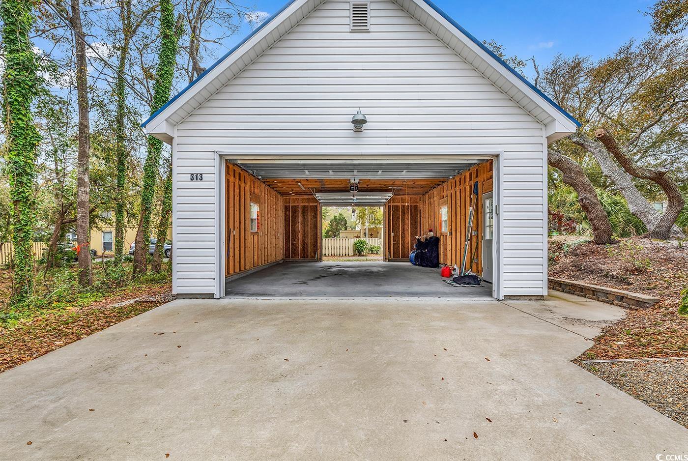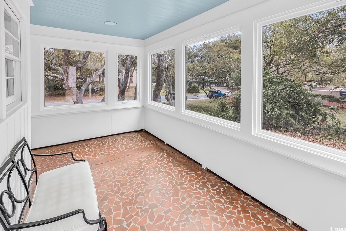 THE LOCATION! Steps to the beach, No HOA! Furnished! Located in the Long Bay Extension area of Myrtle Beach, between Grande Dunes and Golden Mile. You are within walking distance to Starbucks, River City Café, Dunkin Donut, plus tons of shops and restaurants. This adorable beach cottage was recently renovated and sits on high ground nestled under gorgeous sprawling shaded oak trees, surrounded by azaleas, with tons of southern charm. This rare to find 2 BR/2BA has a large sun porch with NEW Windows and climate control HVAC. Many upgrades were done in 2020, including a large detached 2.5 car garage with attic space plus 2nd door exiting to a back paved alley. More upgrades include: NEW windows in Sun Room (Replaced in 2025), Metal Roof, HVAC, duct work, electrical, plumbing, added an extra bathroom with walk in tile shower, laundry, (washer and dryer convey), tank less instant hot water heater, all new SS appliances, natural gas range, garbage disposal, butcher block, paver walkway and banisters, new windows, new doors, propane hook up in LR to add a gas fireplace, painted walls and smooth ceilings, back concrete patio and walkways, plus you have tons of parking! Need to park an RV and boat it's no problem! There's an outdoor shower! This is a rare find, with a large lot, so close to the beach! This charming beach bungalow will get snatched up real fast! All upgrades are listed in the associated docs. OWNER FINANCING AVAILABLE