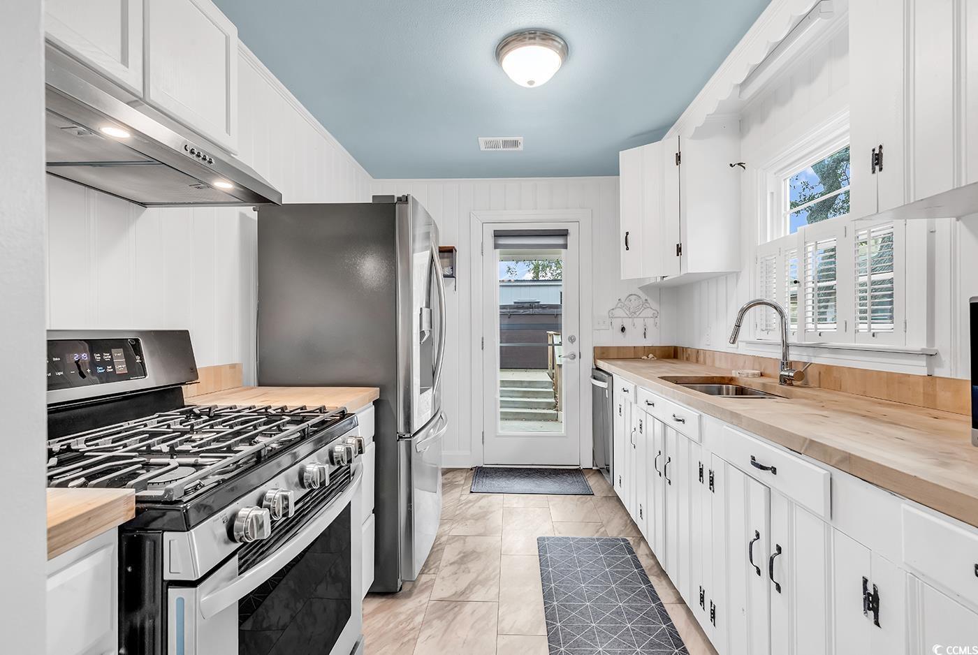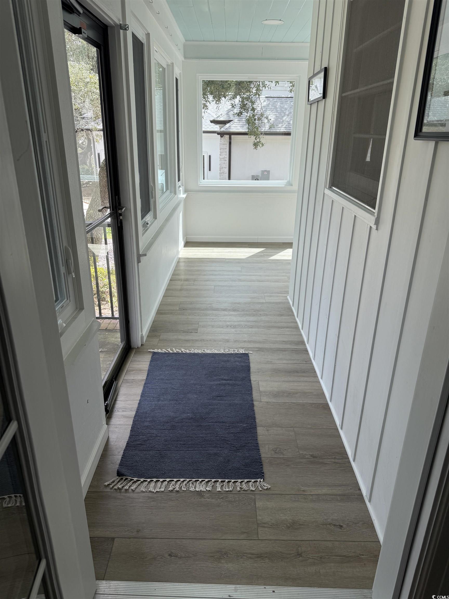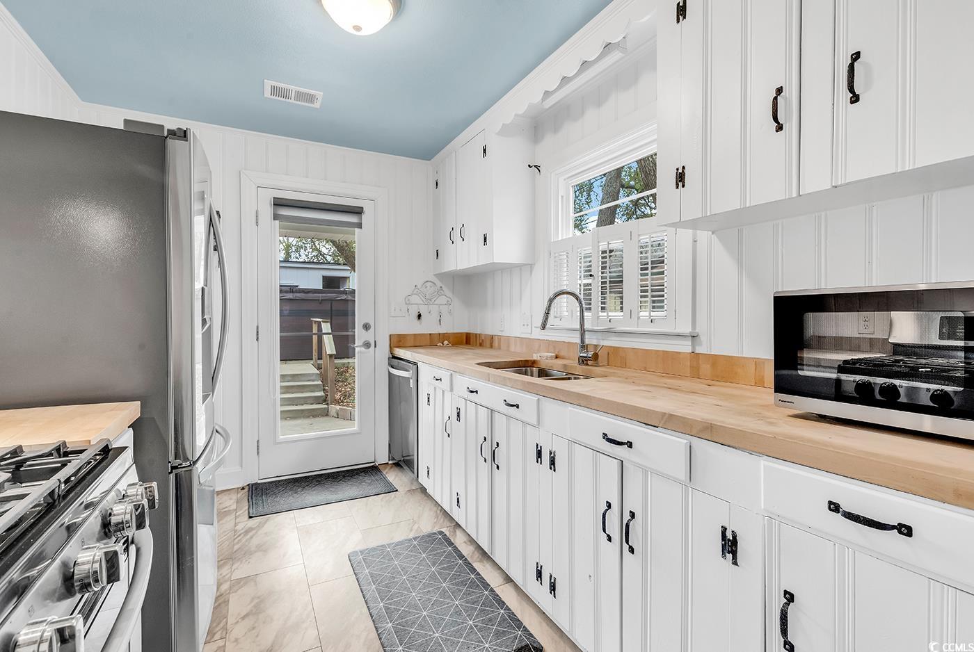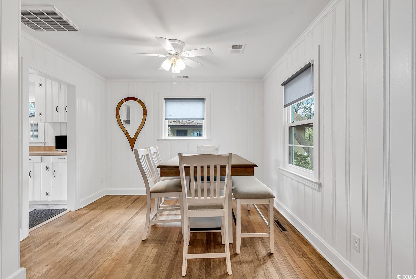 THE LOCATION! Steps to the beach, No HOA! Furnished! Located in the Long Bay Extension area of Myrtle Beach, between Grande Dunes and Golden Mile. You are within walking distance to Starbucks, River City Café, Dunkin Donut, plus tons of shops and restaurants. This adorable beach cottage was recently renovated and sits on high ground nestled under gorgeous sprawling shaded oak trees, surrounded by azaleas, with tons of southern charm. This rare to find 2 BR/2BA has a large sun porch with NEW Windows and climate control HVAC. Many upgrades were done in 2020, including a large detached 2.5 car garage with attic space plus 2nd door exiting to a back paved alley. More upgrades include: NEW windows in Sun Room (Replaced in 2025), Metal Roof, HVAC, duct work, electrical, plumbing, added an extra bathroom with walk in tile shower, laundry, (washer and dryer convey), tank less instant hot water heater, all new SS appliances, natural gas range, garbage disposal, butcher block, paver walkway and banisters, new windows, new doors, propane hook up in LR to add a gas fireplace, painted walls and smooth ceilings, back concrete patio and walkways, plus you have tons of parking! Need to park an RV and boat it's no problem! There's an outdoor shower! This is a rare find, with a large lot, so close to the beach! This charming beach bungalow will get snatched up real fast! All upgrades are listed in the associated docs. OWNER FINANCING AVAILABLE