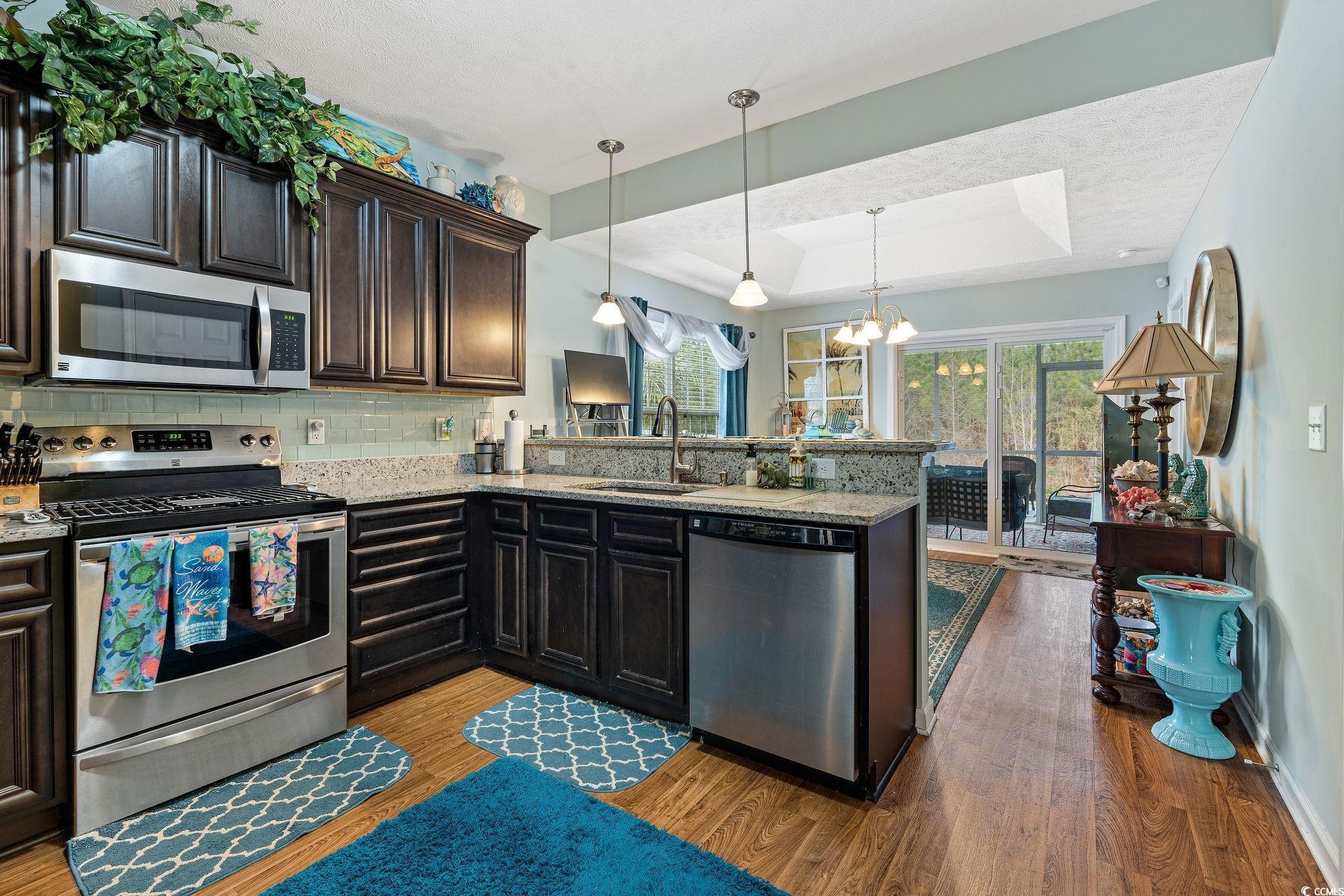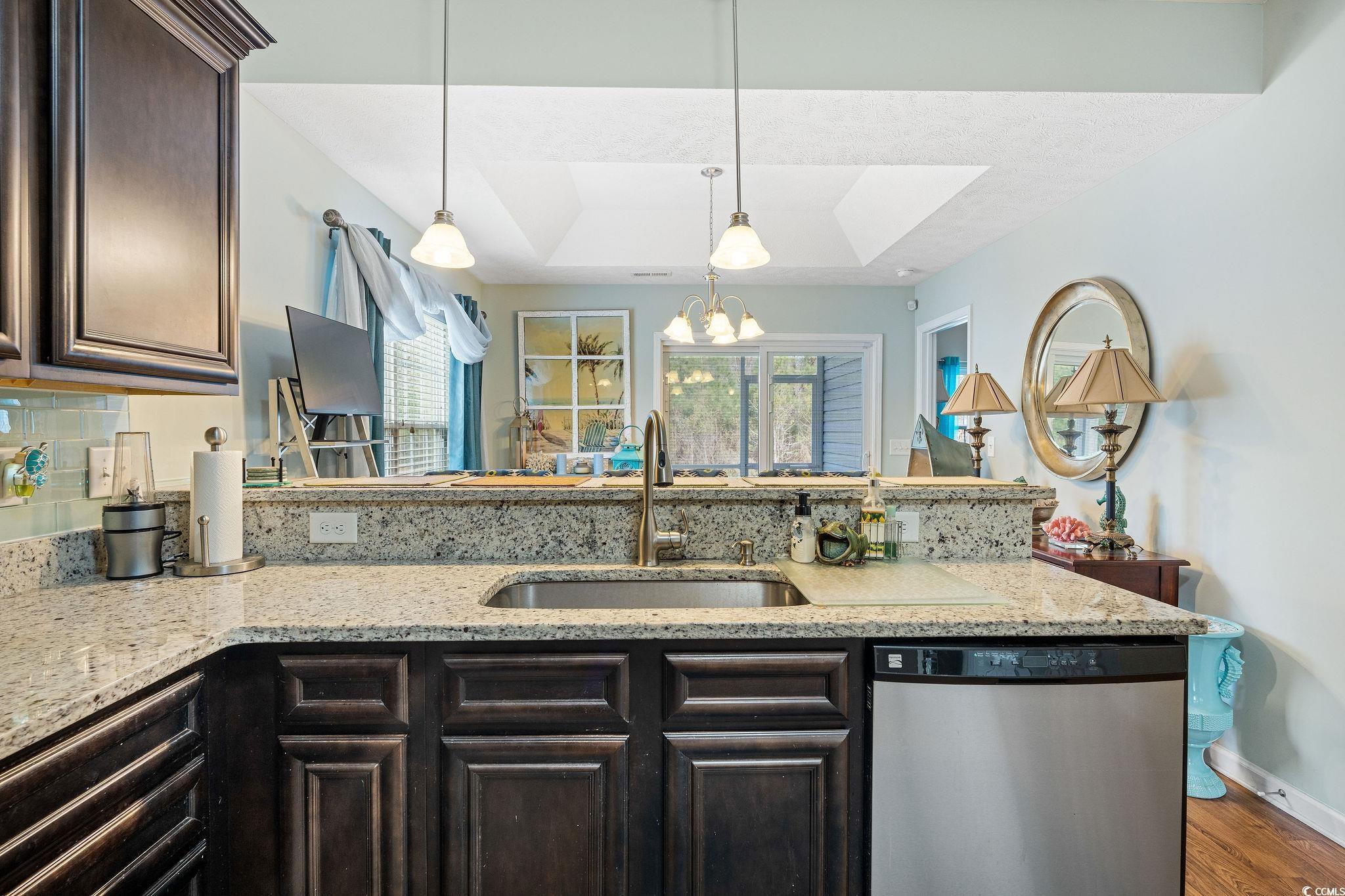 Welcome to your dream coastal retreat in the highly sought-after Silver Creek community! Ideally located in Myrtle Beach, this charming home is just minutes from the sparkling shoreline and all the vibrant amenities the area has to offer, from world-class dining to endless entertainment and outdoor adventures. Step inside to find a welcoming living space featuring luxurious LVP flooring that flows throughout. The heart of the home is the stunning kitchen, equipped with granite countertops, stainless steel appliances, a breakfast bar, and beautiful cabinetry. Enjoy quiet mornings on the screened porch, where you can enjoy water views and admire the tasteful landscaping. The expansive master suite is a personal oasis with a spacious layout, walk-in closet, spa-like shower, and dedicated linen closet. Additional generously sized rooms ensure comfort for family or guests, while the community pool offers a refreshing retreat on warm days. Embrace coastal elegance and convenience in this exquisite Myrtle Beach home!