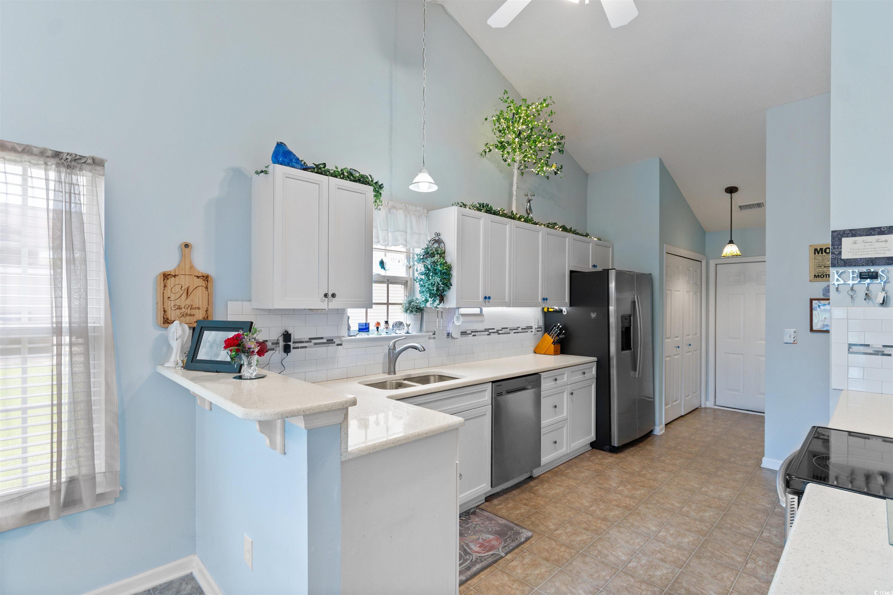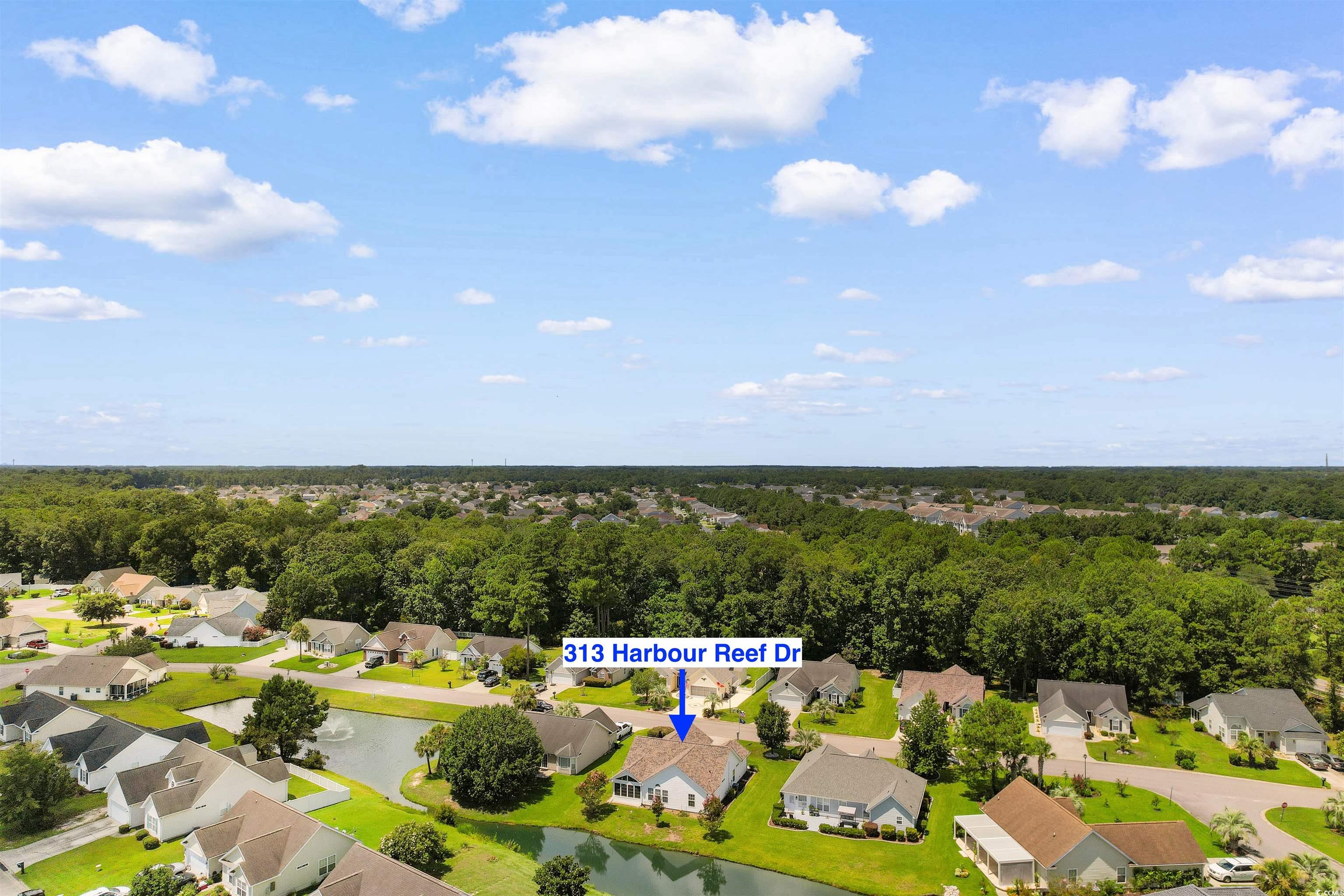 This charming 3-bedroom, 2-bath home offers the perfect blend of comfort, thoughtful updates, and a peaceful pondside setting—just minutes from the beach, Market Common, and a wide range of shopping and dining. Inside, vaulted ceilings and engineered hardwood floors in the main living areas create a warm, open feel, while the kitchen features ample cabinetry and counter space, under-cabinet lighting, a new GE stainless steel refrigerator (12/2023), and a sunlit eat-in dining area. A formal dining room adds even more flexibility for entertaining. The primary suite is a true retreat, featuring vaulted ceilings, a large walk-in closet with attic storage access, and a private en suite bath with a soaking tub. Two additional bedrooms share a second full bathroom with a walk-in shower. These rooms offer flexible space for hosting guests or setting up a home office or hobby area. The enclosed sunroom, overlooking the pond, is perfect for relaxing or entertaining year-round and features new porch screens and tinting (4/2024). Additional highlights include a new roof (10/2021), new AC unit (3/2020), Air Scrubber by ActivePure (2/2025), new washing machine (7/2025), updated fire alarms (2017, with annual battery replacement), fresh air filter (2/2025), and a two-car garage with overhead attic storage. Located in the desirable Peninsula at Palmetto Pointe, this home combines peace, convenience, and pride of ownership—ideal as a full-time residence or coastal retreat.