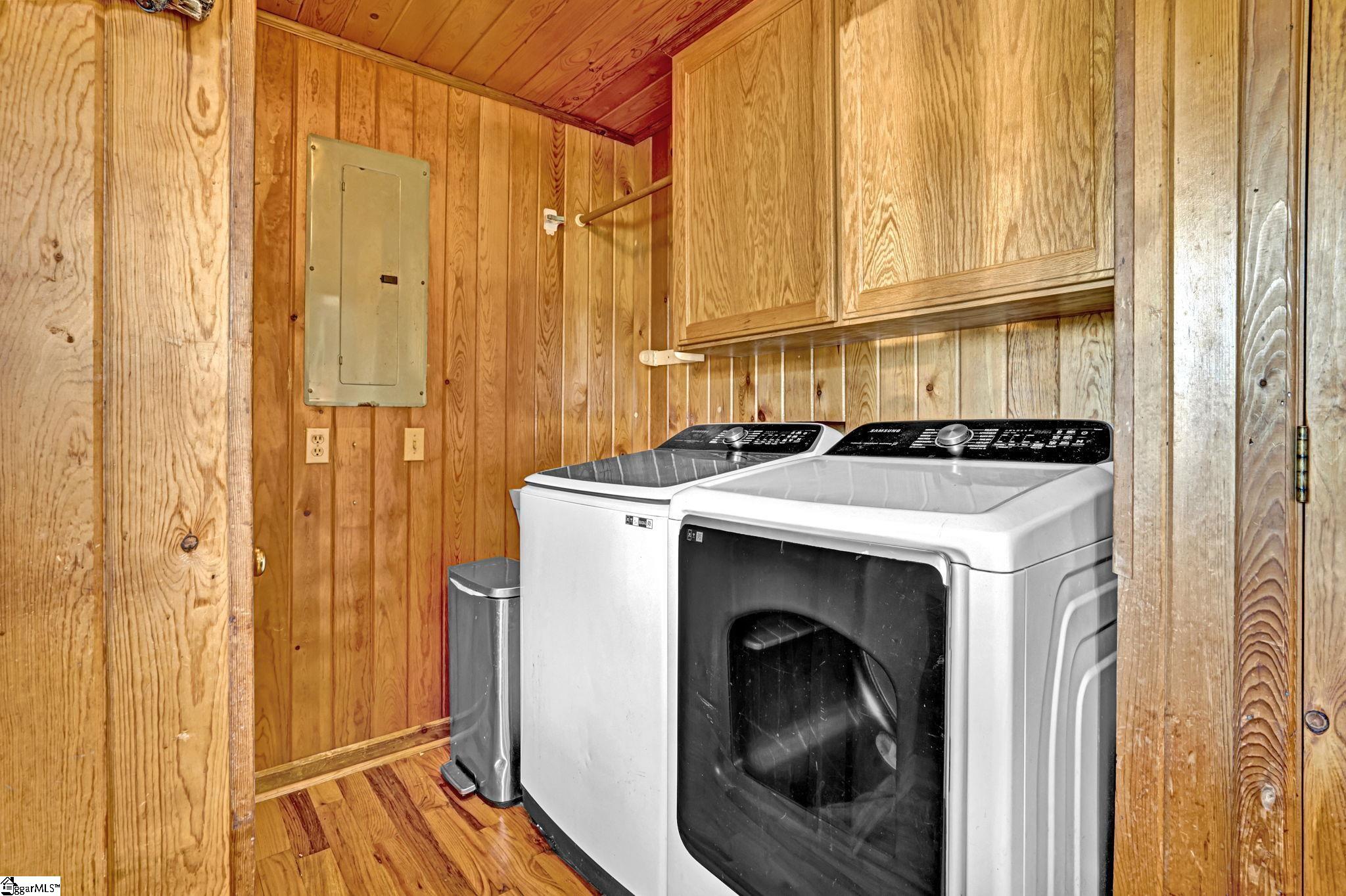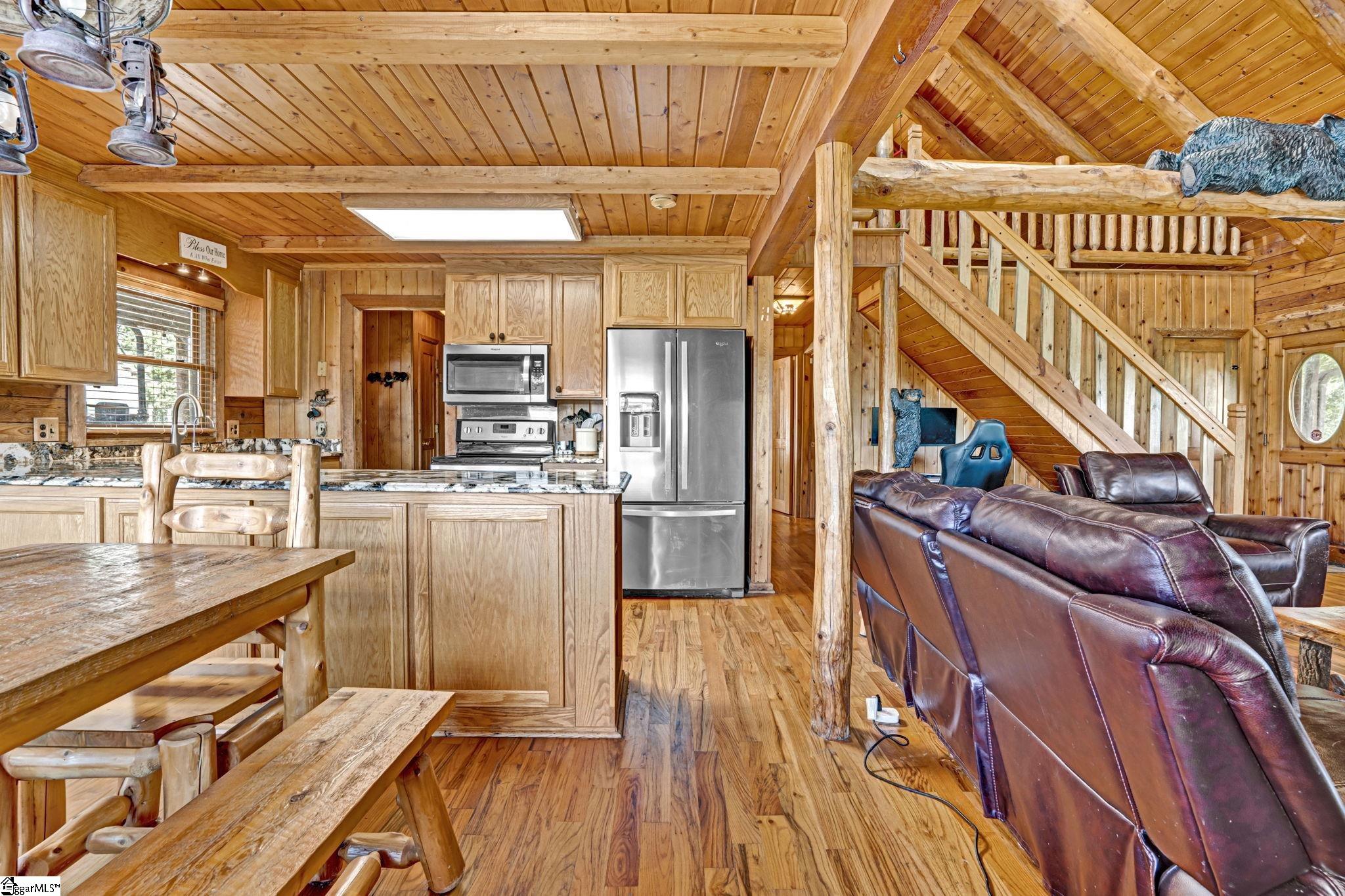 Welcome to 313 Henderson Rd in Gray Court, SC—a modern rustic retreat set on approximately 5 acres of level, pasture-like land with a standing pond. This custom log-style home offers 3 bedrooms, 2 full baths, and approximately 2,060 sq ft of charming, energy-efficient living space. The property features excellent parking and storage, including a detached 3-car garage and an additional 1-car garage attached to the barn, providing ample space for vehicles, equipment, or hobbies. With 40 owned solar panels powering the home, barn, and detached garage, electric costs are nearly nonexistent. Inside, you’ll find vaulted ceilings, wood floors, granite countertops, and insulated windows. The cozy living room showcases cathedral-style vaulted ceilings and a wood stove, while the kitchen includes an electric cooktop, built-in microwave, and a bright breakfast nook. The spacious upstairs primary suite is a true retreat, featuring a jetted tub and a walk-in closet. Outdoor living shines with covered front and back porches, a hot tub, and a barn/stall plus multiple outbuildings, all equipped with electric and water—ideal for a mini-farm or hobby homestead. The standing pond adds to the property’s peaceful, country setting and usability. Zoned for Gray Court-Owings schools and Laurens District 55, this unique property offers privacy, sustainability, and versatility. Schedule your private showing today.