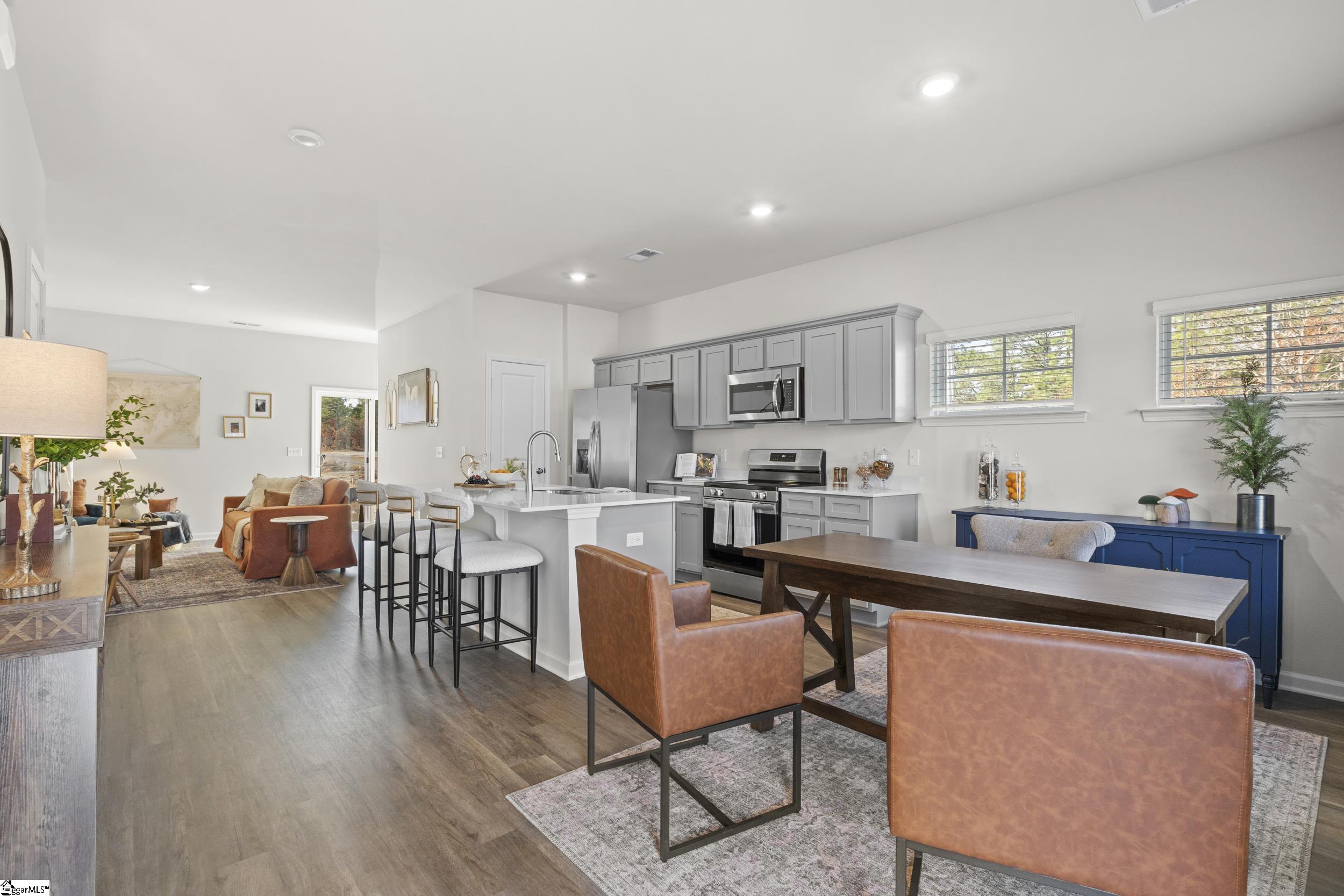 Welcome to the Aspen—a beautifully designed townhome offering 1,305 square feet of comfortable, modern living. This thoughtfully crafted three-bedroom, two-and-a-half bath home features stylish finishes throughout, including sleek quartz countertops and stainless steel appliances in a kitchen that flows seamlessly into the main living area and dining area. The open-concept floor plan creates an inviting space ideal for both daily living and entertaining. Upstairs, you’ll find three spacious bedrooms and two full bathrooms, providing a private and comfortable retreat for family or guests. Step outside to enjoy a generously sized patio, complete with privacy partitions—perfect for relaxing or hosting in your own outdoor oasis. Built with energy efficiency in mind, this home offers both comfort and peace of mind. Schedule your private tour today and see what the Aspen has to offer.
