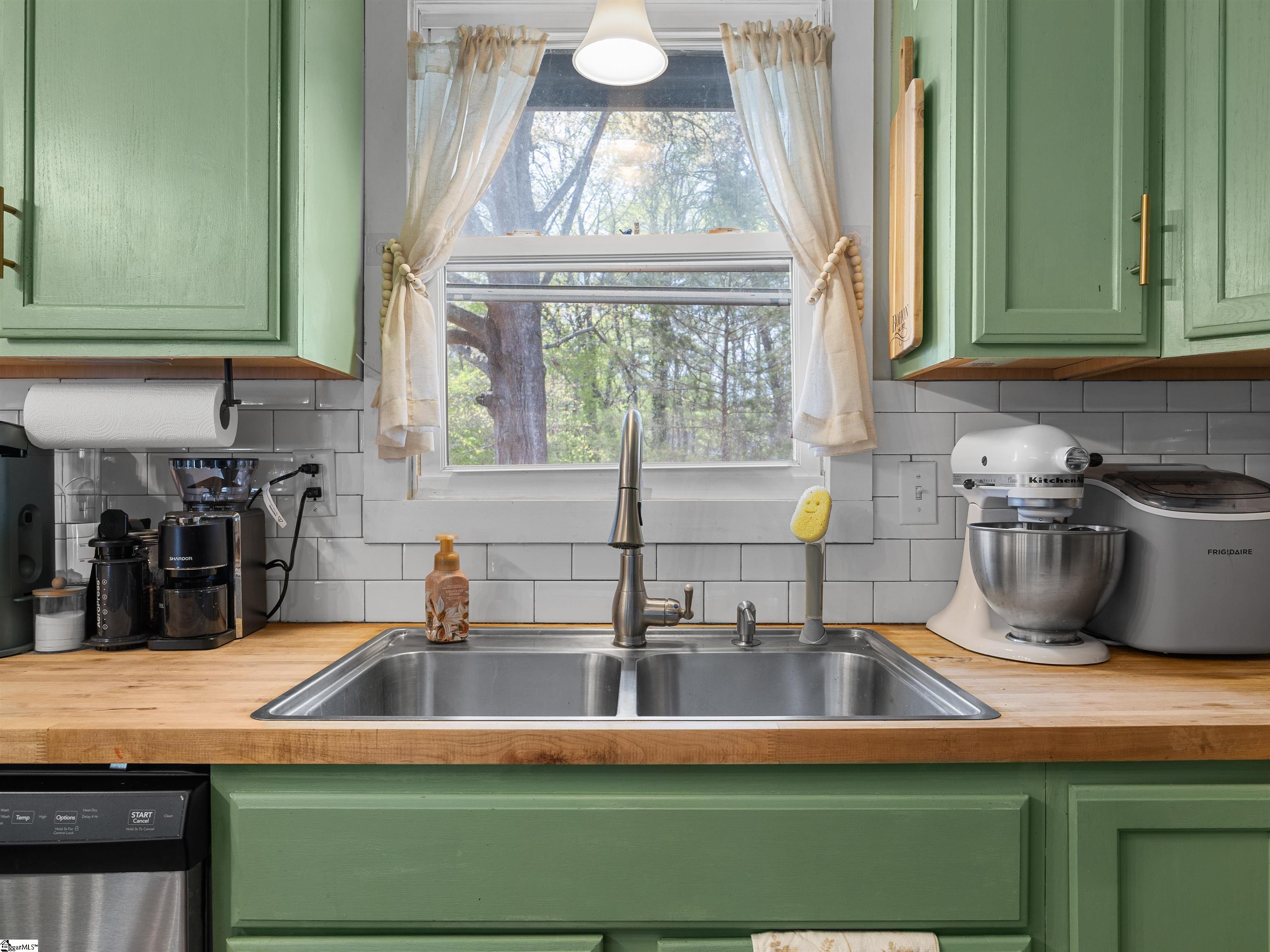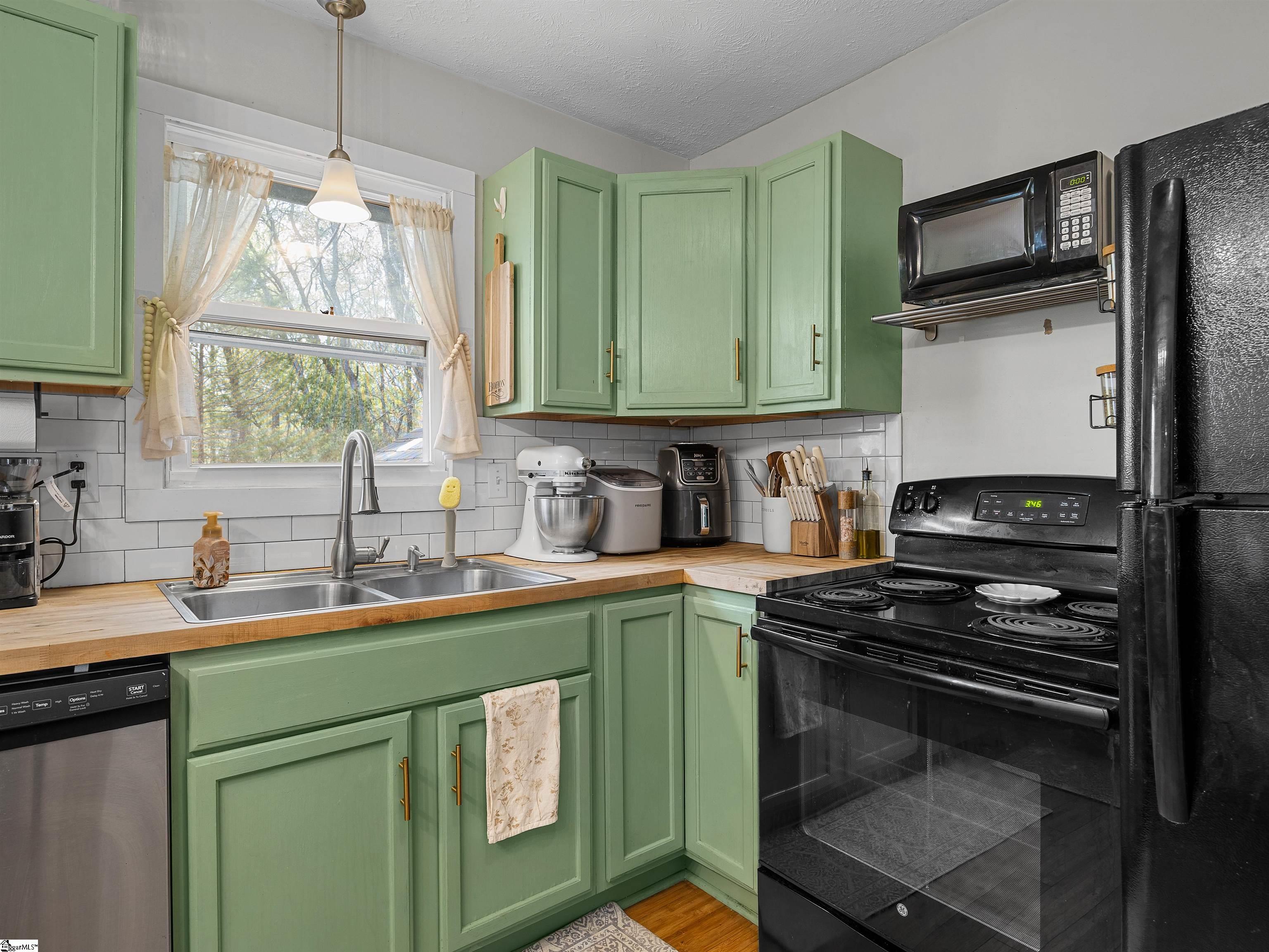 Welcome to 313 Tubbs Mountain Road—a charming brick home that offers the peaceful feel of country living while being just moments from the heart of Travelers Rest. This 3-bedroom, 2-bath home blends comfort, character, and convenience in one inviting space. Step inside to an open living area featuring a custom-built LED fireplace and built-in bookshelves, seamlessly flowing into the kitchen and dining space—perfect for everyday living and entertaining. The kitchen is beautifully appointed with butcher block countertops, a tiled backsplash, designer drawer and cabinet pulls, and built-in bench seating that adds both charm and functionality. Throughout the home, you’ll find a mix of warm wood flooring and ceramic tile, while the primary suite offers a spacious tiled shower. Enjoy the outdoors in your private, fenced backyard—complete with a deck for relaxing, mature trees for shade, a fire pit for cozy evenings, and a storage shed for added convenience. Location truly shines here! You’re less than a mile from the popular Swamp Rabbit Trail (approx. 0.9 miles), perfect for walking or biking, and just 1.7 miles from Trailblazer Park. Explore all that Travelers Rest has to offer with its charming shops, local restaurants, and vibrant farmers market. Plus, you’re only an 18-minute drive to downtown Greenville. This location allows you to enjoy destinations like Flying Rabbit Adventures, Jumping Off Rock Overlook, Greenville Zoo, and Unity Park. Whether you’re relaxing at home or exploring the Upstate, this property offers the perfect balance of lifestyle and location.