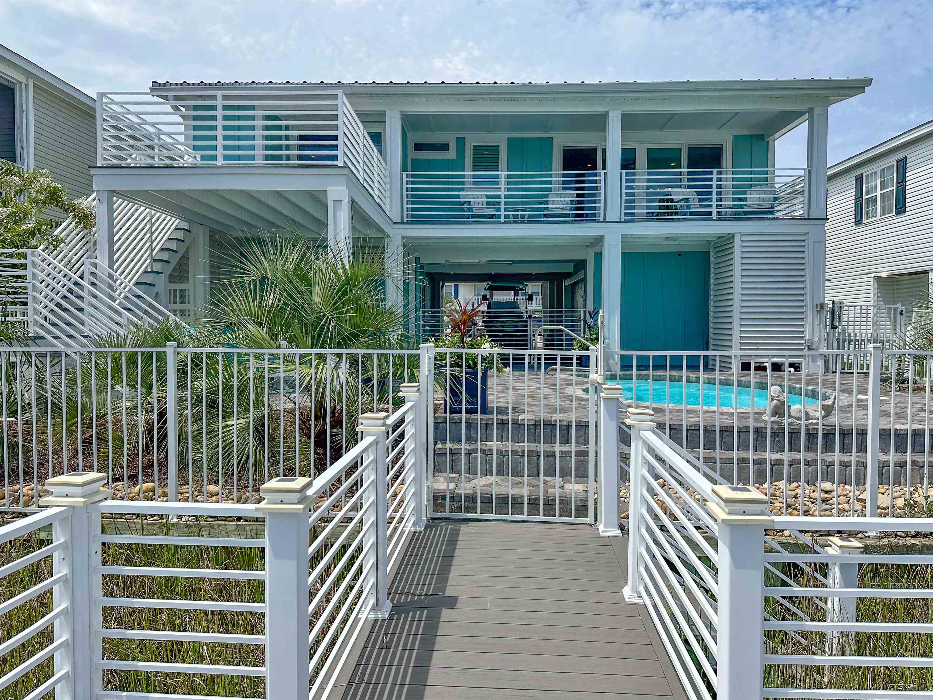 ***BE SURE TO WATCH VIRTUAL WALK-THRU VIDEO INCLUDED WITH THIS LISTING!!*** You'll love the casual elegance of this canal front home in North Myrtle Beach. Beautifully renovated in 2022. Everything has been done -- kitchen, bathrooms, roof, decking, HVAC, etc. This four bedroom, two and a half bathroom is just gorgeous. Not only are the renovations high end, but it has been lovingly decorated in an upscale coastal motif. Upscale, but still casual enough where you won't feel too uncomfortable to put your feet up. Couple the beautiful interior with dream come true multiple seating areas, both elevated and ground level. You'll rejoice in breezes from the elevated seating areas that offer spectacular canal views. The ground level brick paver patio surrounds the perfectly sized, heated, salt water pool. Over the canal, you'll find a lovely sundeck with appealing solar lighting.