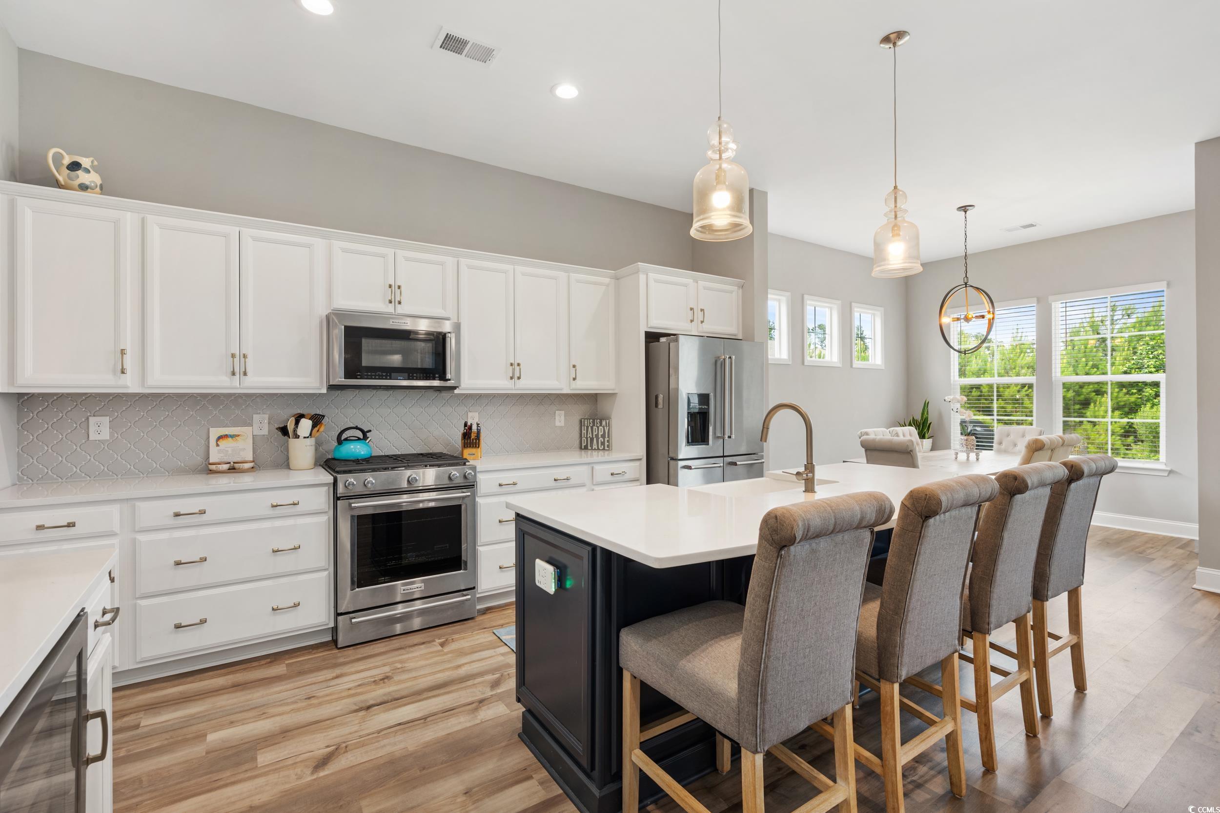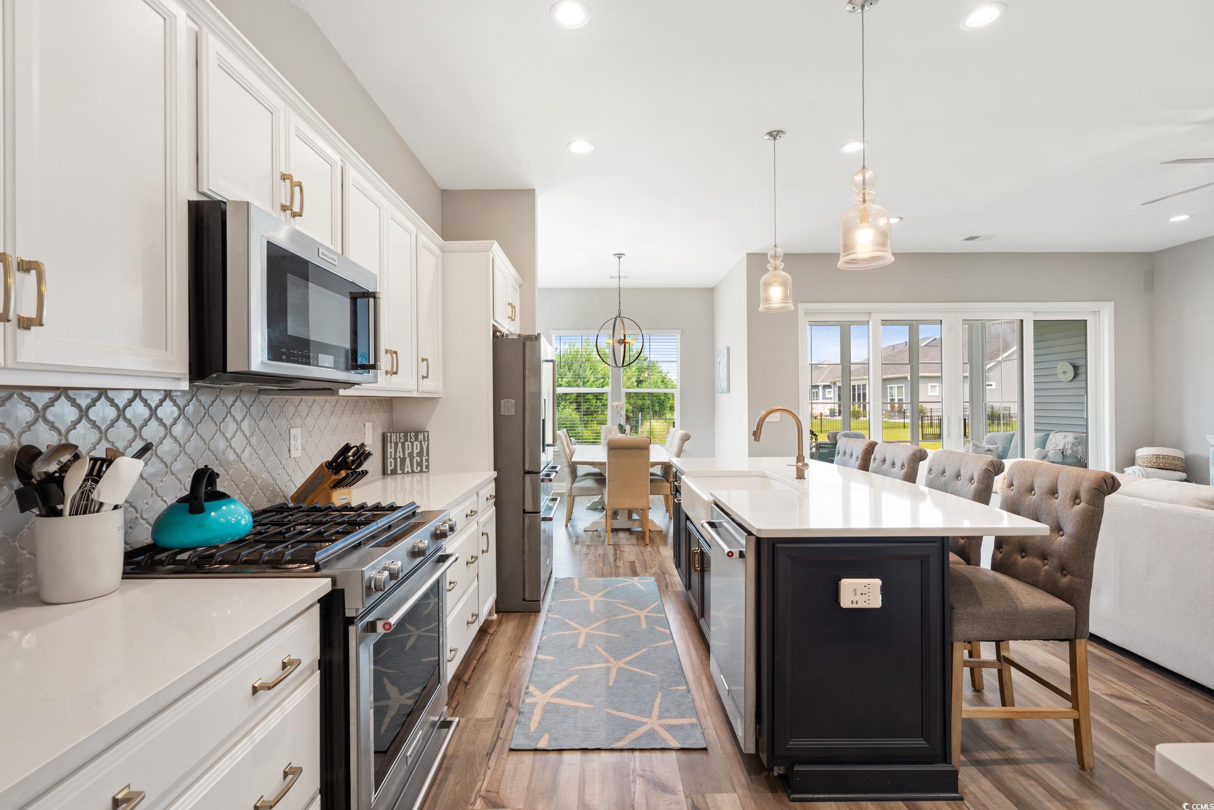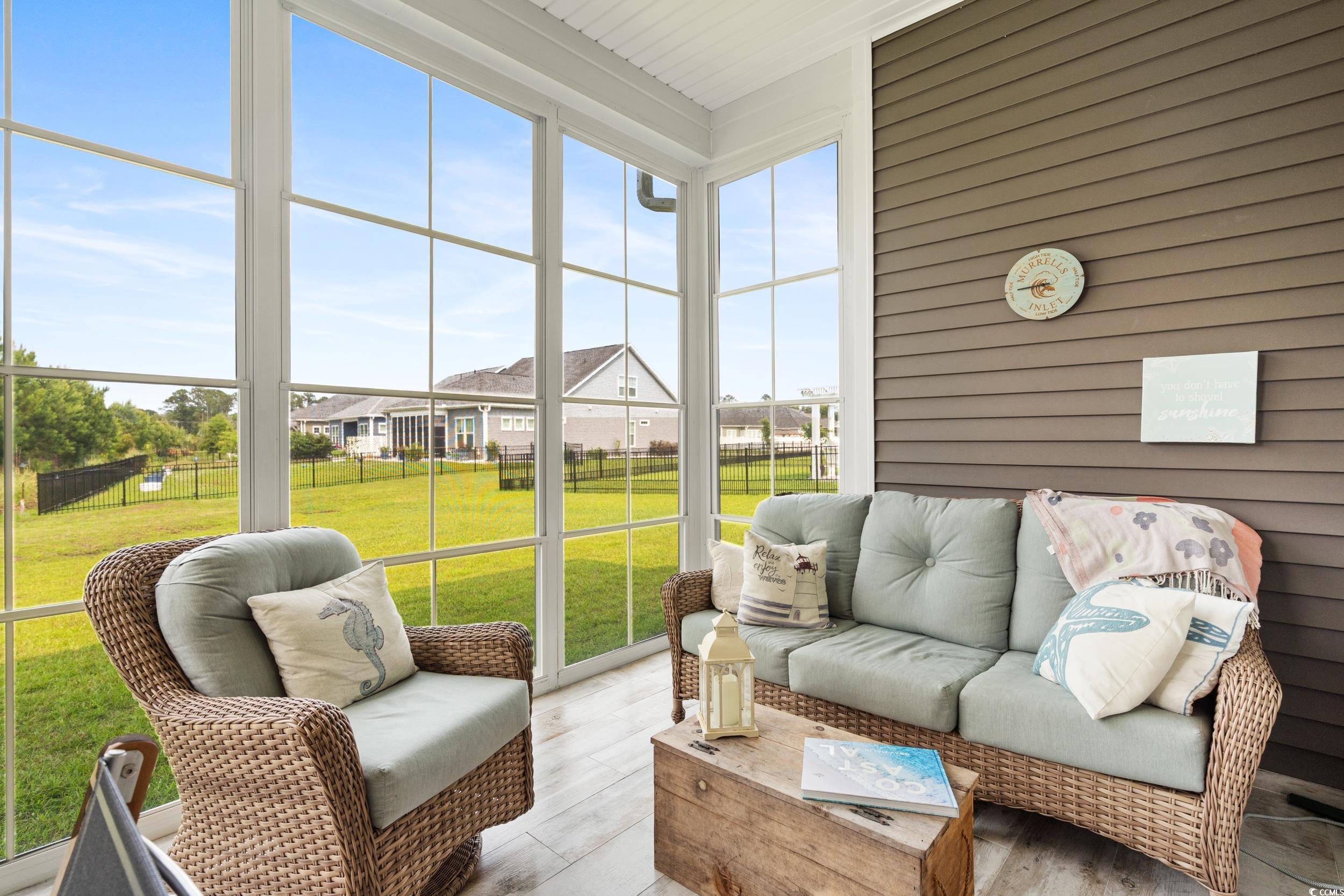 This beautiful 4-bedroom, 2.5-bath home in the desirable Wren Bay community offers coastal charm, one level living and an open-concept layout filled with natural light - perfect for entertaining. The kitchen features white cabinetry, stainless steel appliances, a gas stove, an eat-in island, and flows seamlessly into the main living areas. Walk out of your custom mega slider into the tiled sunroom with an Easy Breeze window system, providing year-round comfort and plenty of vitamin-sea! A quick drive to the local beaches, Marshwalk and plenty of dining/shopping options. Located in the St. James school district, this home combines style, space, and location. Don’t miss this Murrells Inlet gem—schedule your showing today!