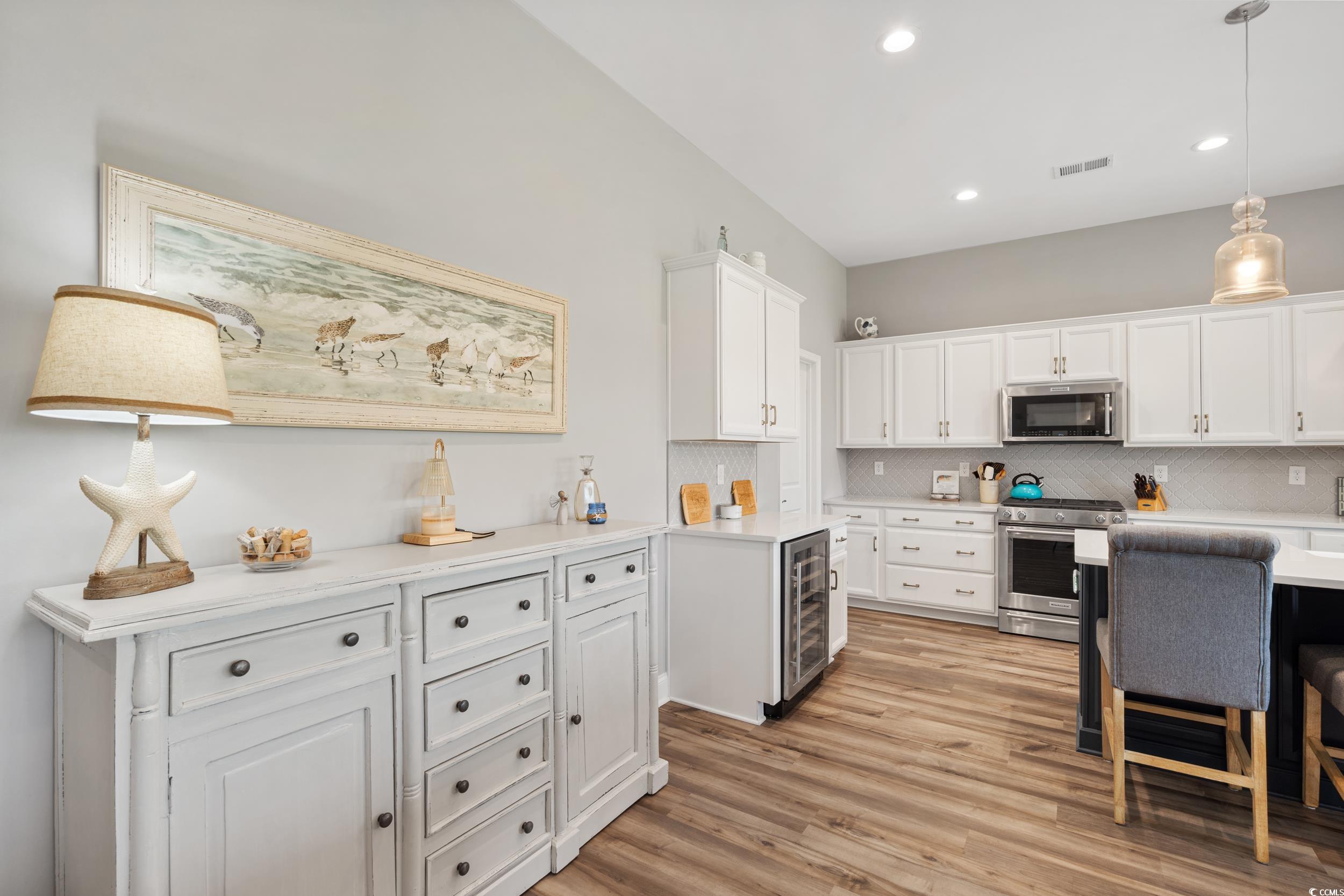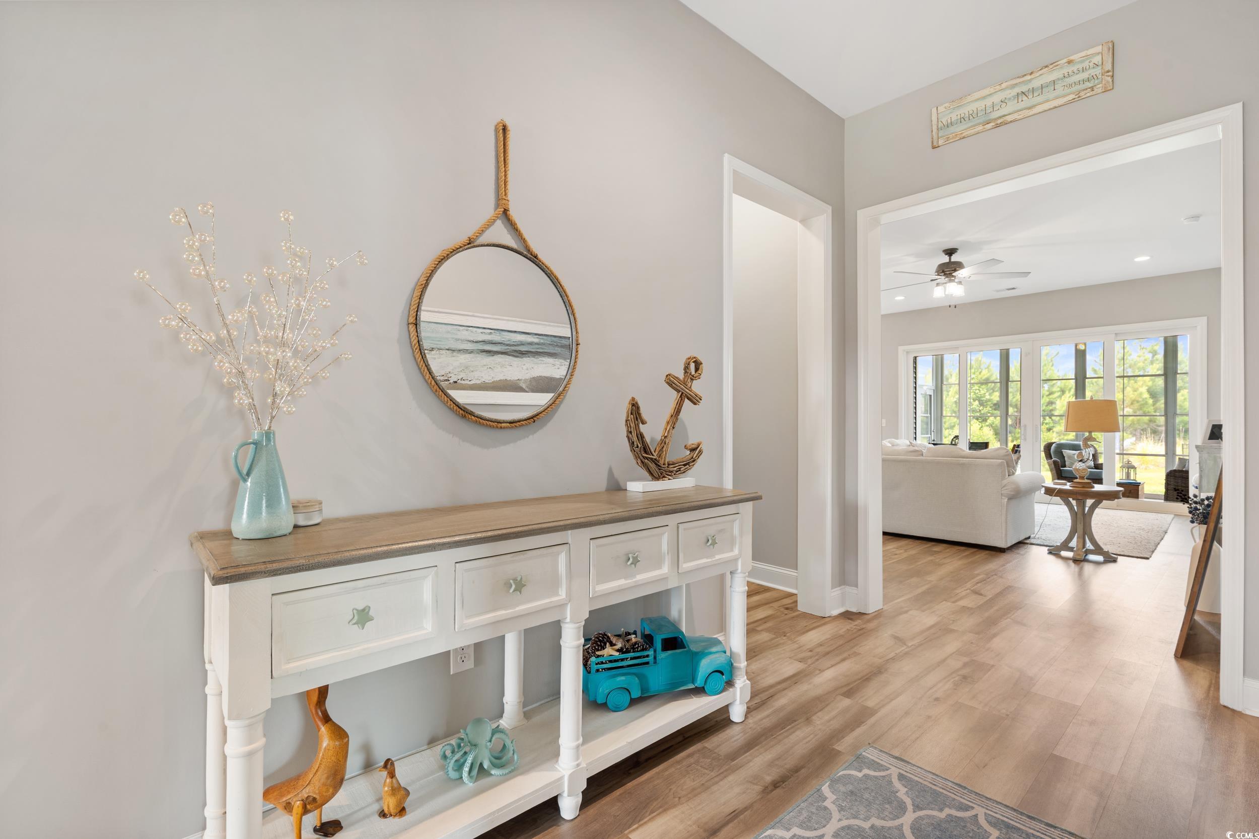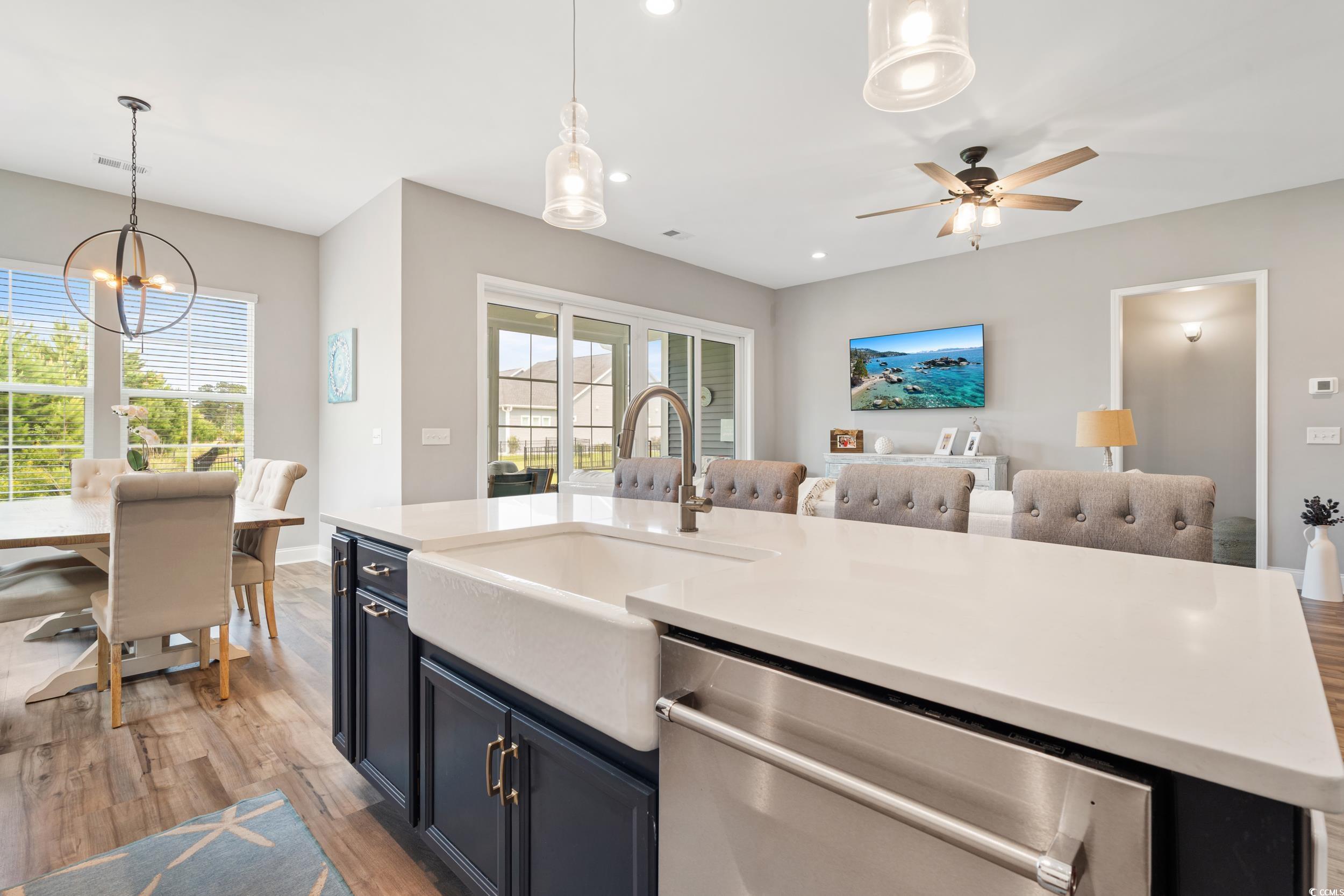 This beautiful 4-bedroom, 2.5-bath home in the desirable Wren Bay community offers coastal charm, one level living and an open-concept layout filled with natural light - perfect for entertaining. The kitchen features white cabinetry, stainless steel appliances, a gas stove, an eat-in island, and flows seamlessly into the main living areas. Walk out of your custom mega slider into the tiled sunroom with an Easy Breeze window system, providing year-round comfort and plenty of vitamin-sea! A quick drive to the local beaches, Marshwalk and plenty of dining/shopping options. Located in the St. James school district, this home combines style, space, and location. Don’t miss this Murrells Inlet gem—schedule your showing today!