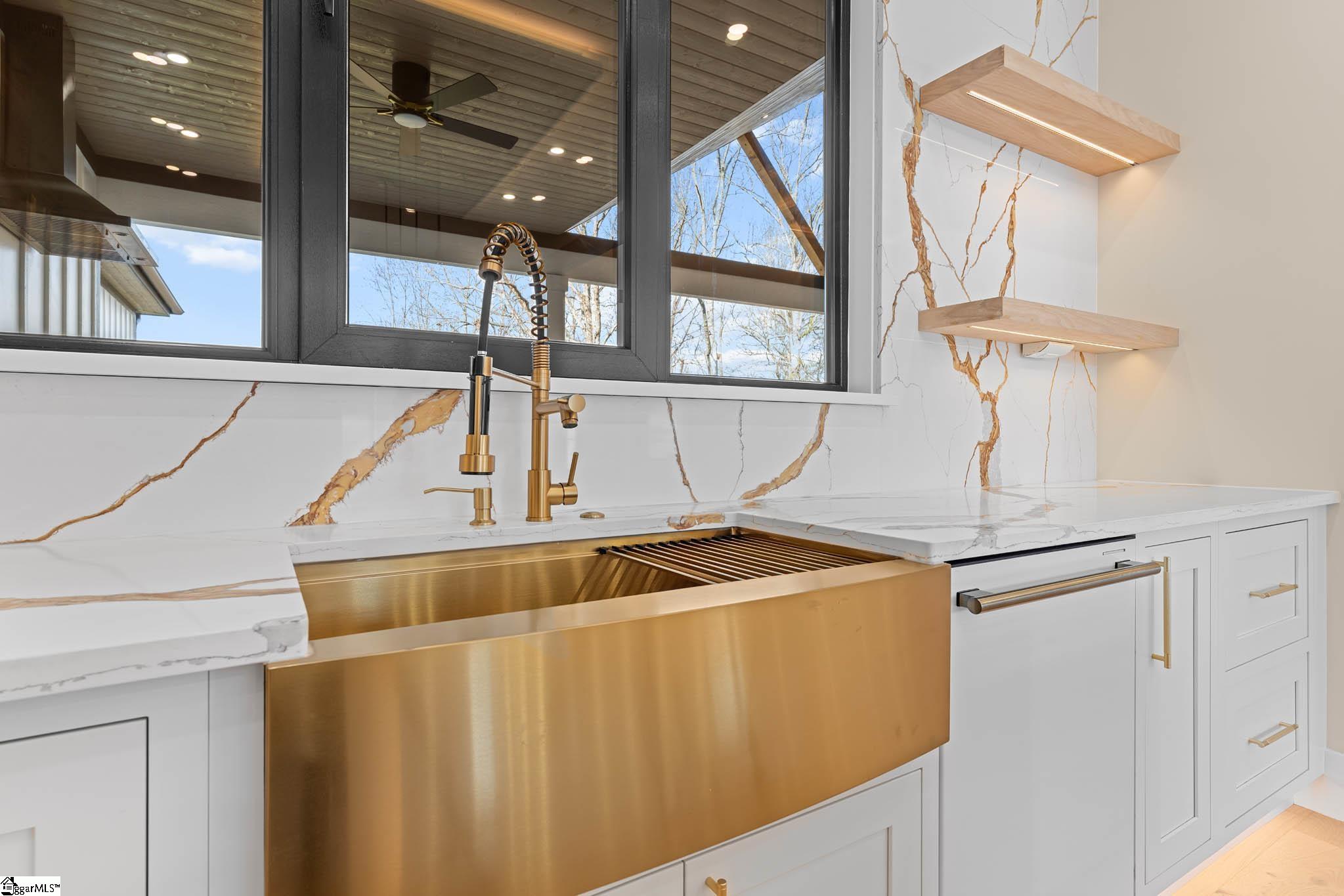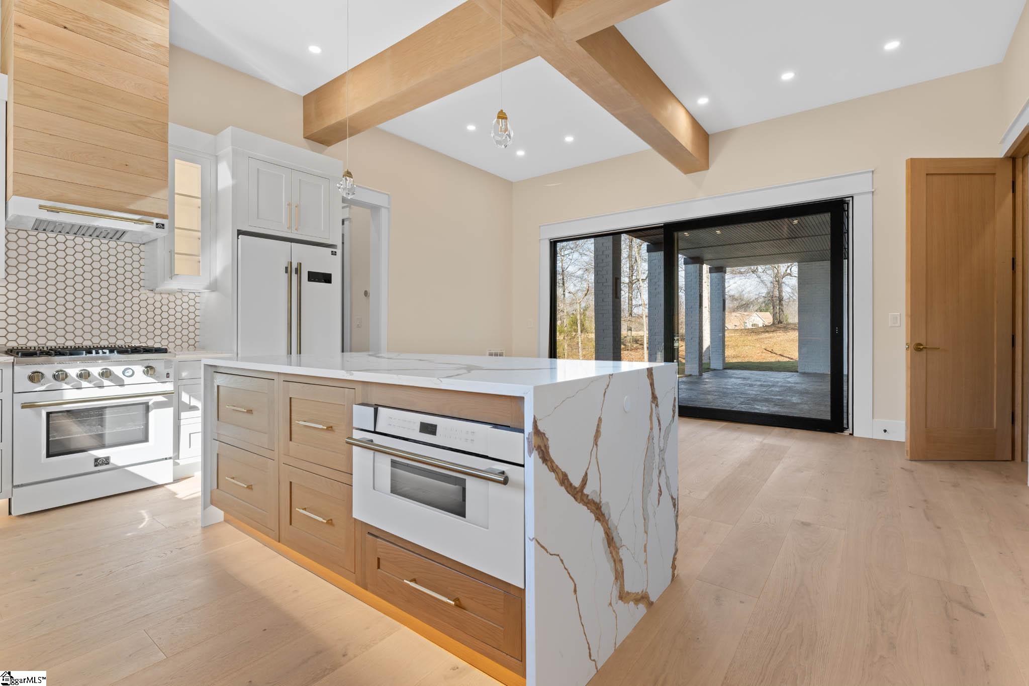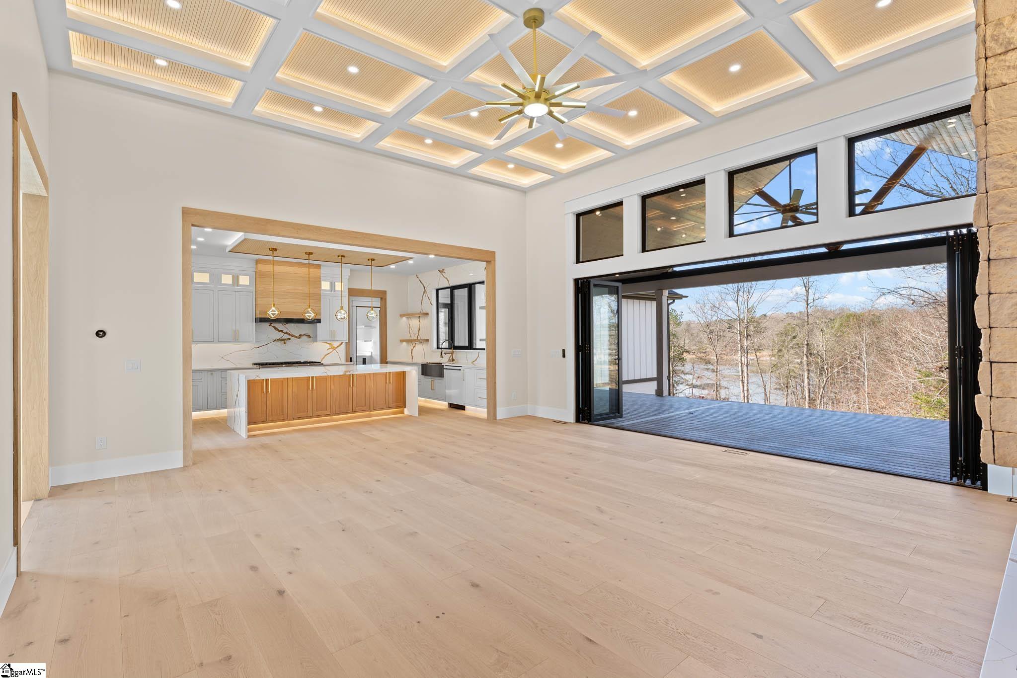 Luxury lakefront Estate – Custom European Design This extraordinary custom-built residence offers 4 bedrooms, 4 full bathrooms, a private office, and a separate in-law suite designed with luxury, comfort, and functionality in mind. The home sits on a beautifully landscaped property with fescue grass and a grand U-shaped driveway creating an elegant entrance from the moment you arrive. Inside the home you will find soaring ceilings with exposed beams, engineered hardwood floors throughout, and a stunning fireplace that creates a warm and magical atmosphere. Large European-style windows professionally tinted for efficiency and privacy fill the home with natural light while showcasing beautiful lake views from the main bedroom. The home features three kitchens which are perfect for entertaining, extended family living, or hosting guests. The main designer kitchen includes quartz countertops, custom cabinetry extending to the ceiling, hidden electrical outlets for a clean backsplash, high-end appliances including premium Forno equipment, luxury cooktops, and a bachelor or butler pantry. All appliances are included. The property was designed with both luxury and security in mind and includes a private panic room equipped with a TV, secure firearm storage, and additional security features along with cameras installed around the entire property. Every detail in the home has been carefully selected including designer lighting fixtures, high-end electrical finishes, heated tile floors in the bathrooms, and real stone bathroom walls instead of tile. Bedrooms feature custom textured walls and designer finishes while the home also offers luxury closets with built-in lighting. Convenience is enhanced with two laundry rooms, one on the main floor and another on the second level. The exterior of the home features brick and Hardie board construction with premium finishes and elegant garage doors while the interior doors are also high-end custom selections. Large bifold glass doors open the living space beautifully to the outdoors creating a seamless connection between indoor luxury and nature. The home features an outdoor porch kitchen already installed with proper ventilation and a wine refrigerator, creating a perfect space to cook meals for your family while enjoying beautiful lake views and the lifestyle of a highly desirable lake community. Step outside to a beautiful backyard with direct lake access, a private dock, and a stone and tile walkway leading to the water. The property also offers a large unfinished space beneath the home that can be customized into a sports complex, gym, entertainment area, or additional living space. Additional luxury features include smart automatic blinds in every room that can be controlled from your phone, luxury modern railings, quartz countertops, high-end appliances, hidden outlets in the kitchen for a clean modern backsplash look, heated tile floors in bathrooms, real stone finishes, luxury laundry rooms with custom cabinetry, and no carpet anywhere in the home. This exceptional lakefront property combines modern luxury, smart home features, private lake access with its own dock, and breathtaking water views creating a truly one-of-a-kind living experience.