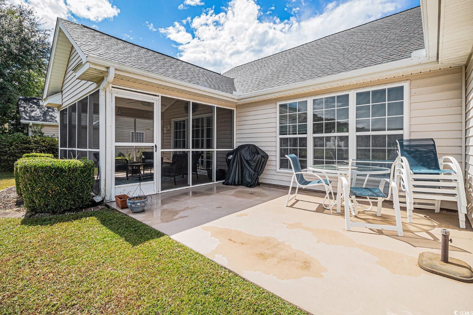 Welcome to this charming home on the pond, offering peaceful views and a beautifully landscaped setting. From the moment you step into the foyer, you'll appreciate the inviting design that combines both comfort and functionality. The home features a formal dining room and a spacious great room with a vaulted ceiling, providing plenty of space for entertaining and everyday living. A separate living room adds versatility, while the breakfast nook is perfect for enjoying casual meals with a view. The updated kitchen is a standout, featuring modern cabinets, stylish countertops, stainless steel appliances, and a tile floor. With both form and function, it's an ideal space for preparing meals and gathering with friends and family. The owner's suite with another vaulted ceiling is designed for relaxation, offering a walk-in shower and a generous walk-in closet. Additional highlights include a screened porch and patio where you can enjoy the outdoors in comfort, as well as a two-car garage for storage and convenience. Perfectly located just minutes from the beach, top-rated schools, the Marsh Walk, entertainment, and more, this home combines a tranquil setting with close proximity to everything you need. Don't miss this opportunity to own a home that truly offers the best of coastal living.